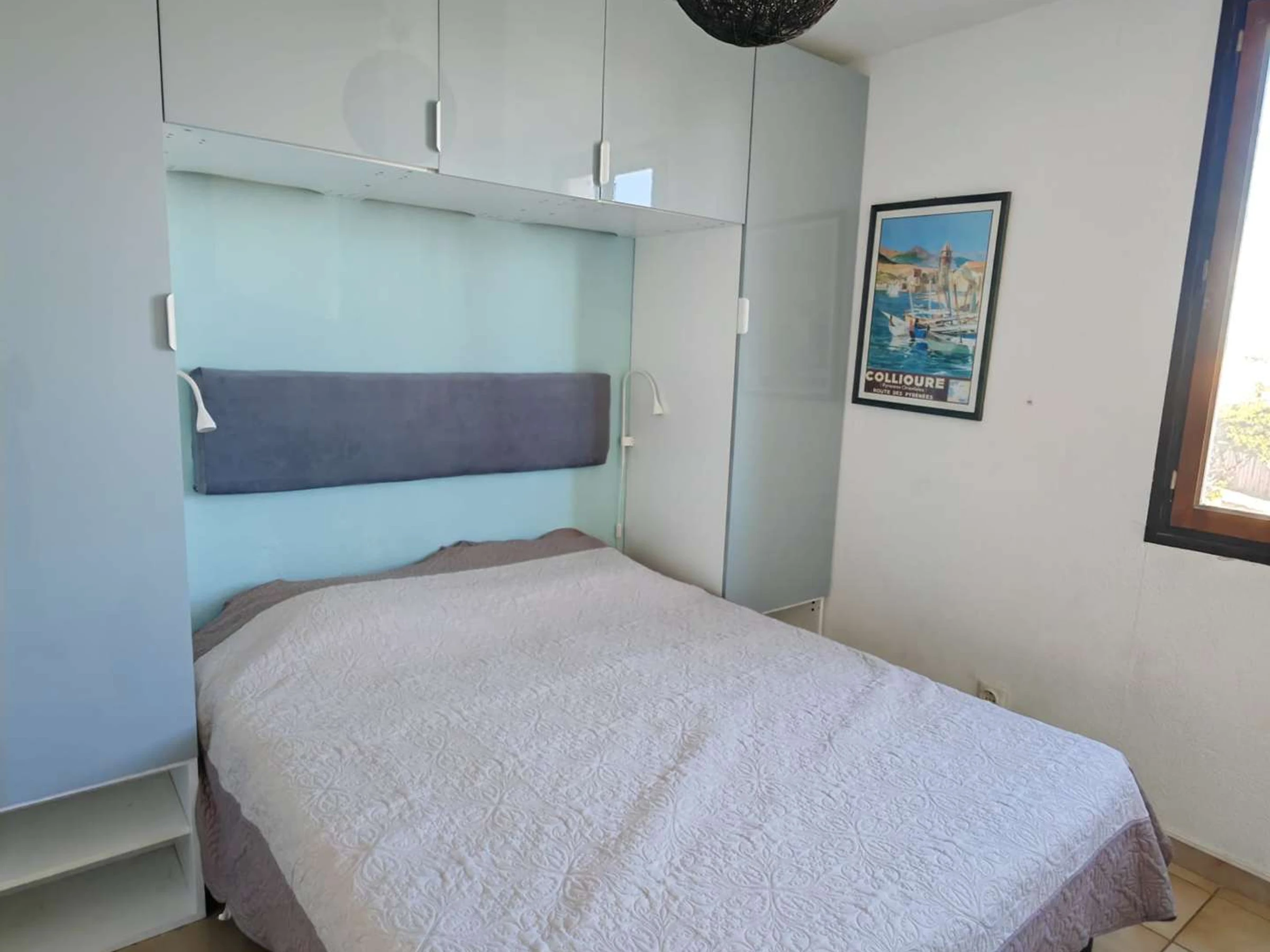In the bedroom: queen-size bed - storage cupboards