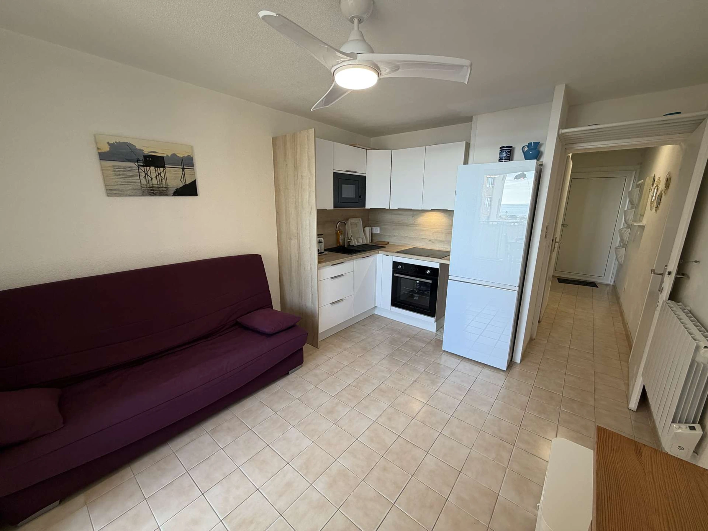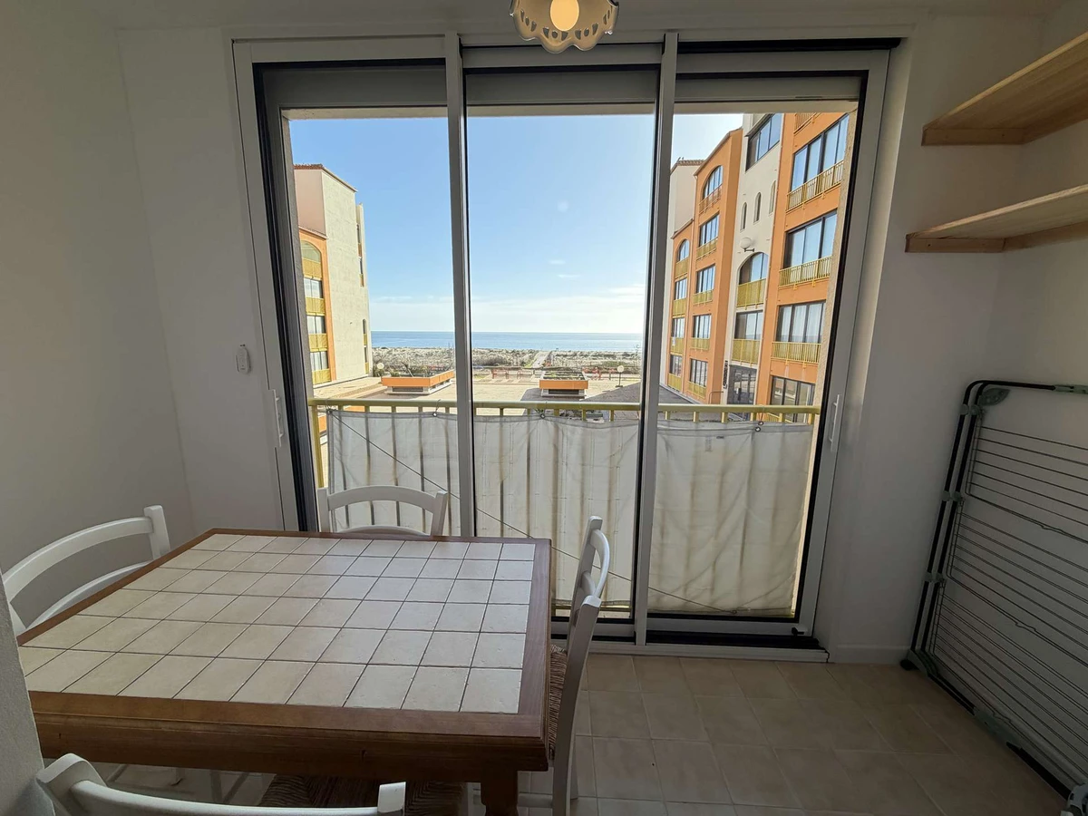 BARCARES (66), On the 1st floor of the PALM BEACH Residence, this apartment with sea views comprises an open-plan kitchen/living room and loggia, a sleeping alcove, and a bathroom with toilet.