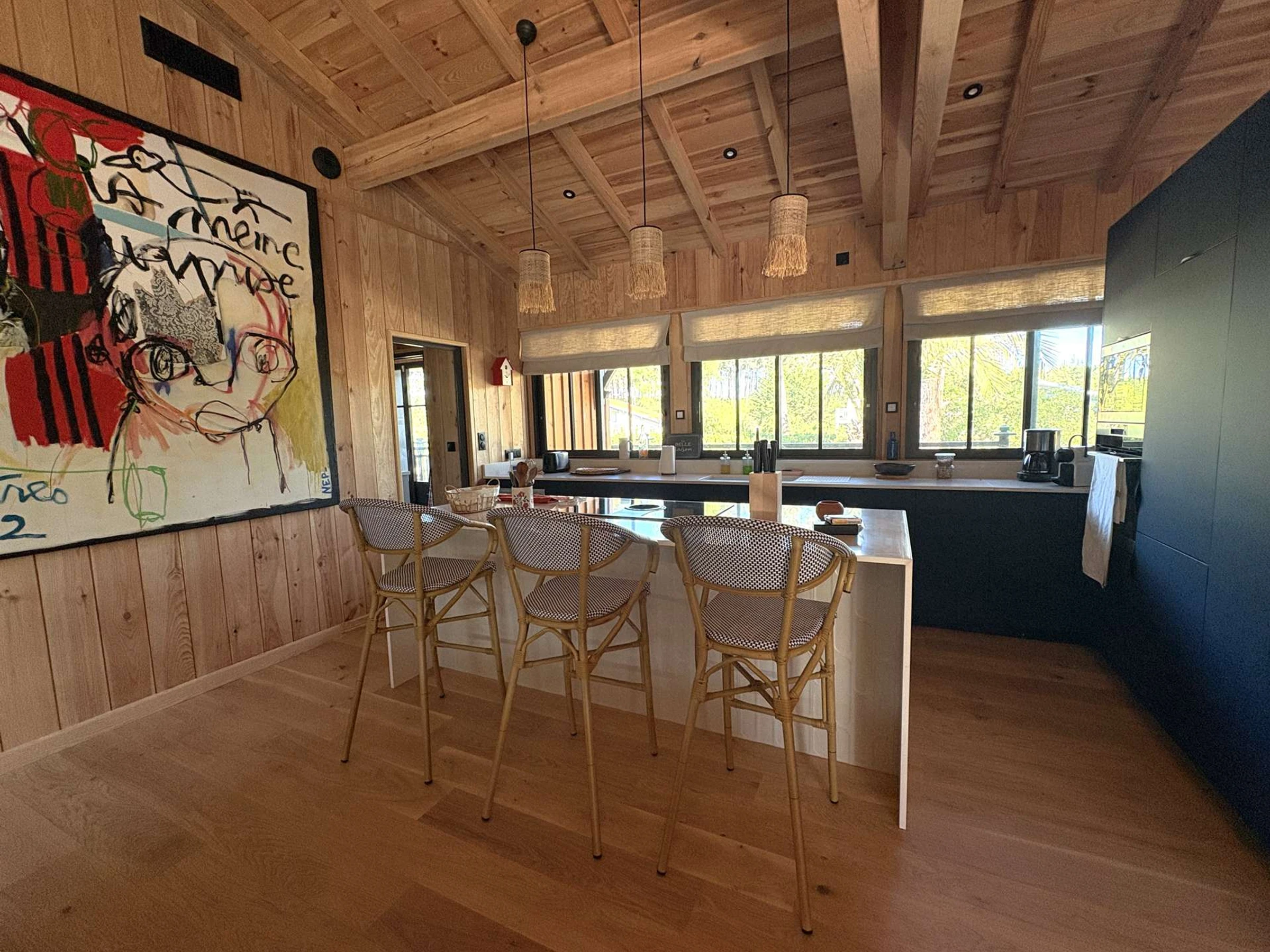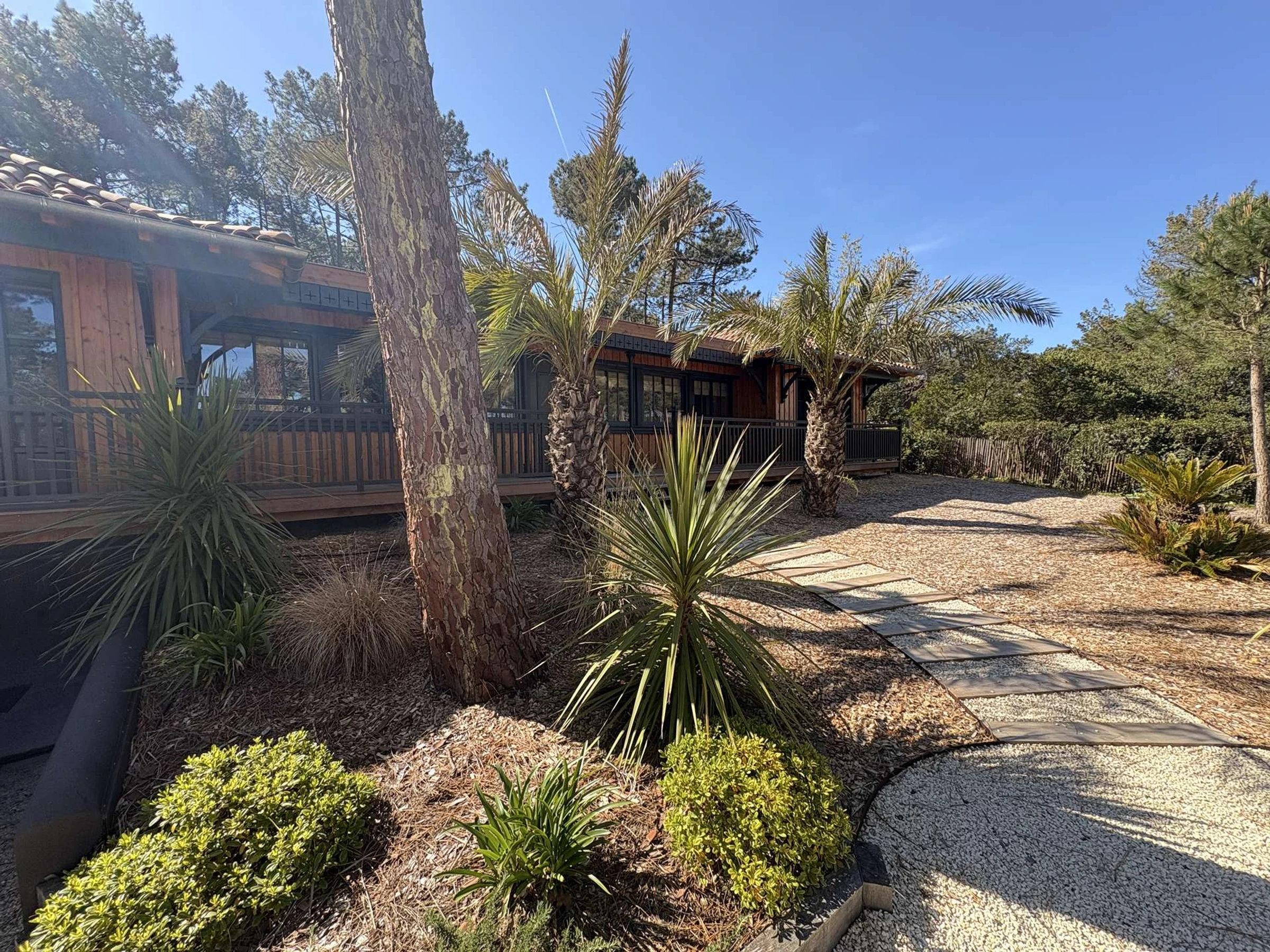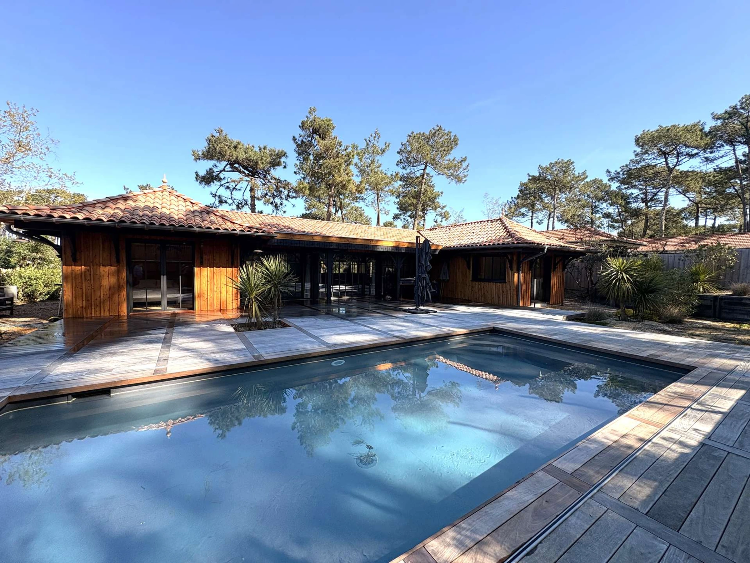 Ideally located in the sought-after village of Le Canon, this elegant, single-story wooden villa of 155 m² embodies the art of living between the ocean and the bay. Just 1.5 km from the ocean beaches, accessible via charming, safe cycle paths, and 1 km from shops and the beaches of the Arcachon Bay, it enjoys a privileged location.