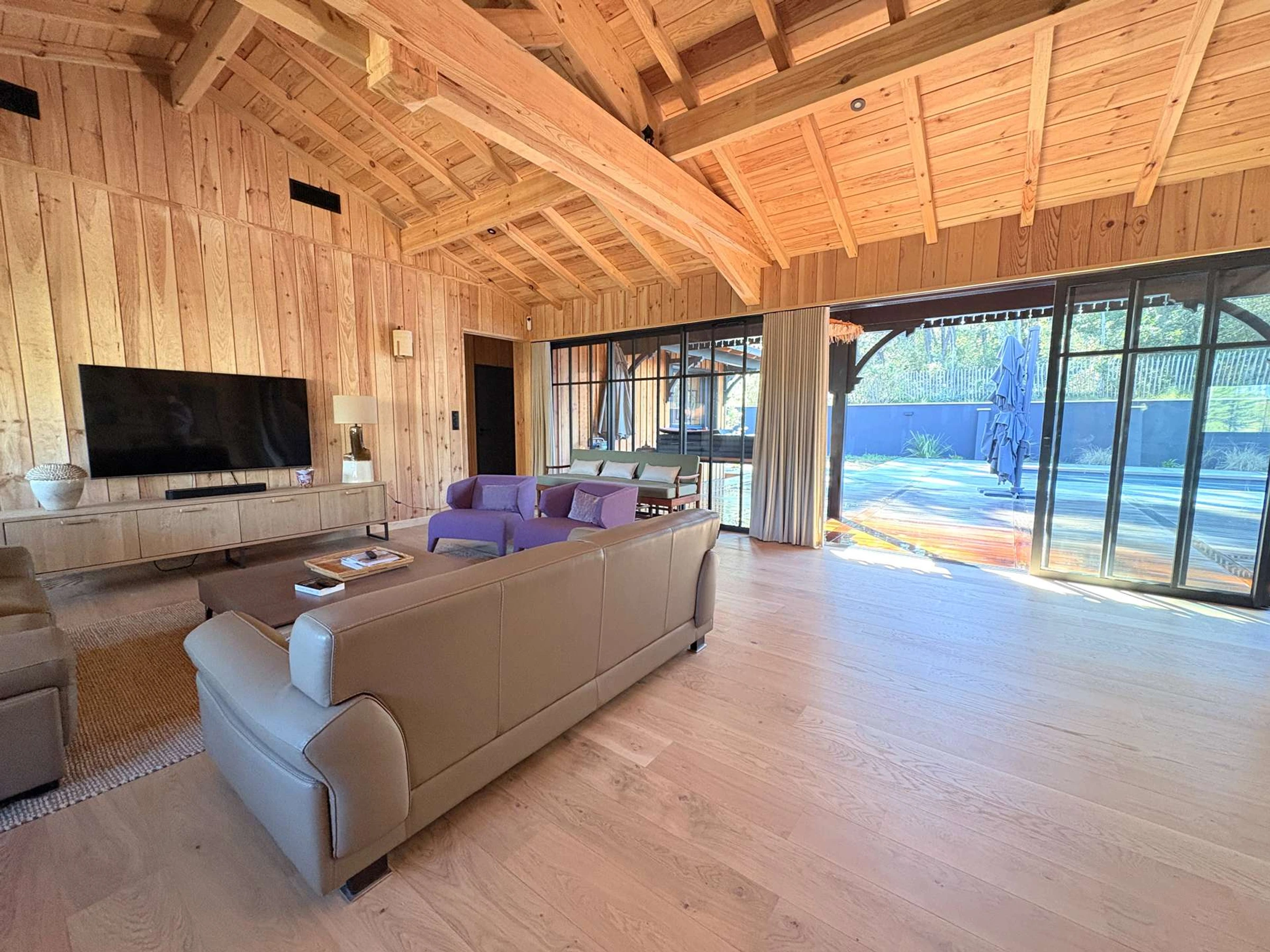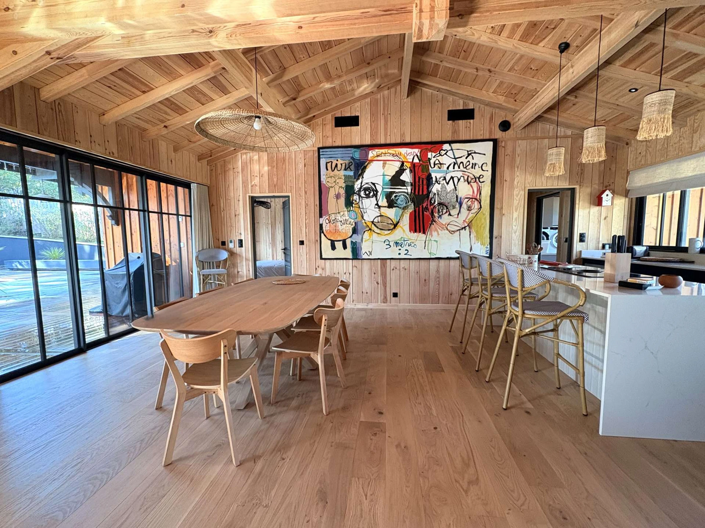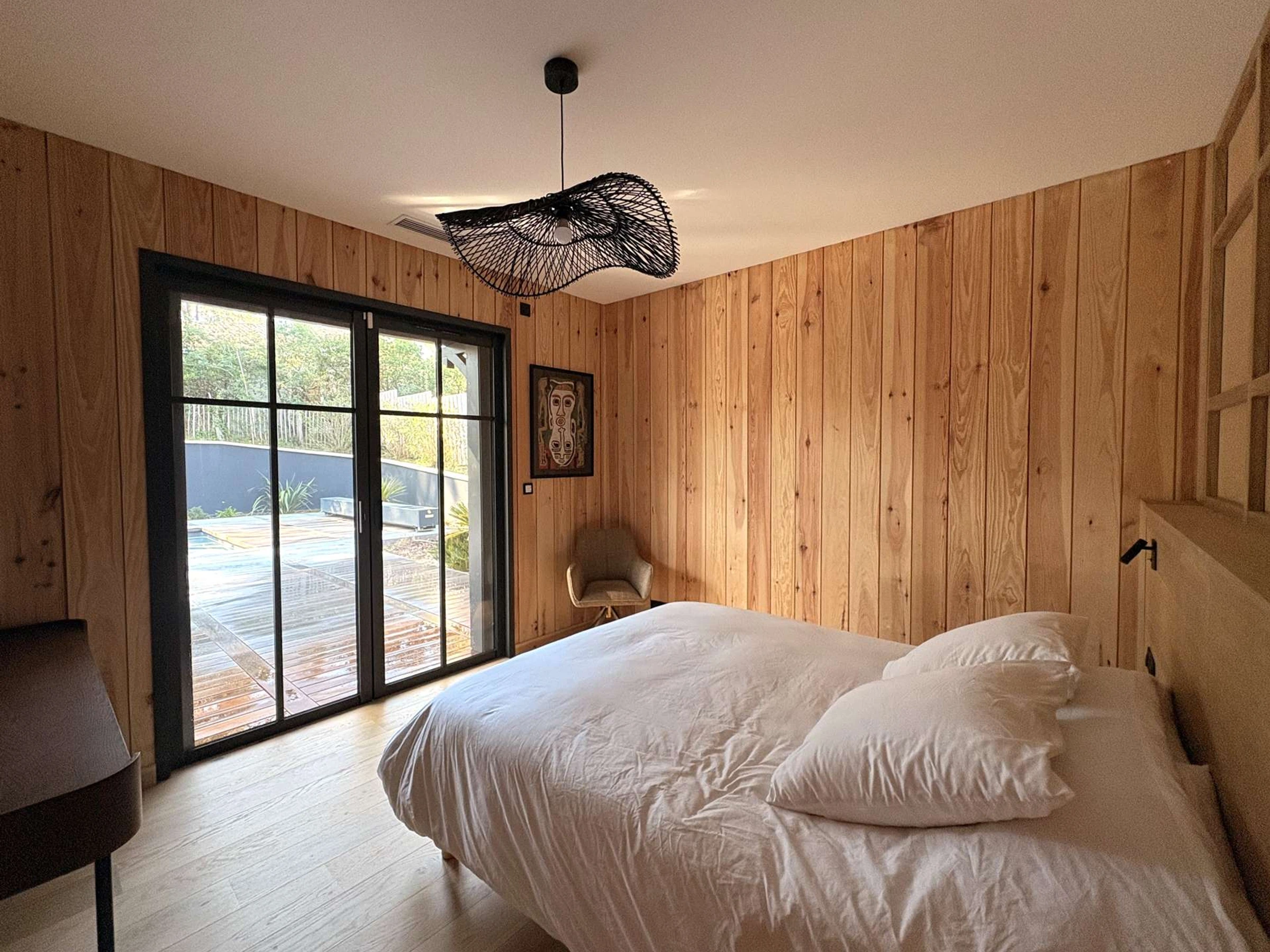 The villa boasts generous, light-filled spaces. The vast living area, enhanced by large windows, opens elegantly onto the terrace and swimming pool, creating a most pleasant indoor-outdoor flow. The open-plan kitchen, both contemporary and fully equipped, will delight food lovers.
