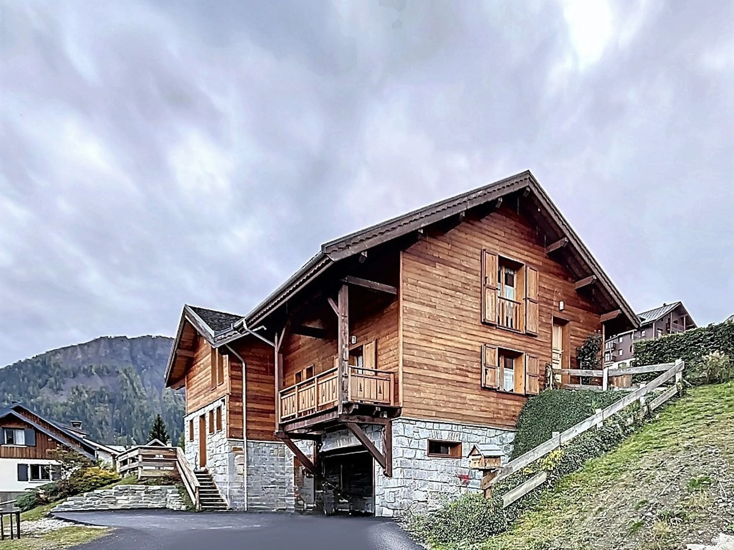 Beautiful Savoyard chalet in stone and wood, 170 m², fully equipped for 12 to 14 guests, offering all modern comforts. Located in the “Les Granges” area at the lower part of the resort, just 330m from the Voie Lactée chairlift. Évasion range.