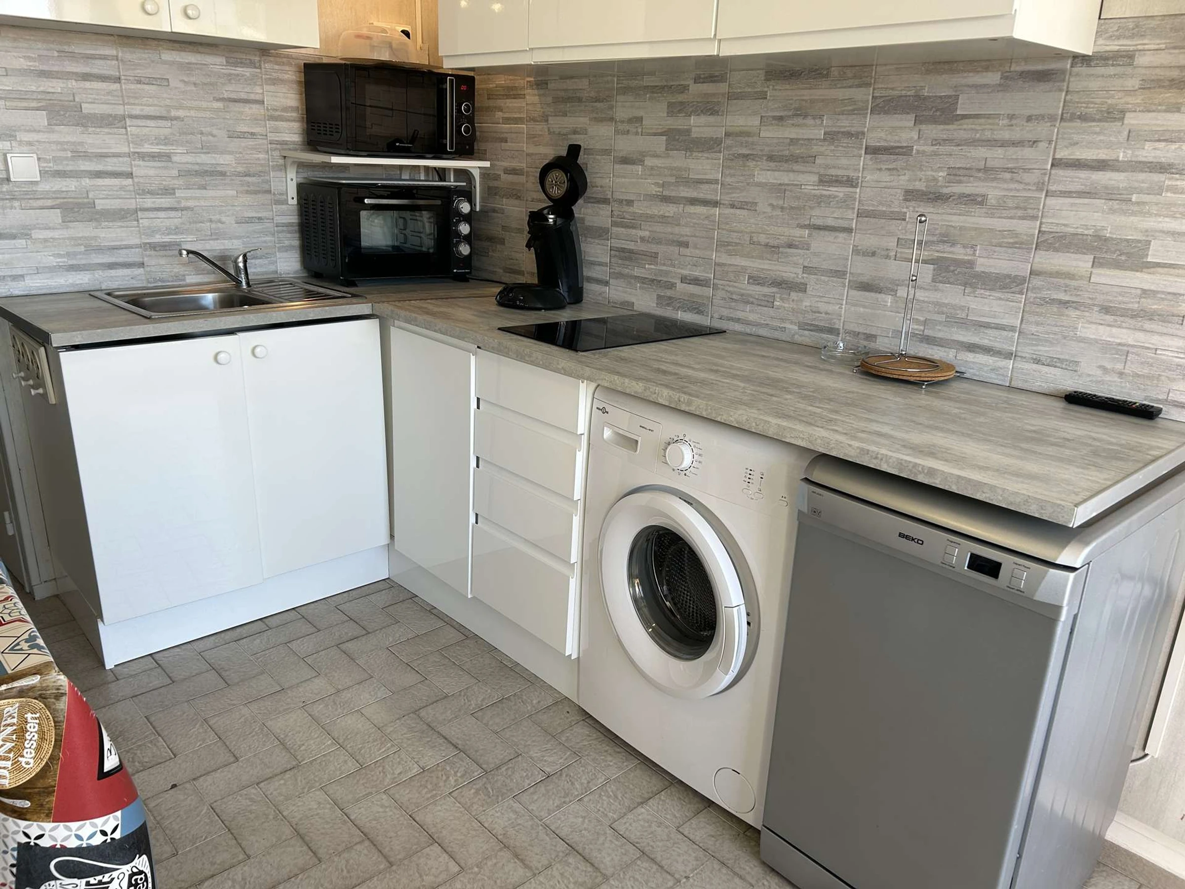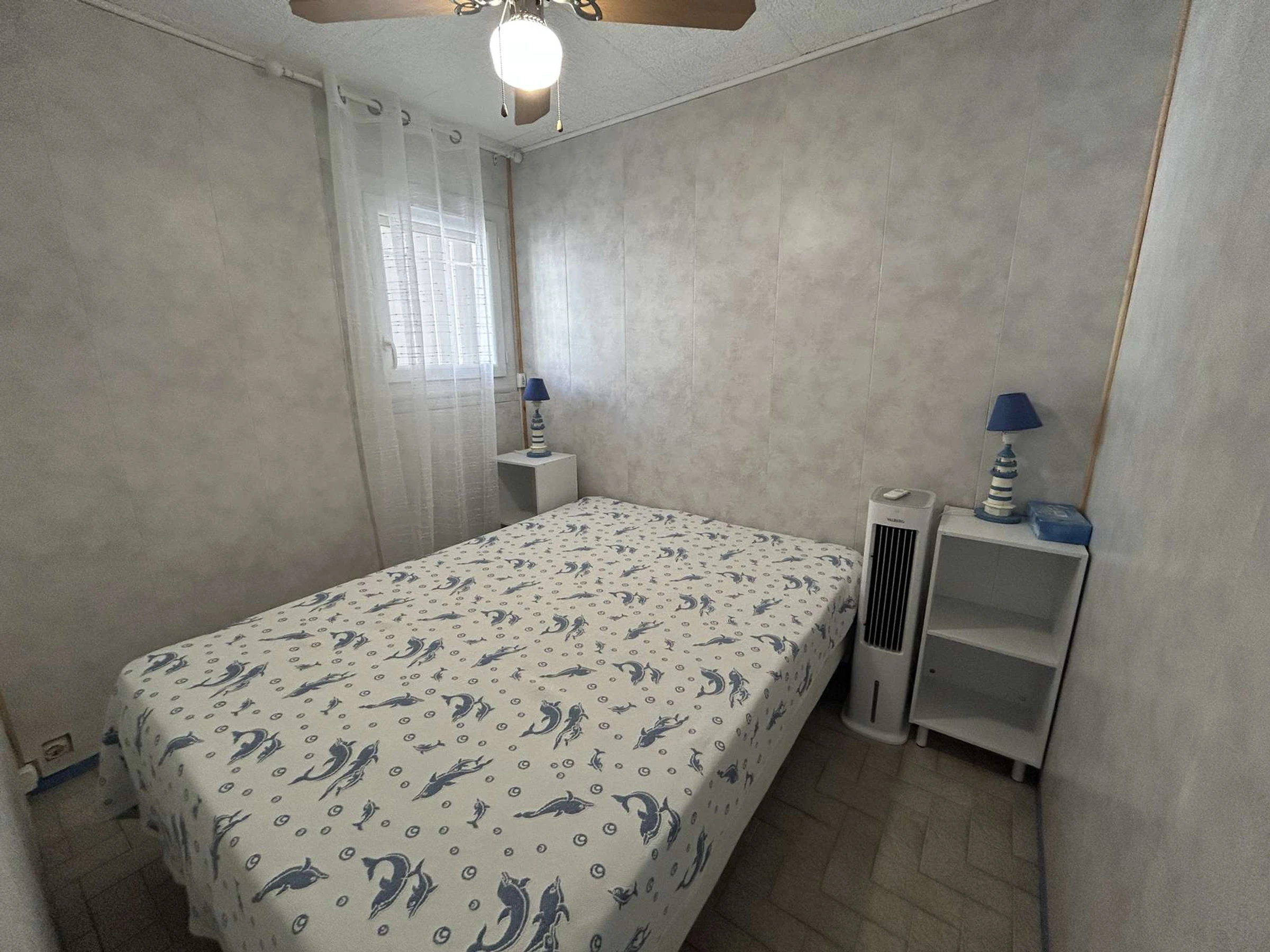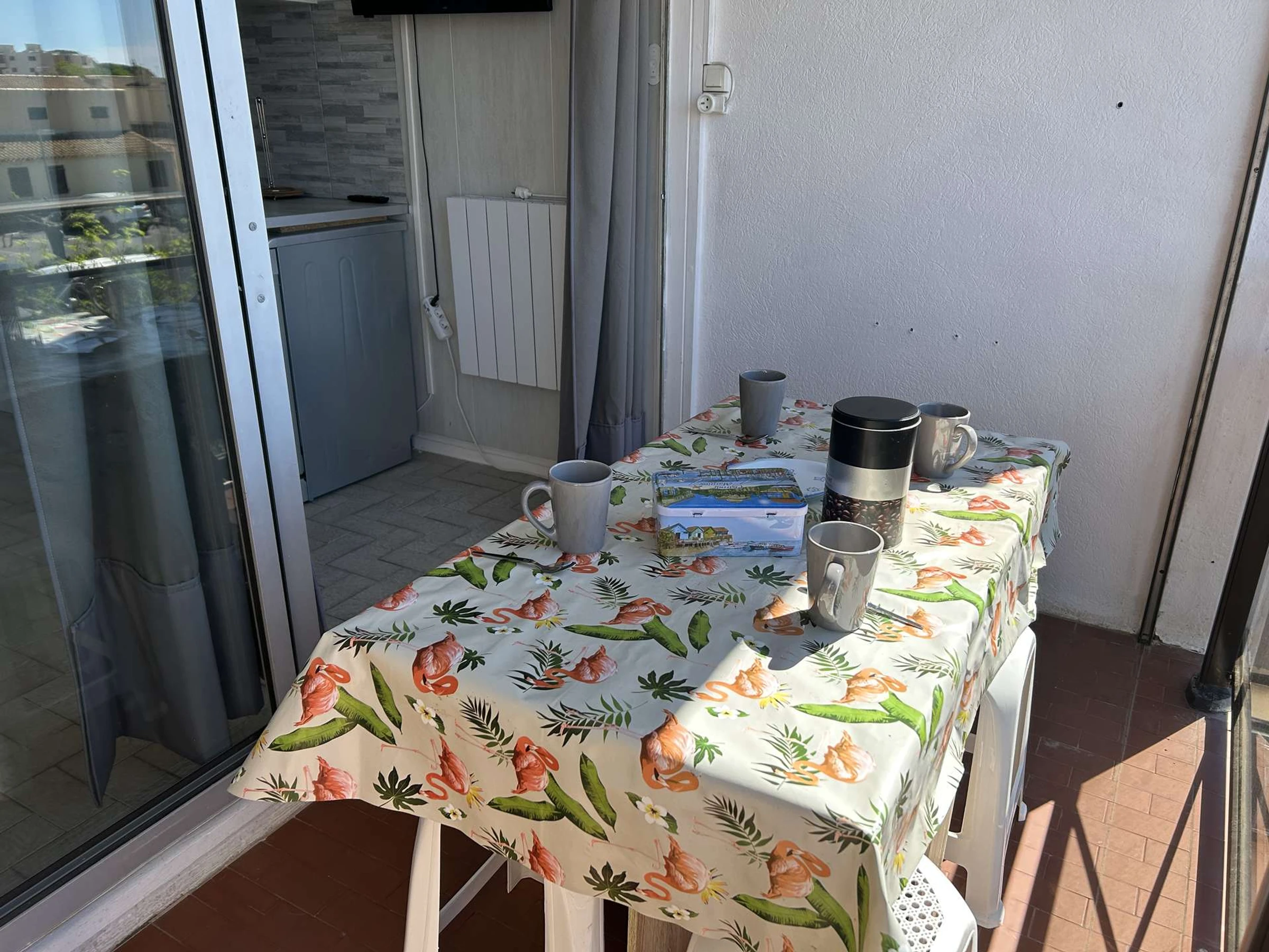 Accommodation: This accommodation is located in the Seaquarium district on the 1st floor of the "Le Lagon Bleu" residence. It comprises a living room with a 140 cm sofa bed and a television; a kitchenette with a ceramic hob, microwave, and refrigerator-freezer; a bedroom with a 140 cm double bed; a bathroom with a shower; and a separate toilet. The living room opens onto a lovely little west-facing terrace.