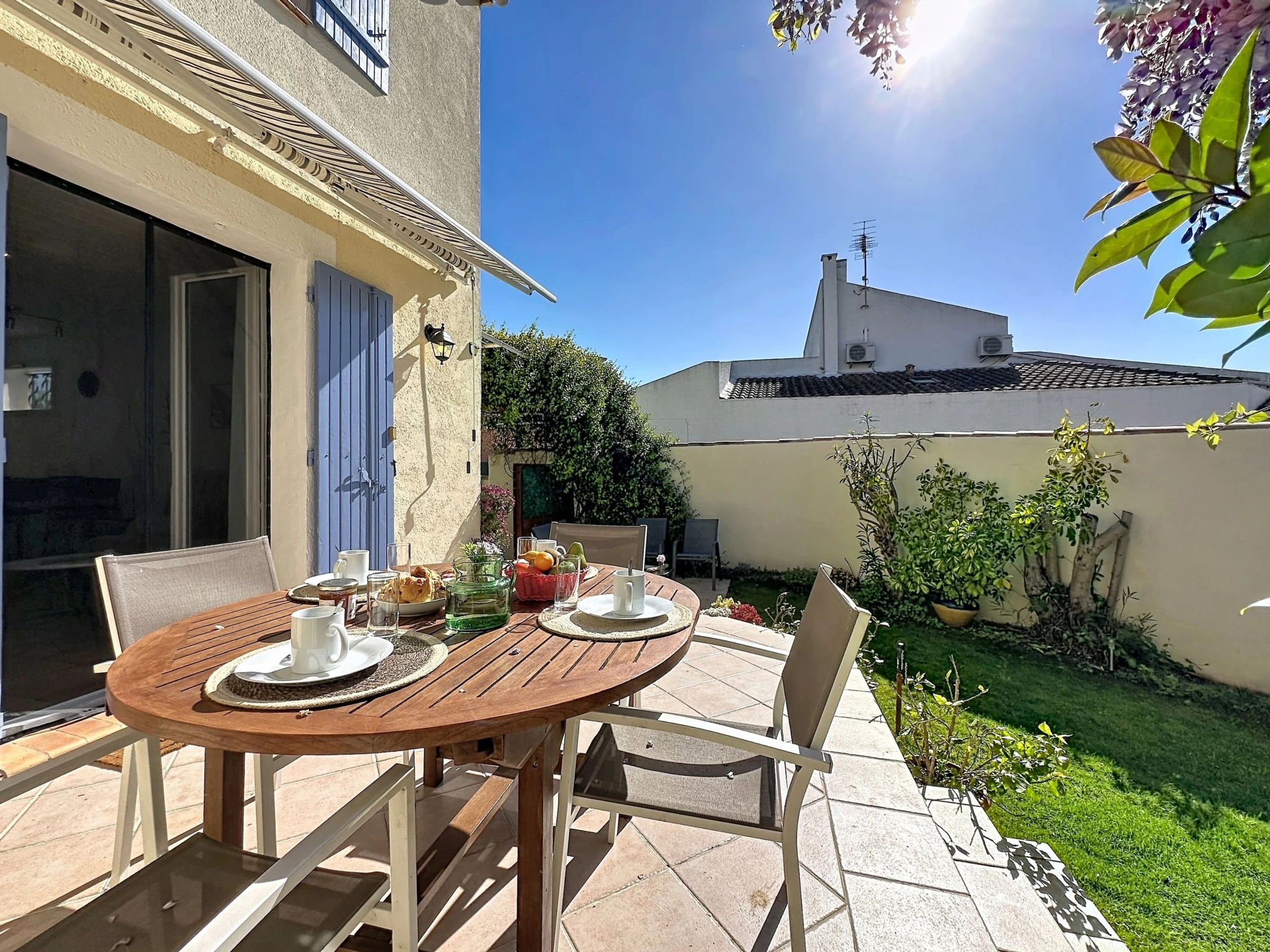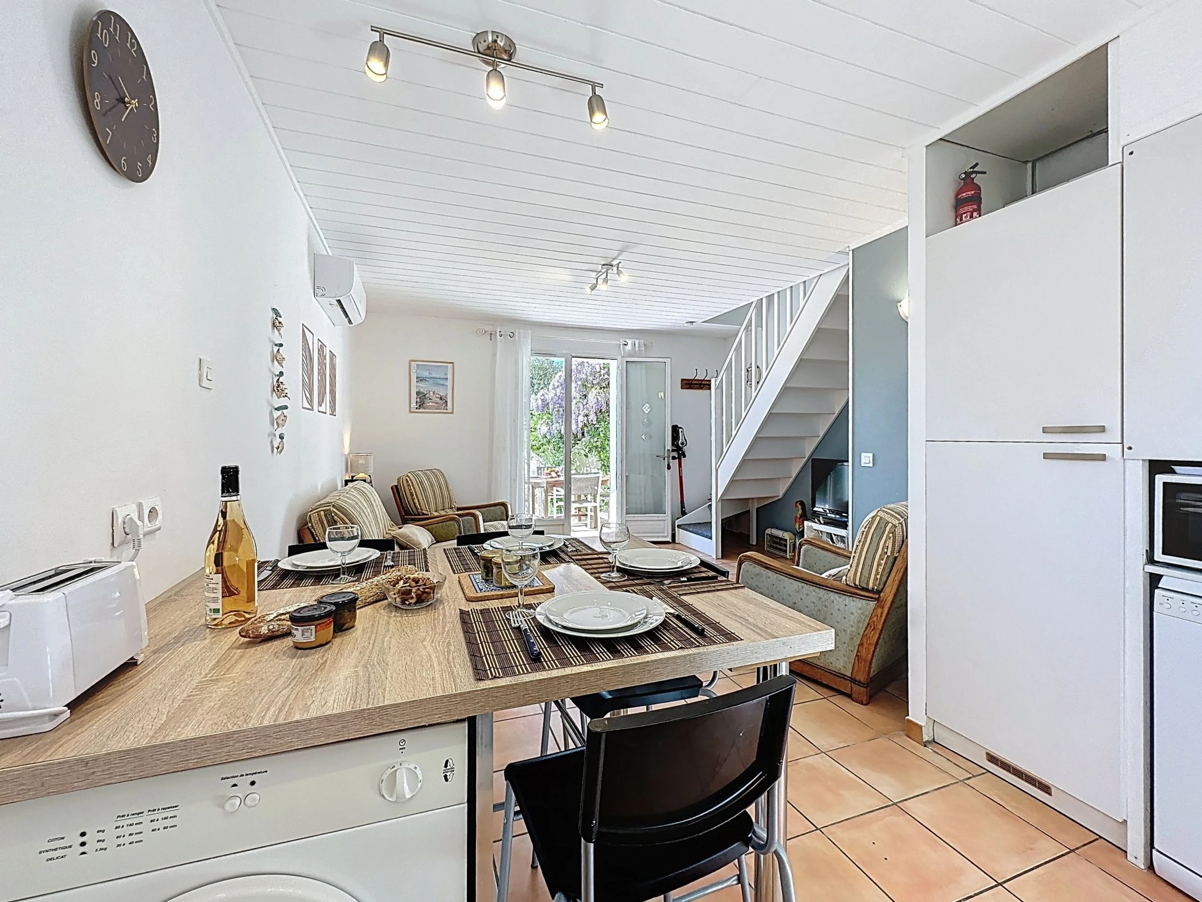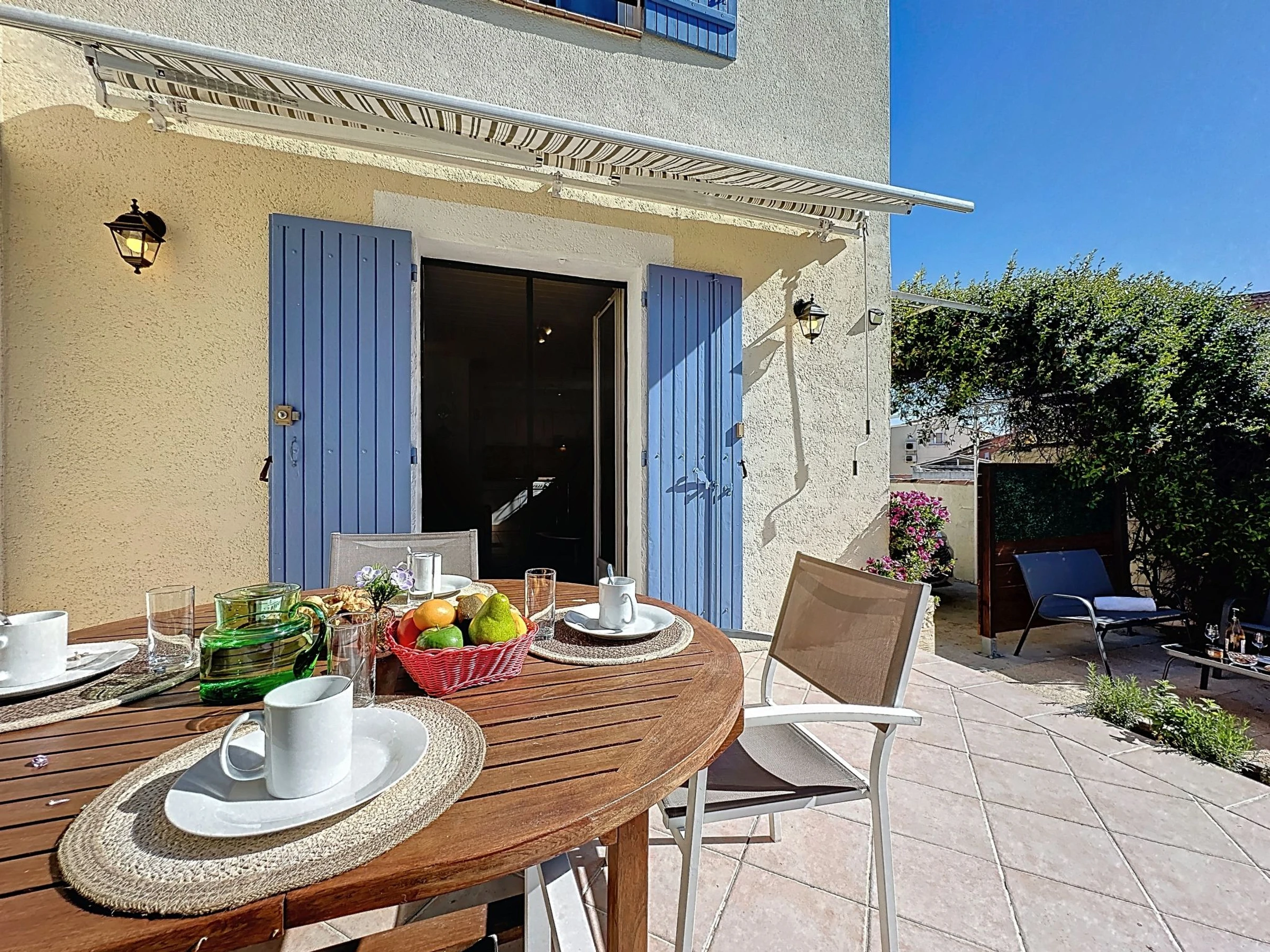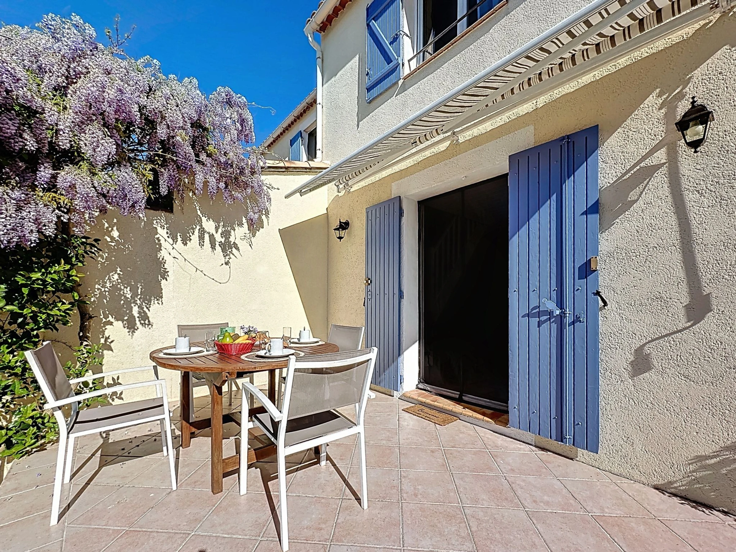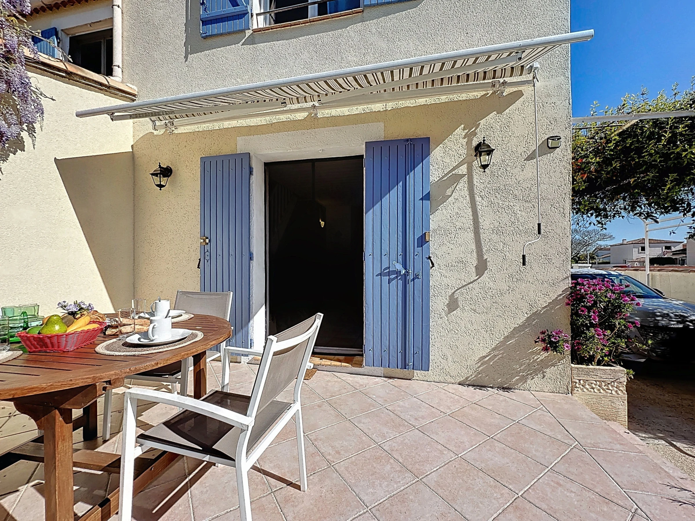 Terraced house "Papaye". In the district of le Boucanet, 1.4 km from the centre of le Grau du Roi, in a sunny position in the residential district, 450 m from the sea, 450 m from the beach, in a cul-de-sac. Parking on the premises. Grocery, supermarket, shopping centre, restaurant 500 m, bar 800 m, bus stop 600 m. Golf course 4.8 km, tennis 2.6 km, riding stable 800 m. Nearby attractions: Les arenes du Grau du roi 1 km, Seaquarium 3 km, Casino Flamingo 3 km, La Grande Motte 4 km, Aigues Mortes 7 km, Nimes 45 km. Hiking paths: Le parc naturel régional de Camargue.