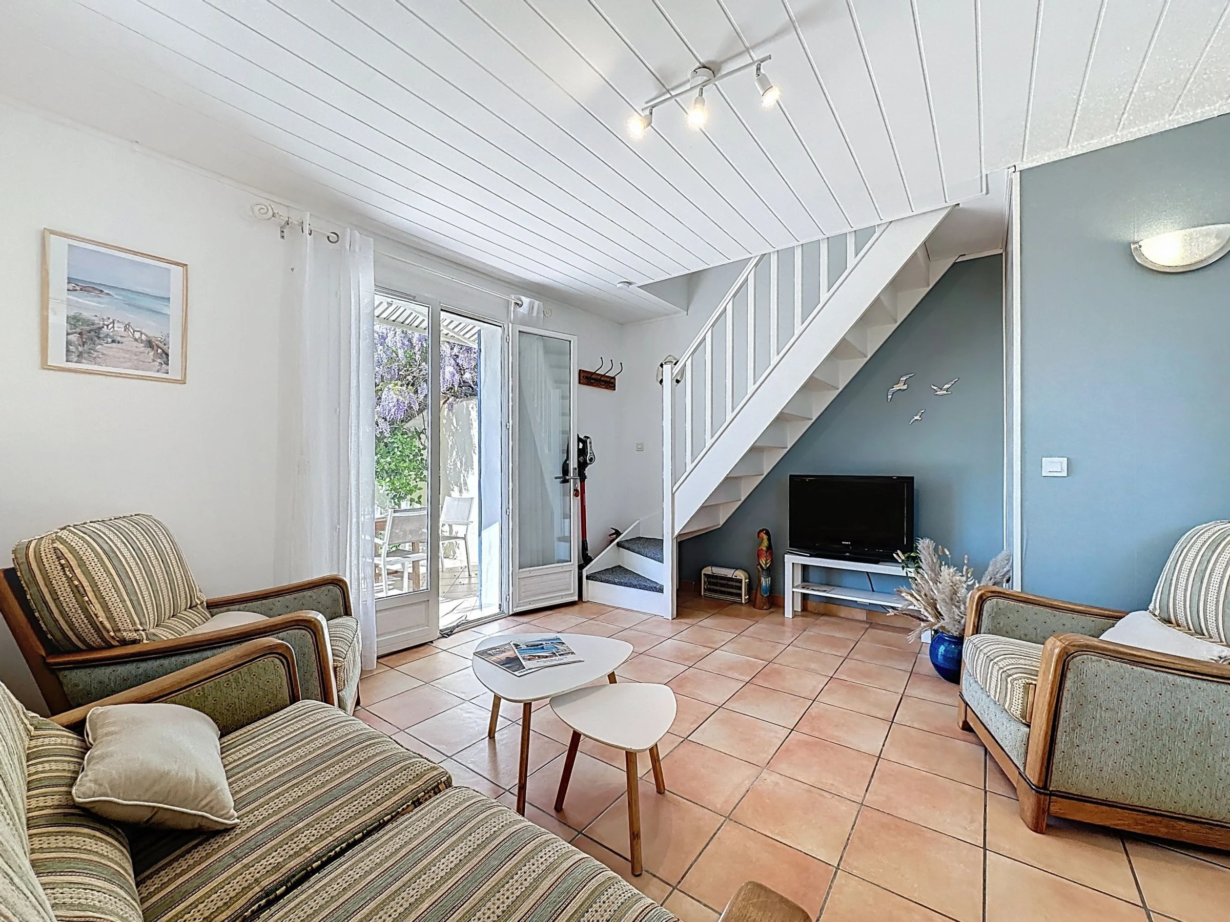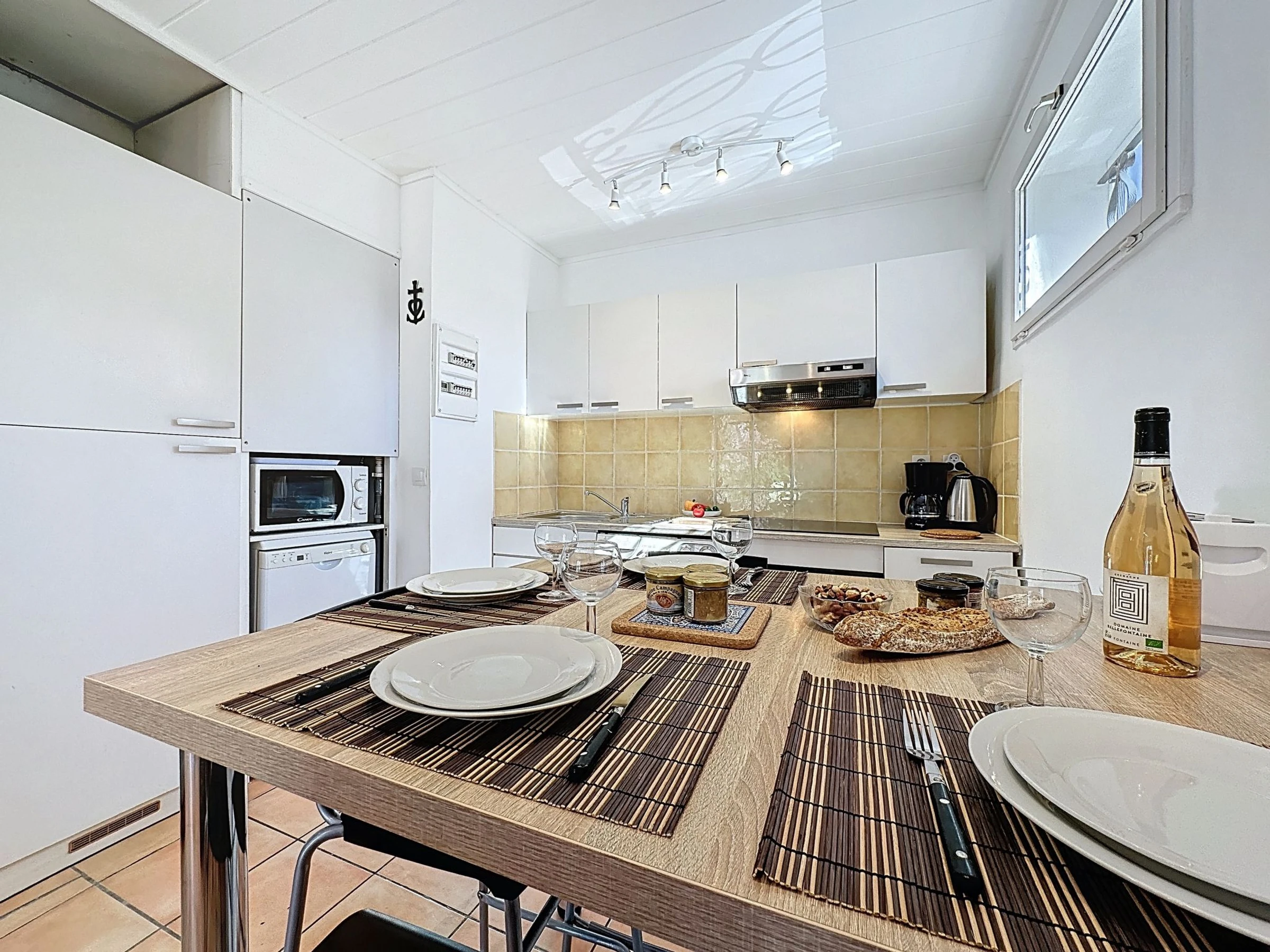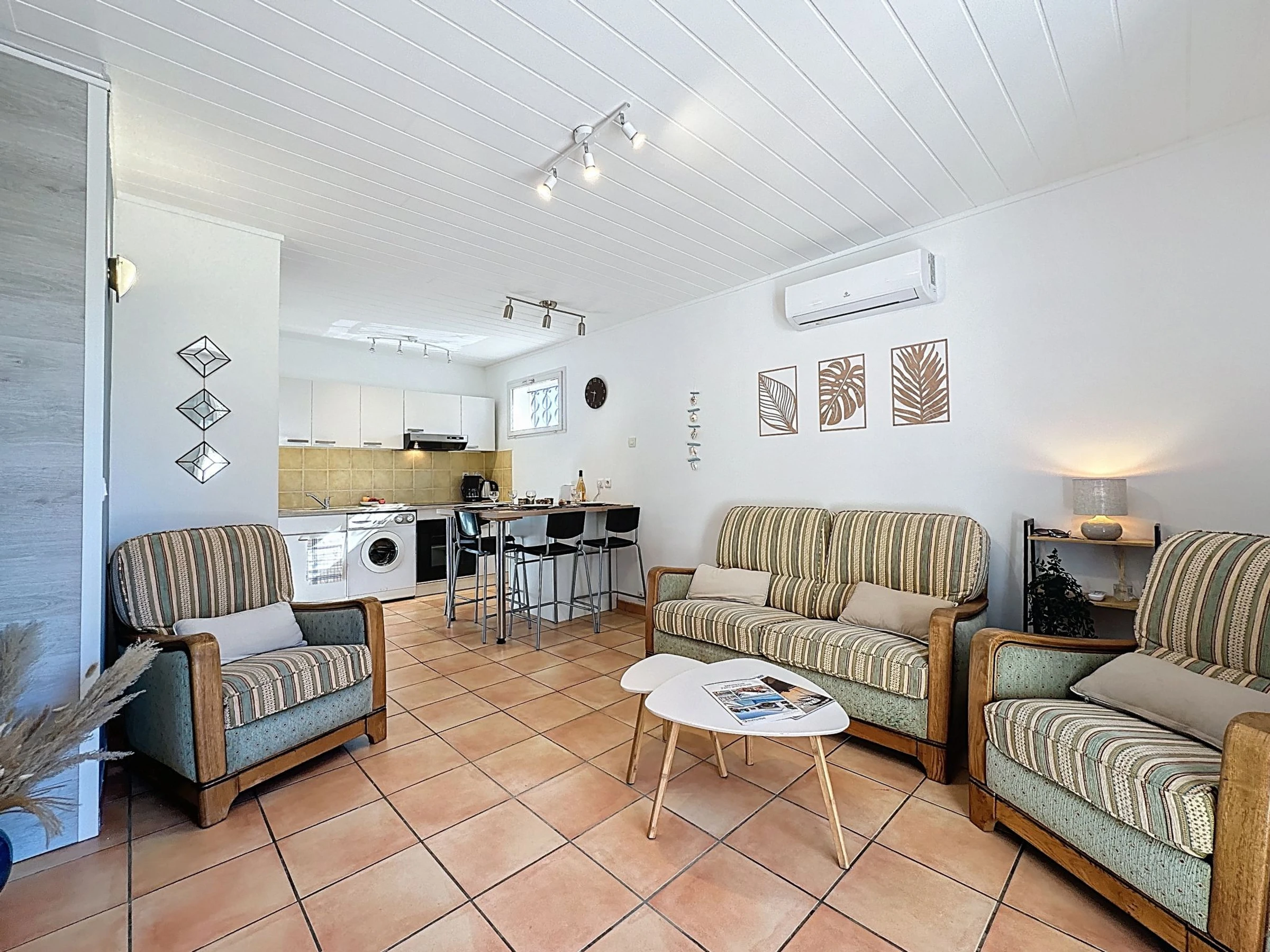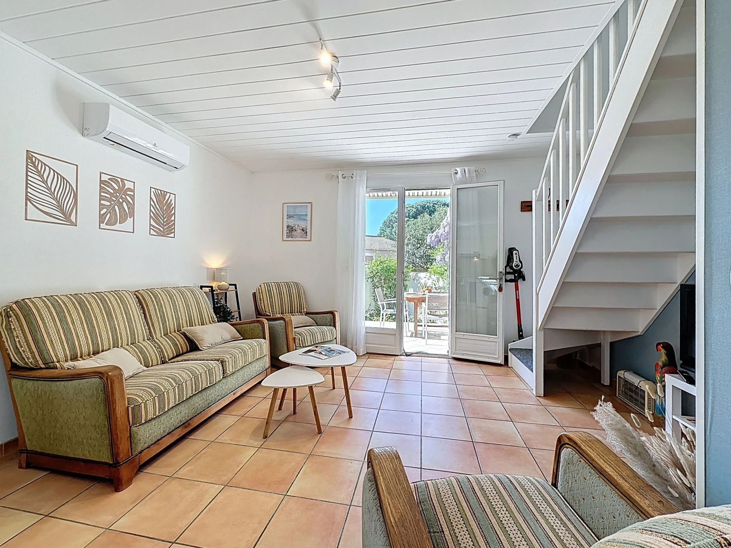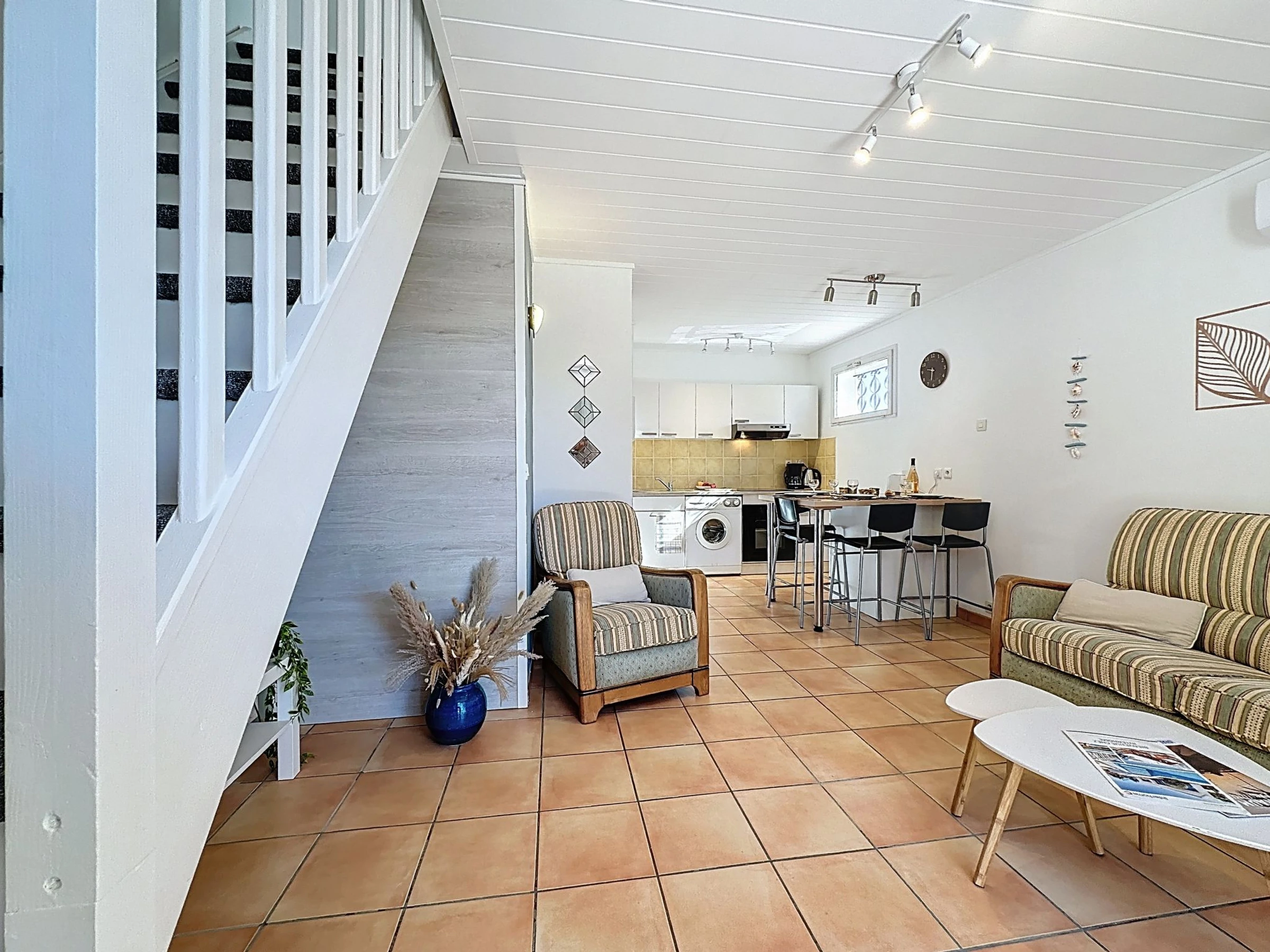 Terraced house "Papaye". In the district of le Boucanet, 1.4 km from the centre of le Grau du Roi, in a sunny position in the residential district, 450 m from the sea, 450 m from the beach, in a cul-de-sac. Parking on the premises. Grocery, supermarket, shopping centre, restaurant 500 m, bar 800 m, bus stop 600 m. Golf course 4.8 km, tennis 2.6 km, riding stable 800 m. Nearby attractions: Les arenes du Grau du roi 1 km, Seaquarium 3 km, Casino Flamingo 3 km, La Grande Motte 4 km, Aigues Mortes 7 km, Nimes 45 km. Hiking paths: Le parc naturel régional de Camargue.