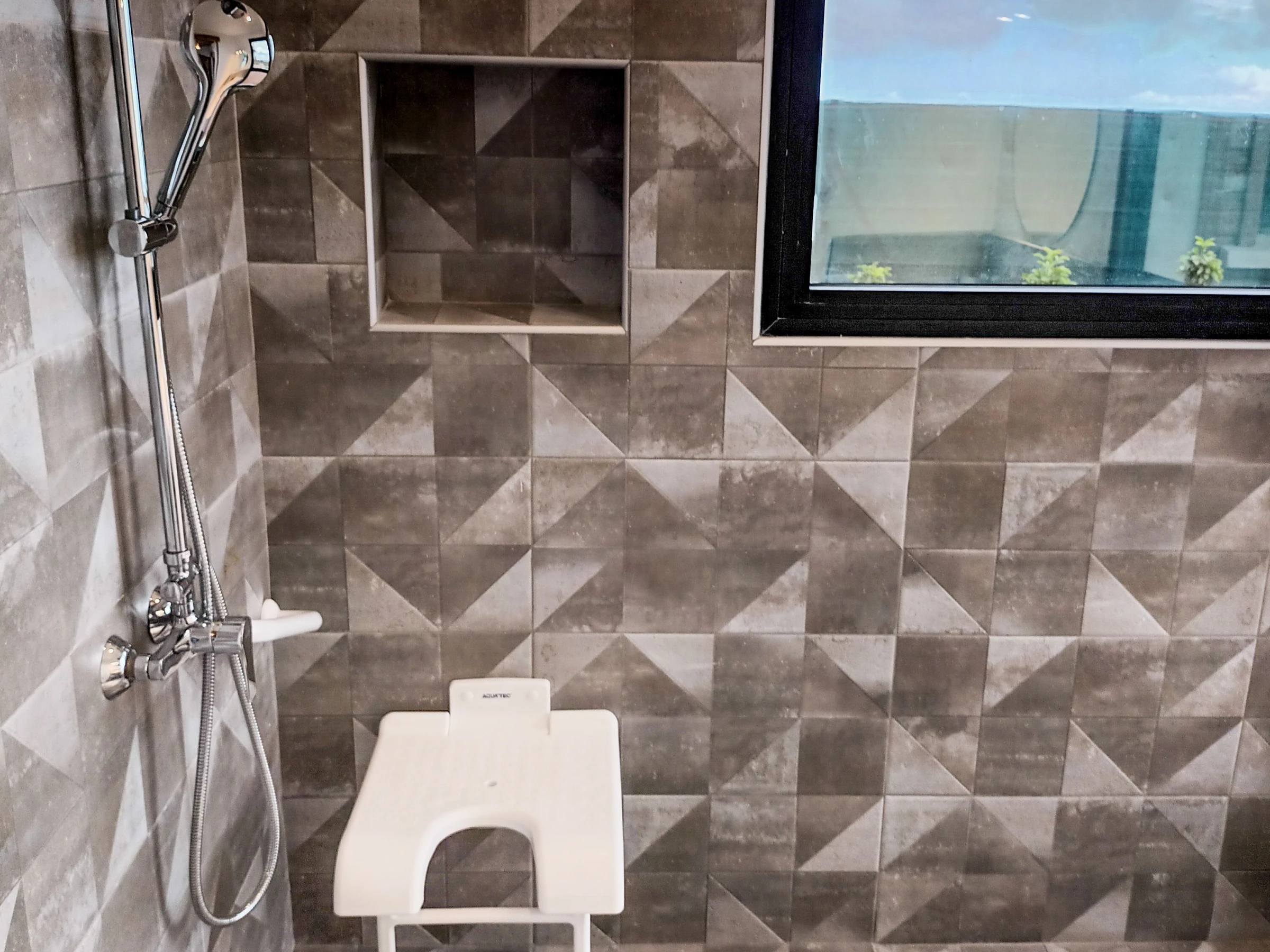 The guesthouse features four bungalows, one of which is accessible to people with reduced mobility. Each bungalow includes an elegant bedroom with a queen-size bed (160x200 cm), a modern bathroom, and a fully equipped open-plan kitchen/living area with an oven, microwave, refrigerator, dishwasher, washing machine, espresso machine, and everything you need to cook just like at home. The lounge area invites relaxation with a smart TV, comfortable sofa, and a welcoming bar for your meals.