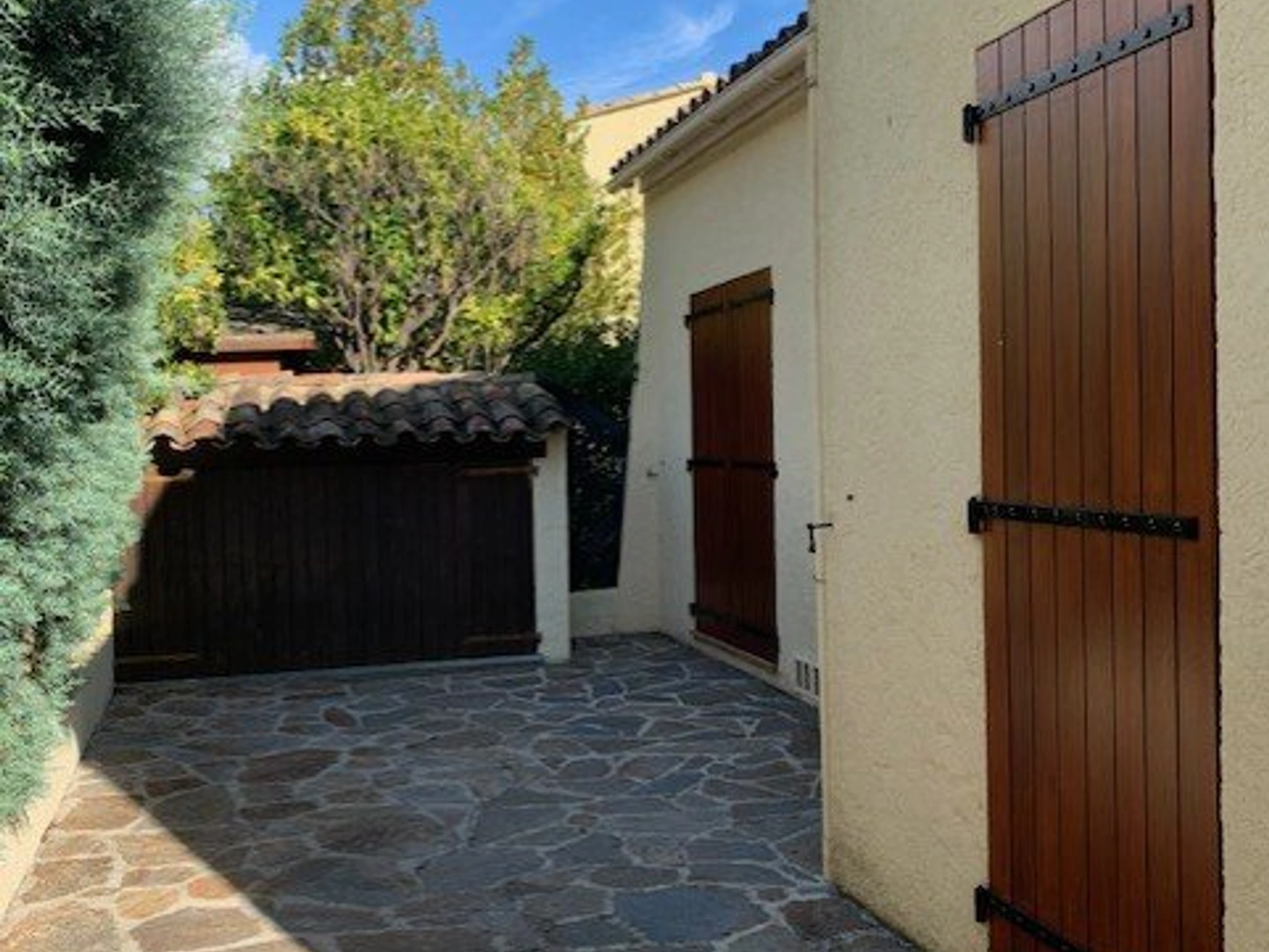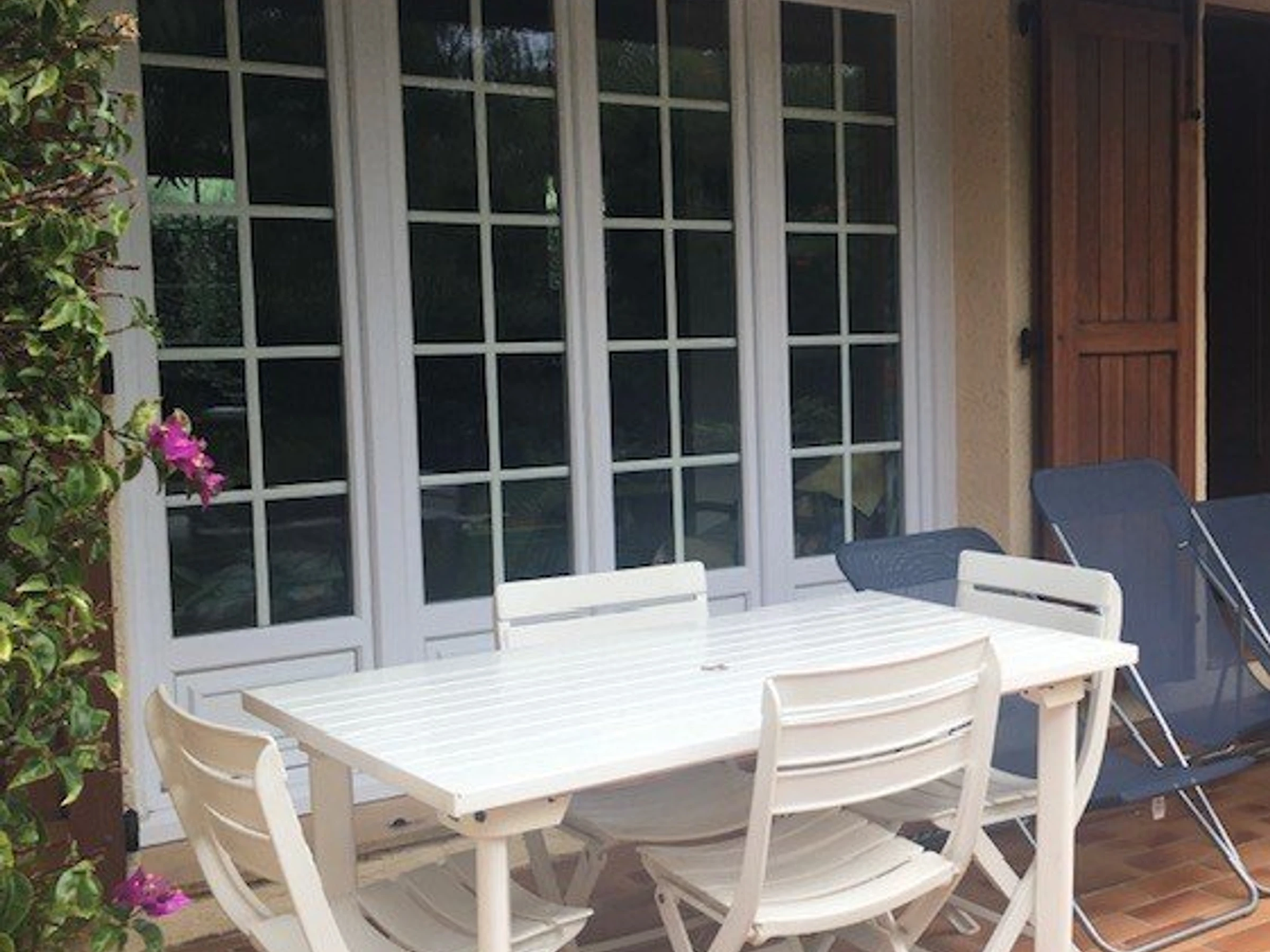 This air-conditioned, 3-room holiday home with a mezzanine measures 70 m² and features a 320 m² wooded garden, terraces, a large patio, and a beautiful view of the Massif des Maures. It's located in a quiet cul-de-sac, just 600 meters from the sandy beach of Saint Clair (an 8-minute walk).