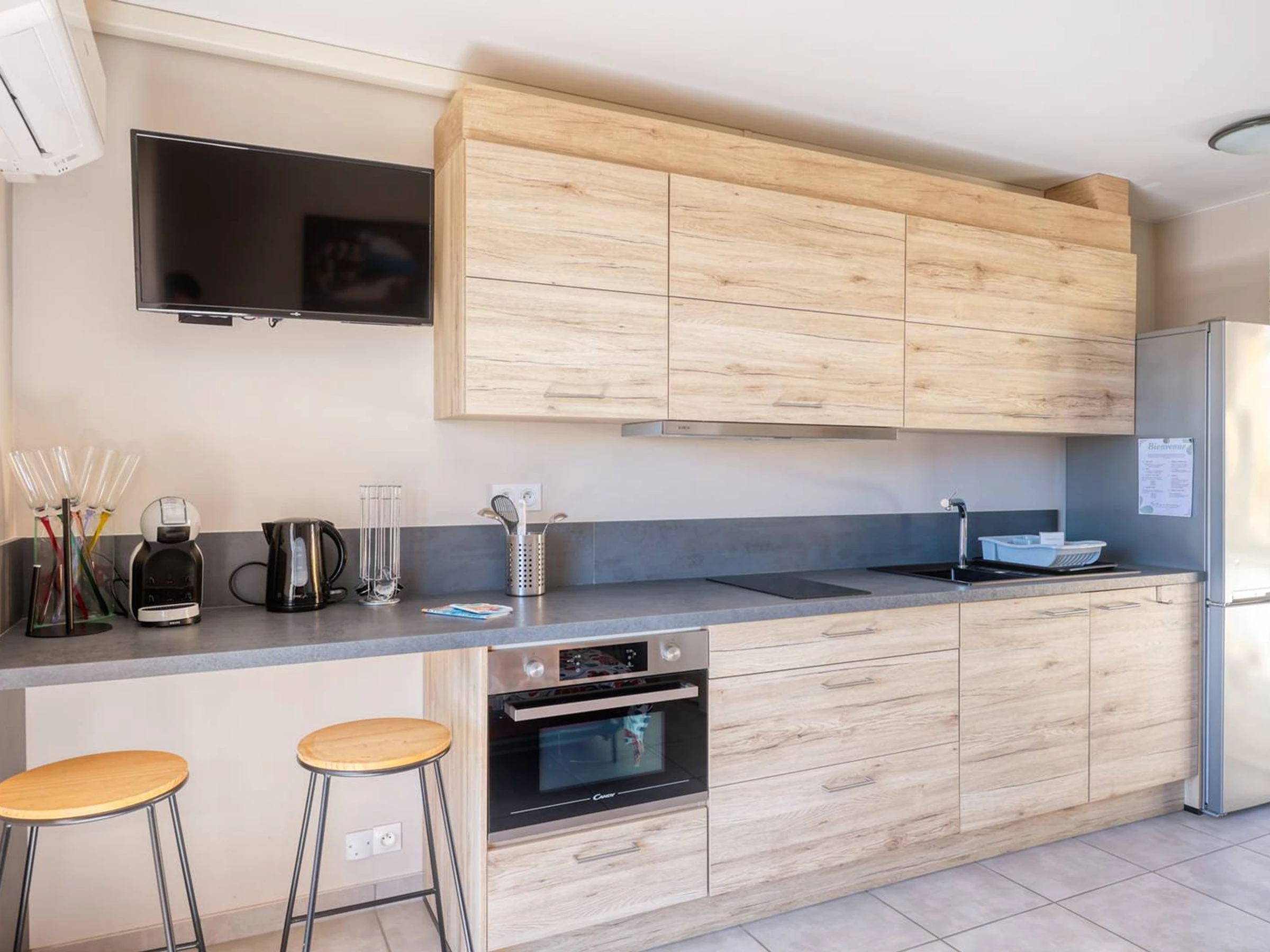Ce studio se compose d’une pièce principale climatisée avec canapé convertible Rapido de qualité supérieure (lit 140*190), un dressing, une cuisine ouverte avec four combiné, machine à laver, TV, ainsi qu’une salle d’eau avec cabine de douche.