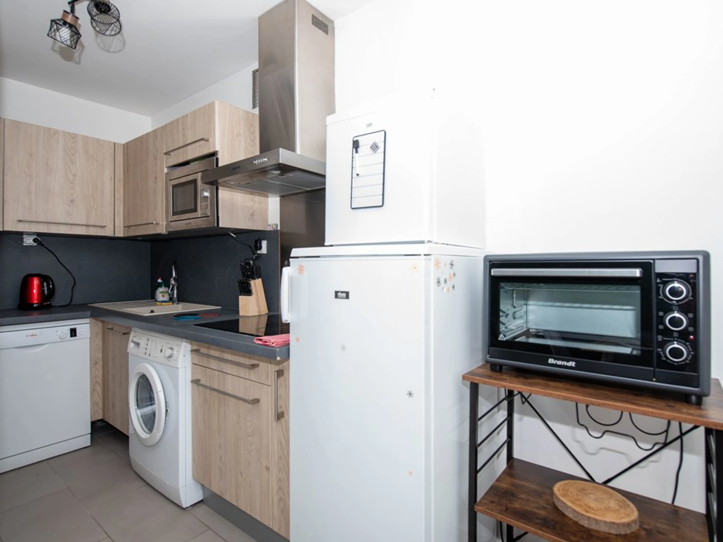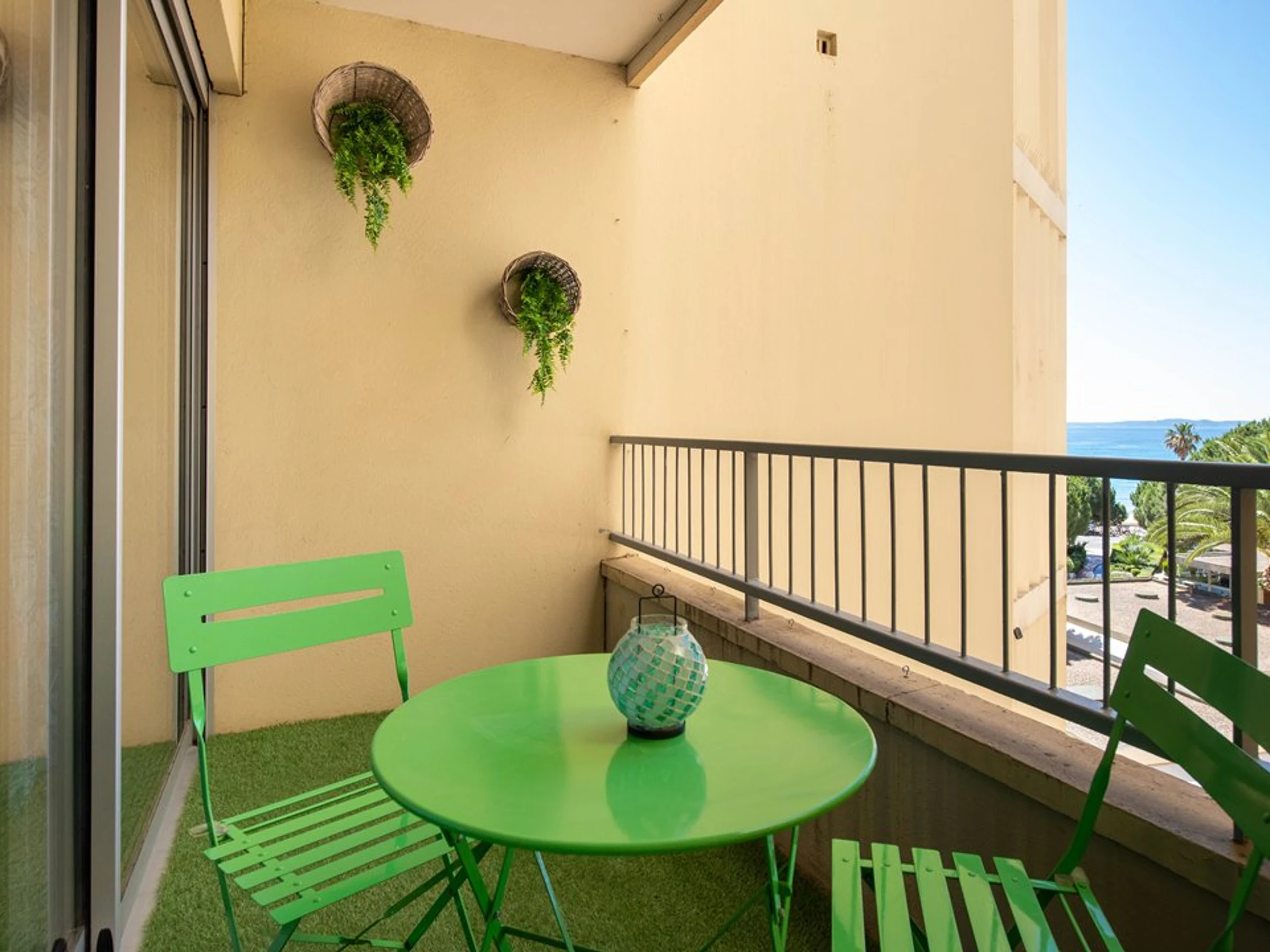 Ref: SUP115, Beautiful 45 m² duplex apartment with air conditioning, sleeps 4, on 2 levels (2 x 8 steps). Entrance. Descend 8 steps: 1st level: lovely living room opening onto a terrace with village views. 140 cm sofa bed in the living room and flat-screen TV. Shower room with WC. Equipped kitchen (oven, dishwasher, washing machine, ceramic hob, fridge-freezer, microwave). Descend another 8 steps: a spacious 15 m² bedroom with a 140 cm bed and a south-facing terrace with sea views. WIFI. Secure underground parking 100m away (access via RD559). Tourist tax not included, 2-star rating.