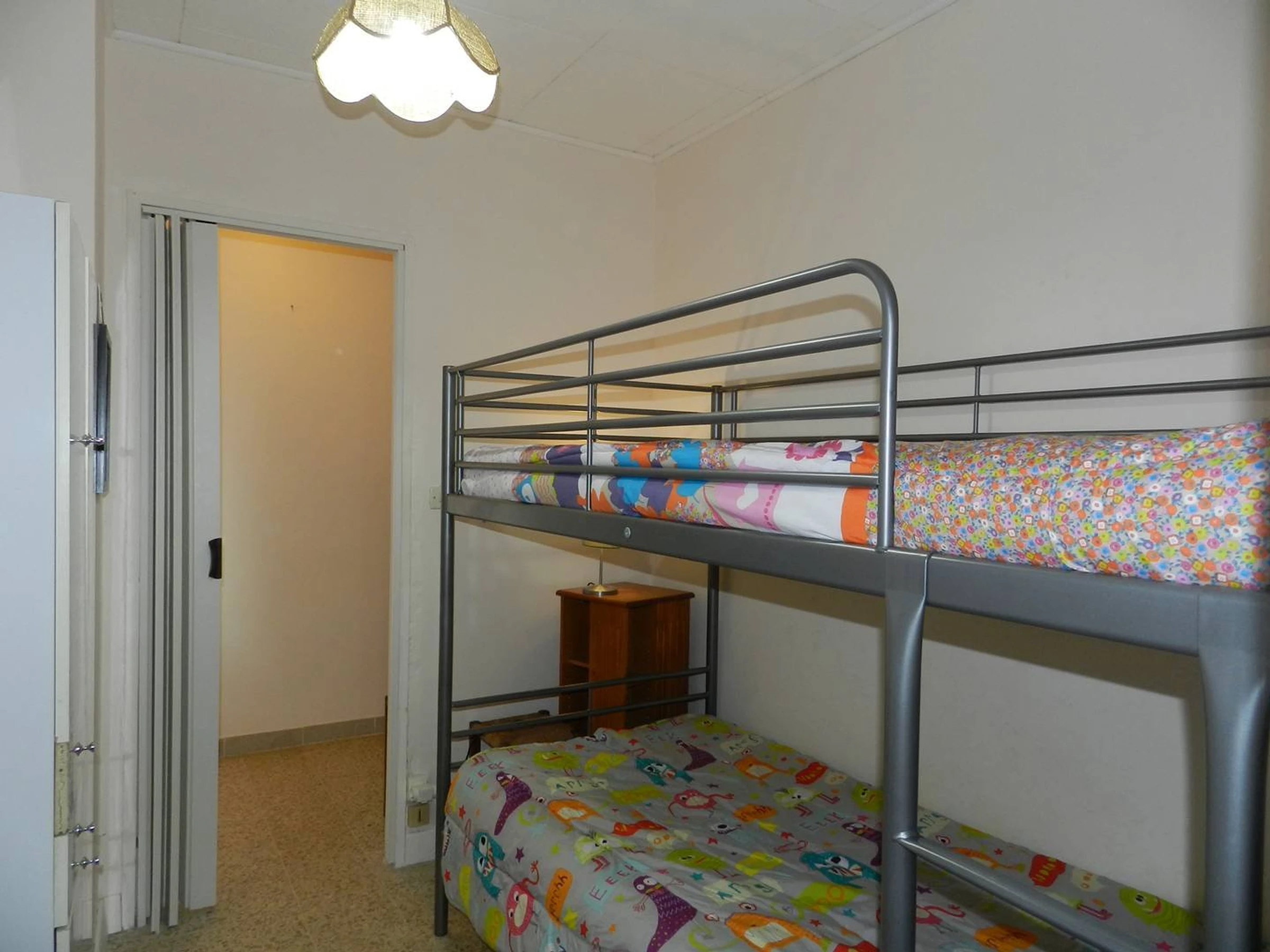 This third-floor apartment (without elevator) features a living room with a sofa bed, a bedroom with a double bed opening onto the northeast-facing terrace, a sleeping alcove with bunk beds, a separate kitchen, and a bathroom with a toilet.