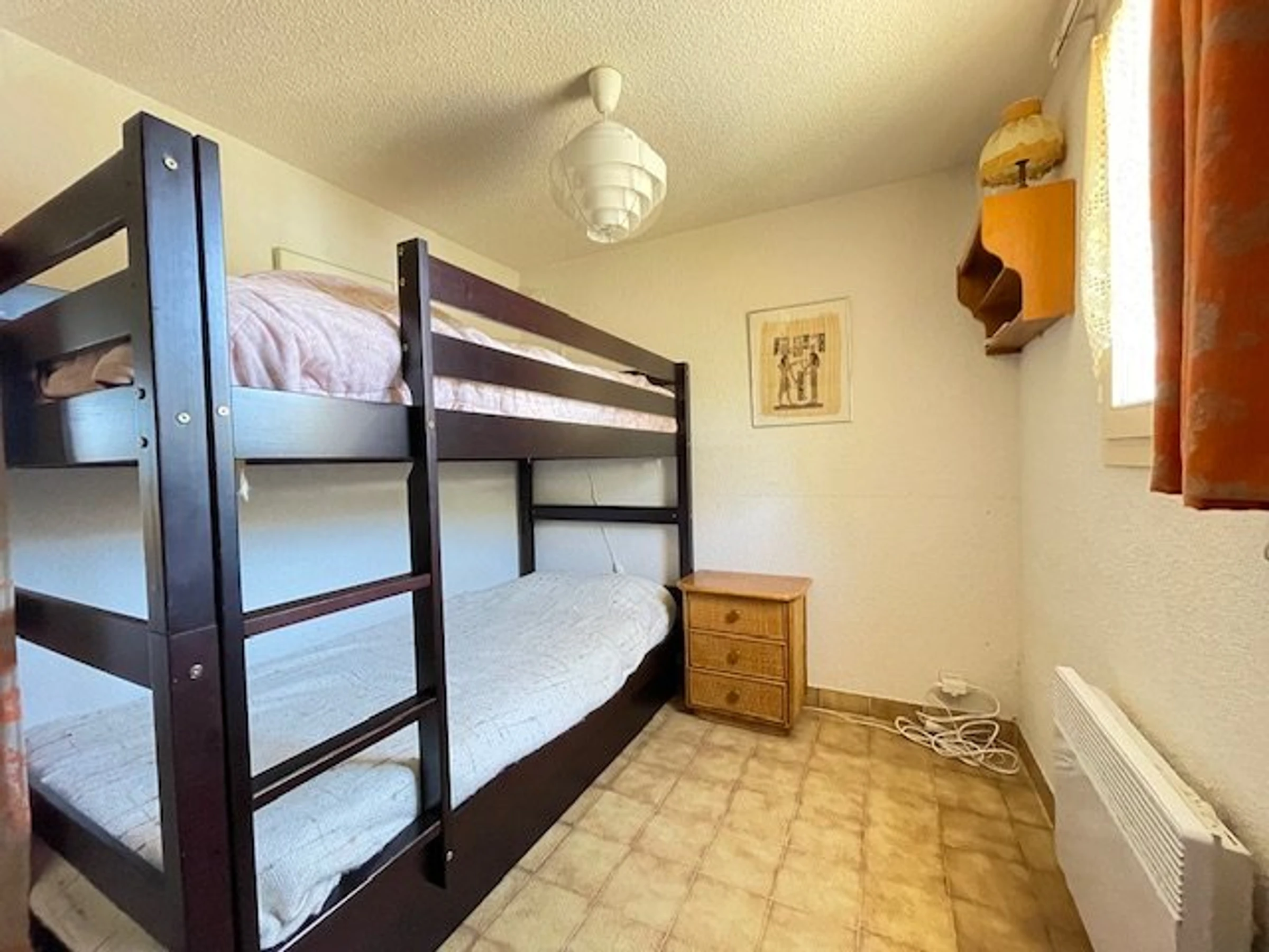This bright and well-designed apartment features a comfortable bedroom and an additional sleeping area, perfect for accommodating children or guests. It has two bathrooms, offering optimal comfort for stays with family or friends. You'll enjoy a pleasant, functional kitchen opening onto a welcoming living room, creating a warm and inviting space ideal for relaxing after a day at the beach.