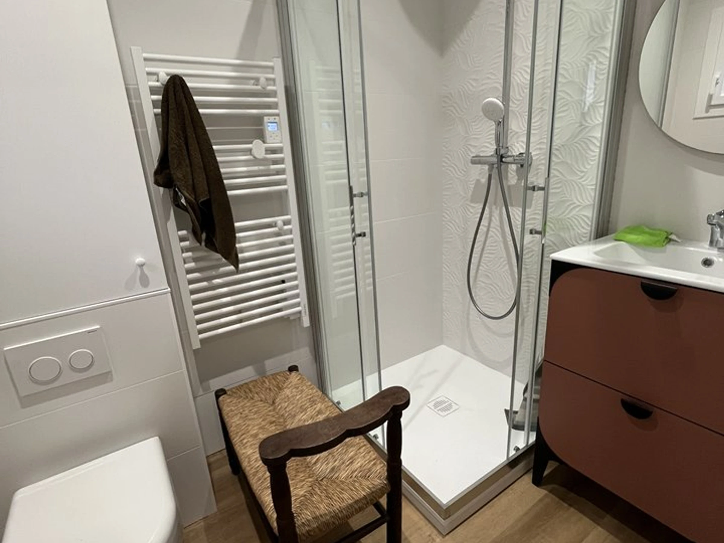 - Living room: equipped kitchenette (4-burner induction hob, oven & large fridge/freezer, microwave, Nespresso coffee machine, dishwasher), dining area, 1 double sofa bed (140 cm) & color TV.