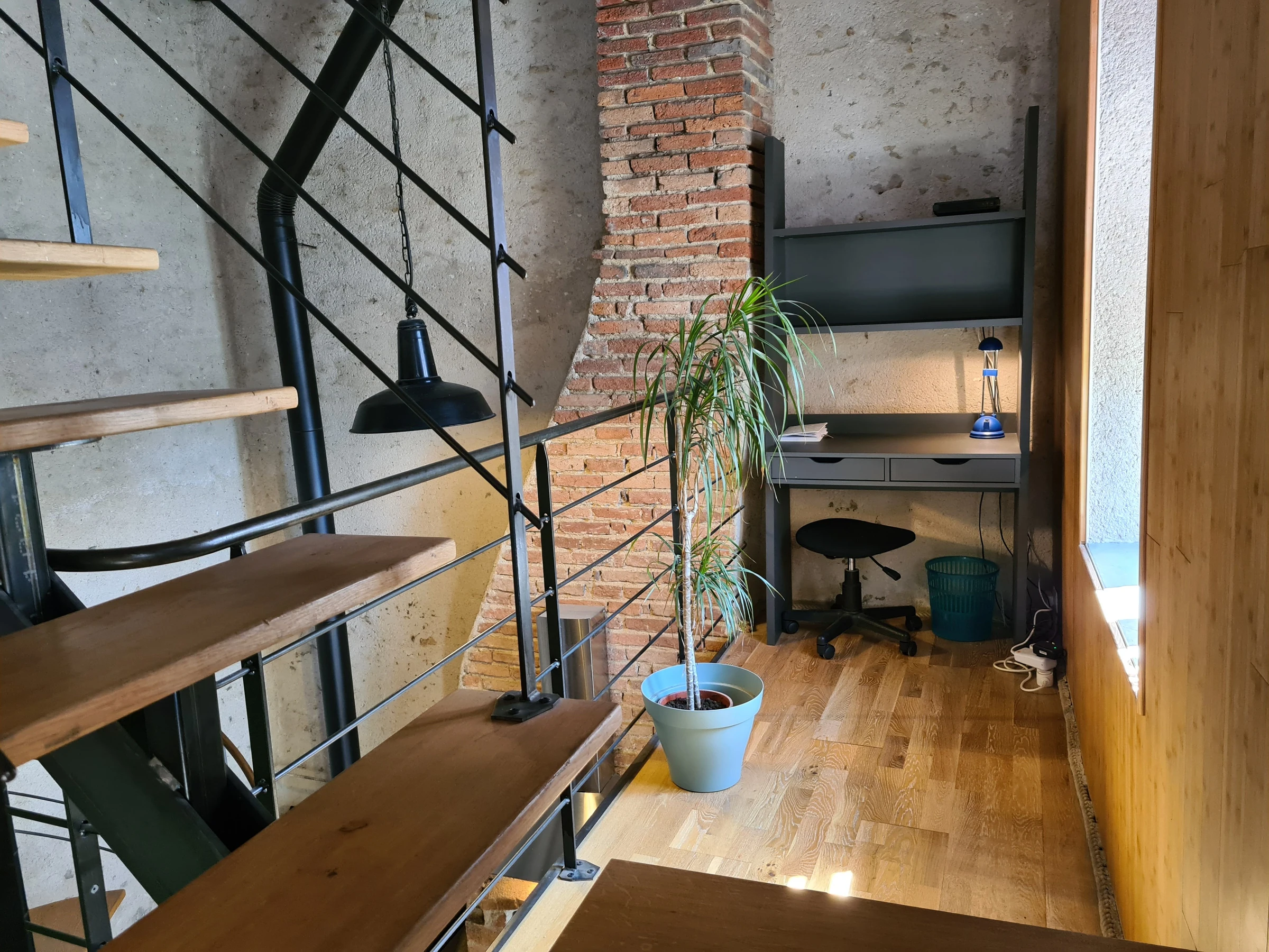 On the 2nd floor: bedroom with a 160 x 200 cm bed and a single bed - Zen corner on the mezzanine (2 foam armchairs).