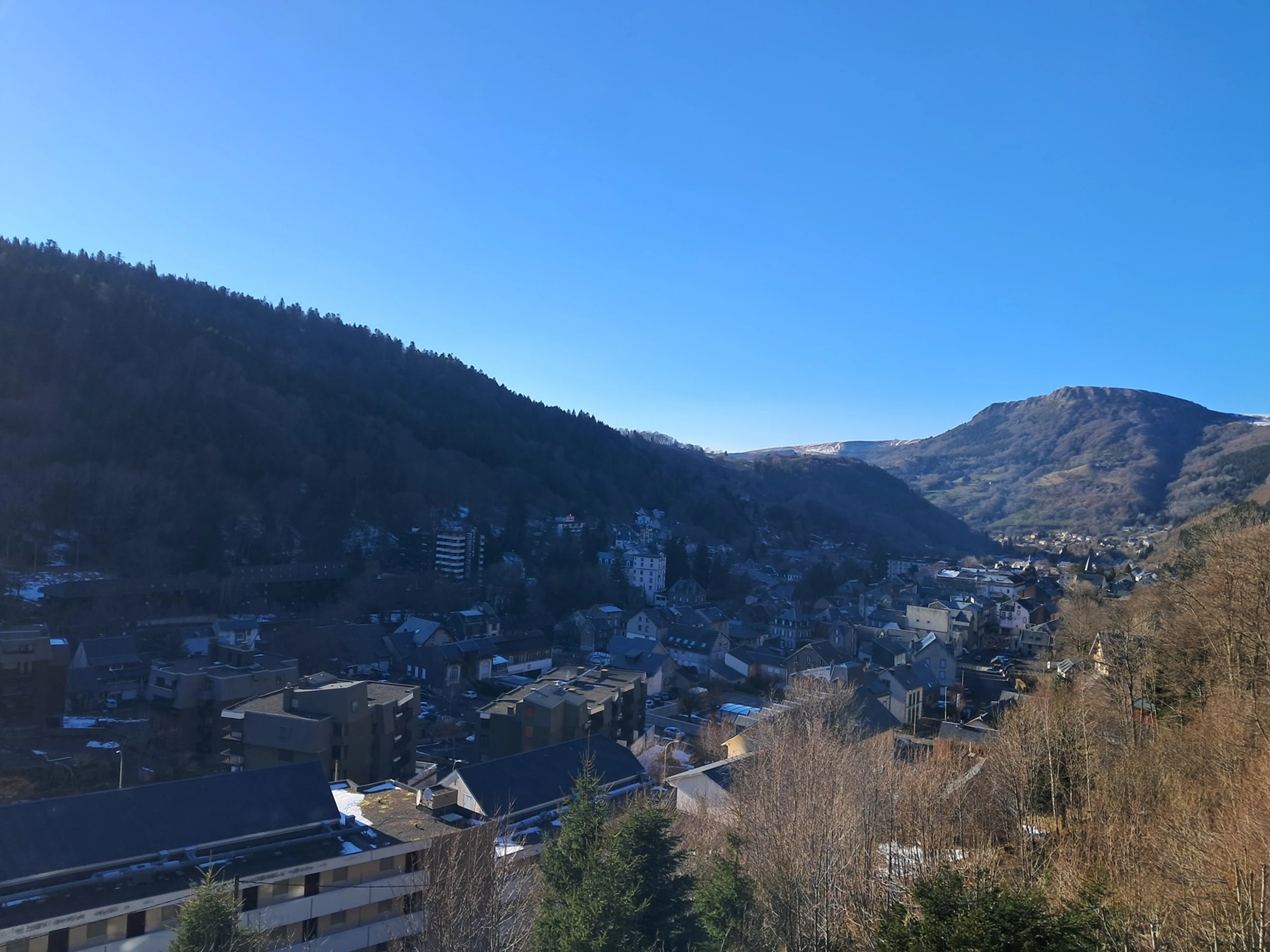 It features a living room (double sofa bed) opening onto a terrace with beautiful views of Mont-Dore and the mountains.