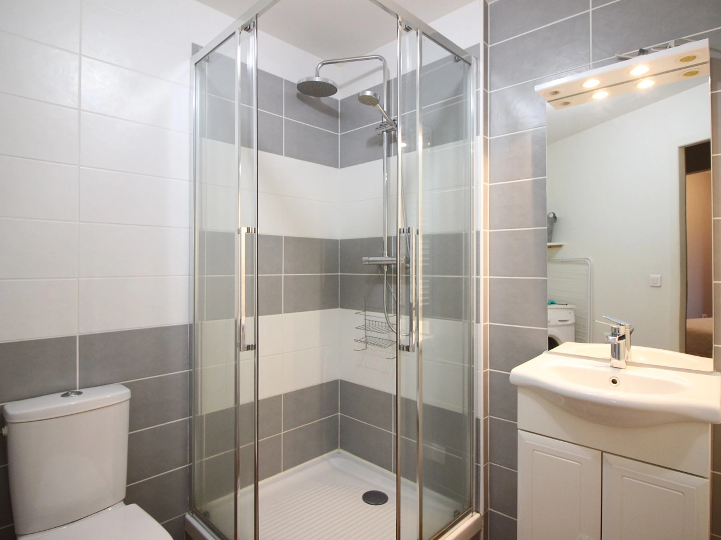 It consists of a 30m² living room with a 2-person sofa bed opening onto a fully equipped kitchen (fridge/freezer, dishwasher, extractor hood, oven, etc.)