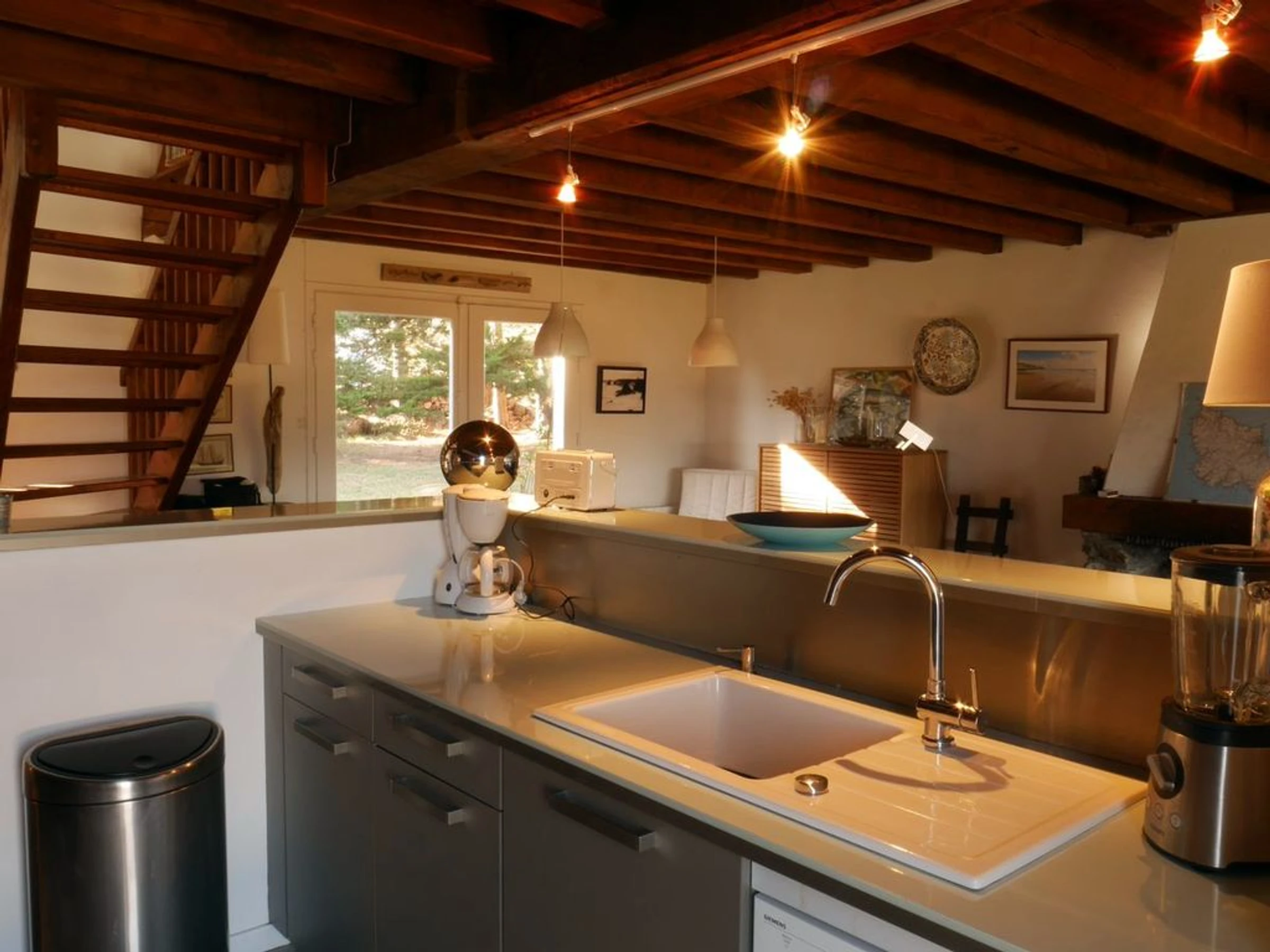 - Une cuisine ( 9 m²) aménagée et équipée avec réfrigérateur, partie congélation, lave-vaisselle, lave-linge, plaques inductions, four et micro-ondes, cafetière et nespresso.