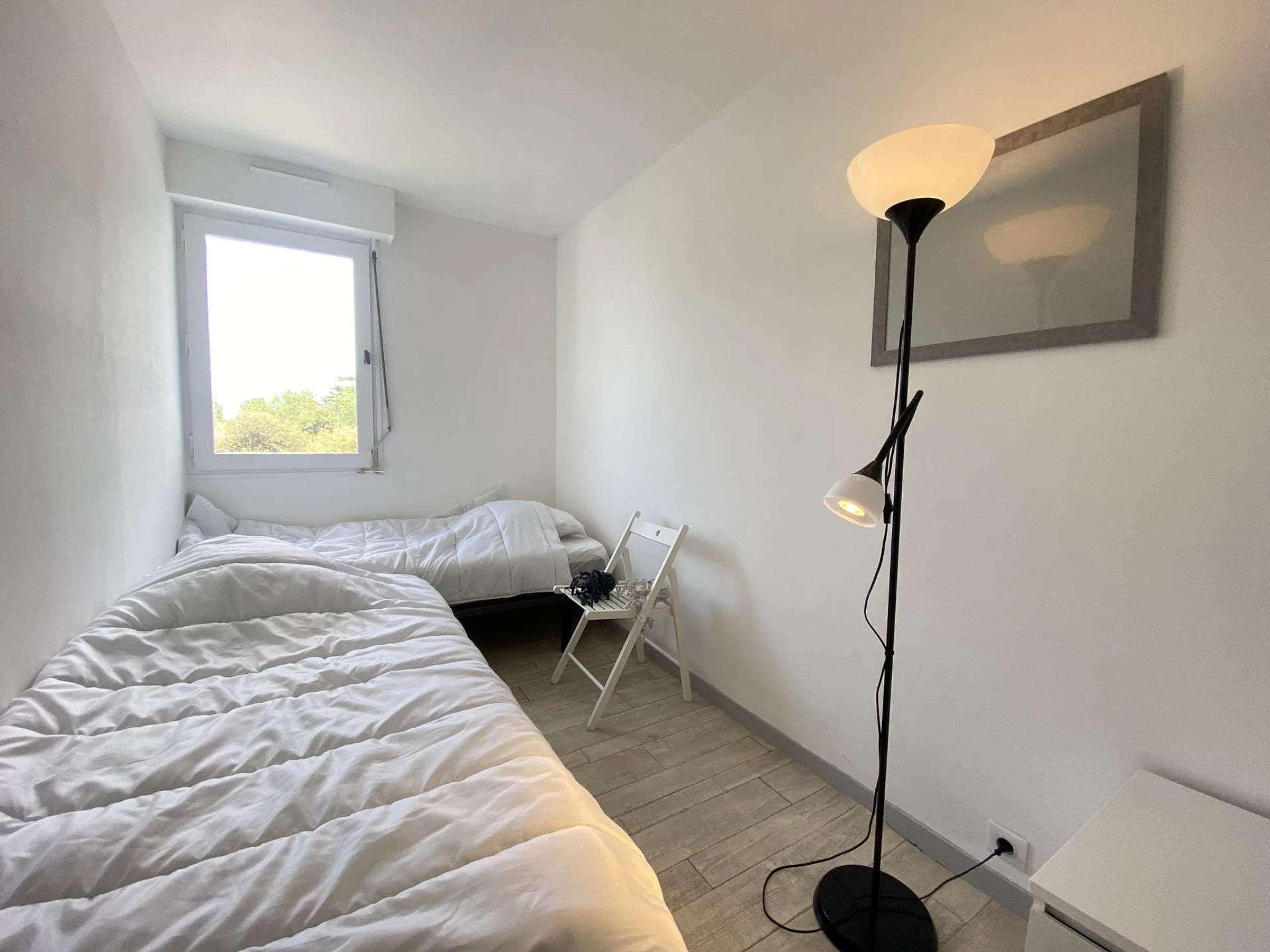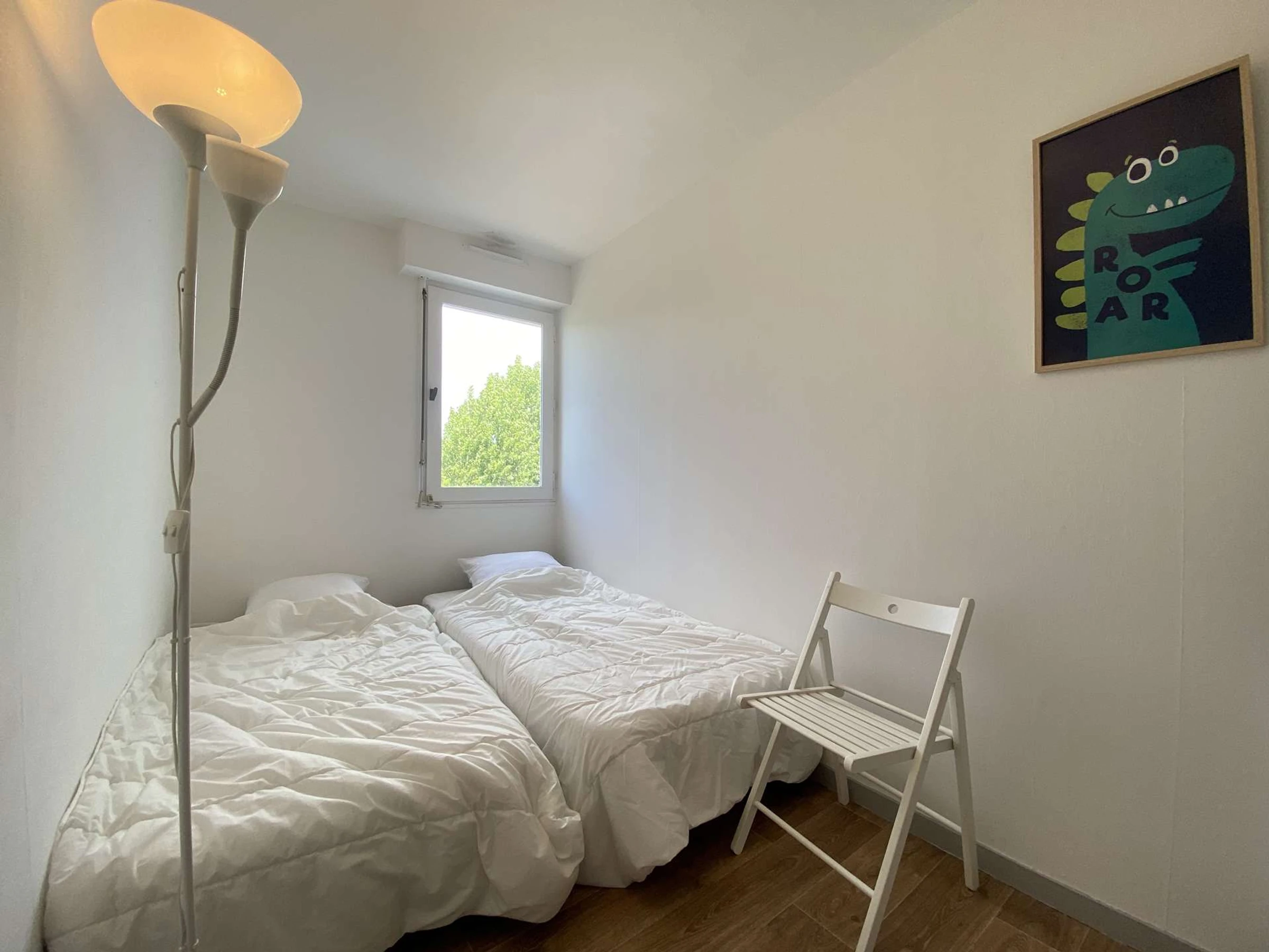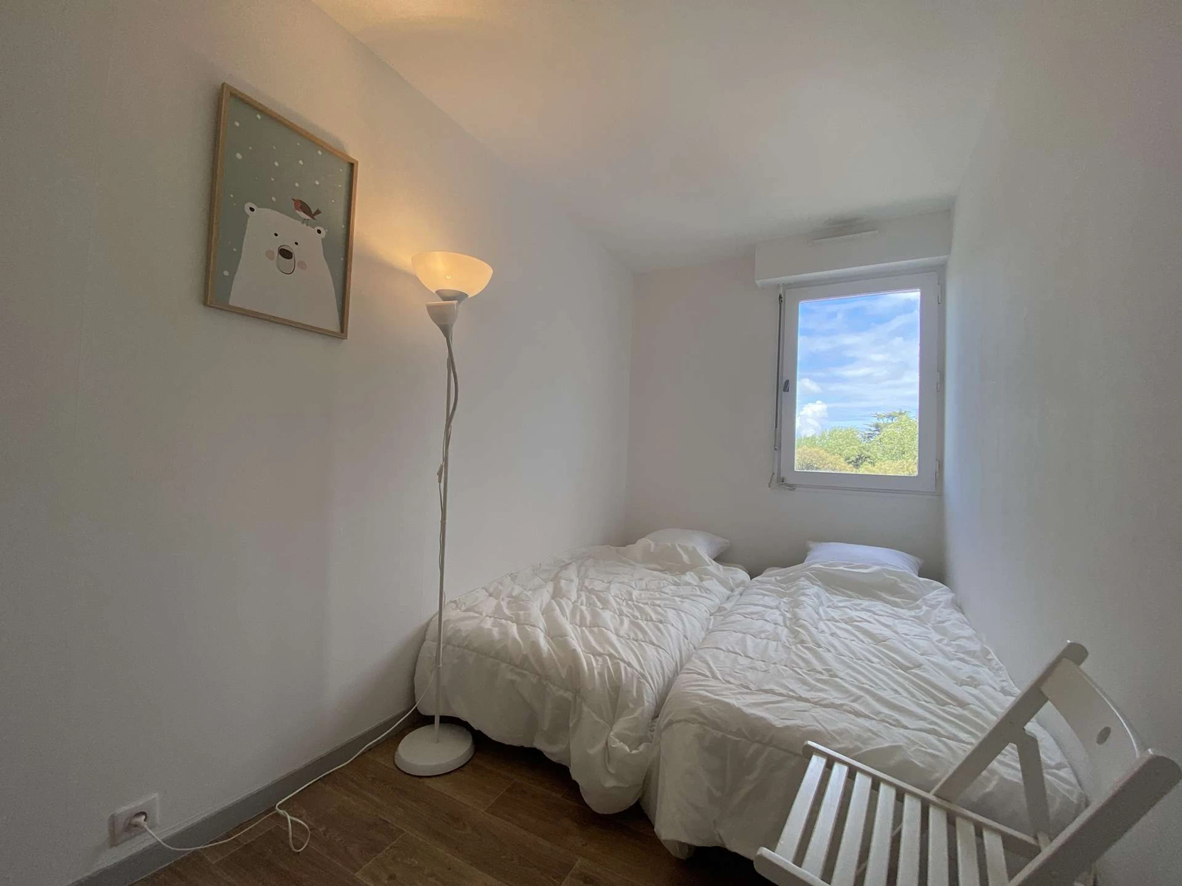 Located on the fourth floor of a residence with elevator, this apartment offers a pleasant view of a green corner. It includes: an entrance, a bright living room with access to a balcony, a separate fitted and fully equipped kitchen, as well as three bedrooms. The first bedroom has a double bed (140x190), the second has two single beds, and the third has two single beds (80x190) as well. The apartment includes a shower room and separate toilet. A private parking space is at your disposal. Finally, end-of-stay cleaning is included for more comfort.
