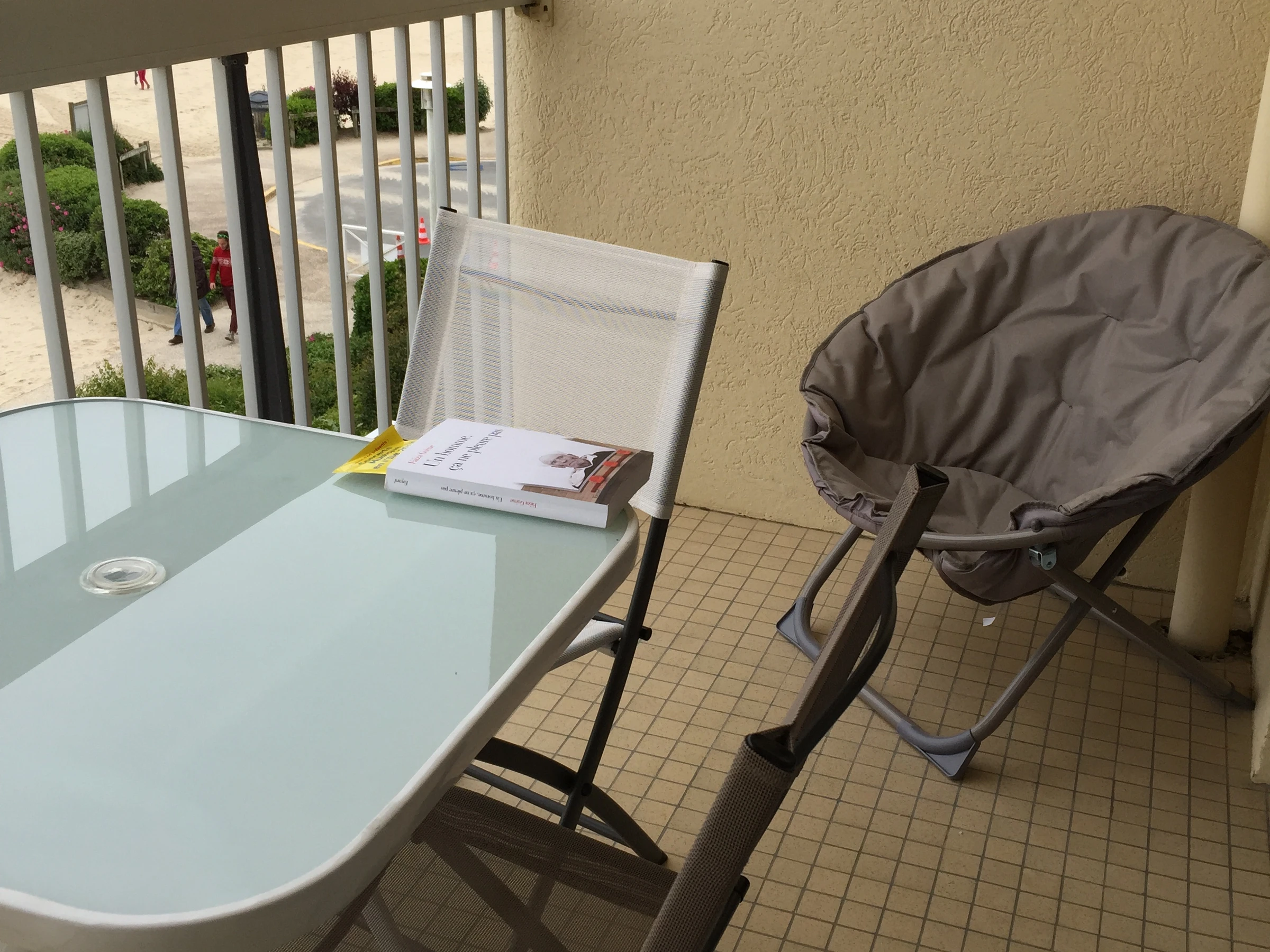 Balcony facing the sea (5.30 m²) with garden furniture.