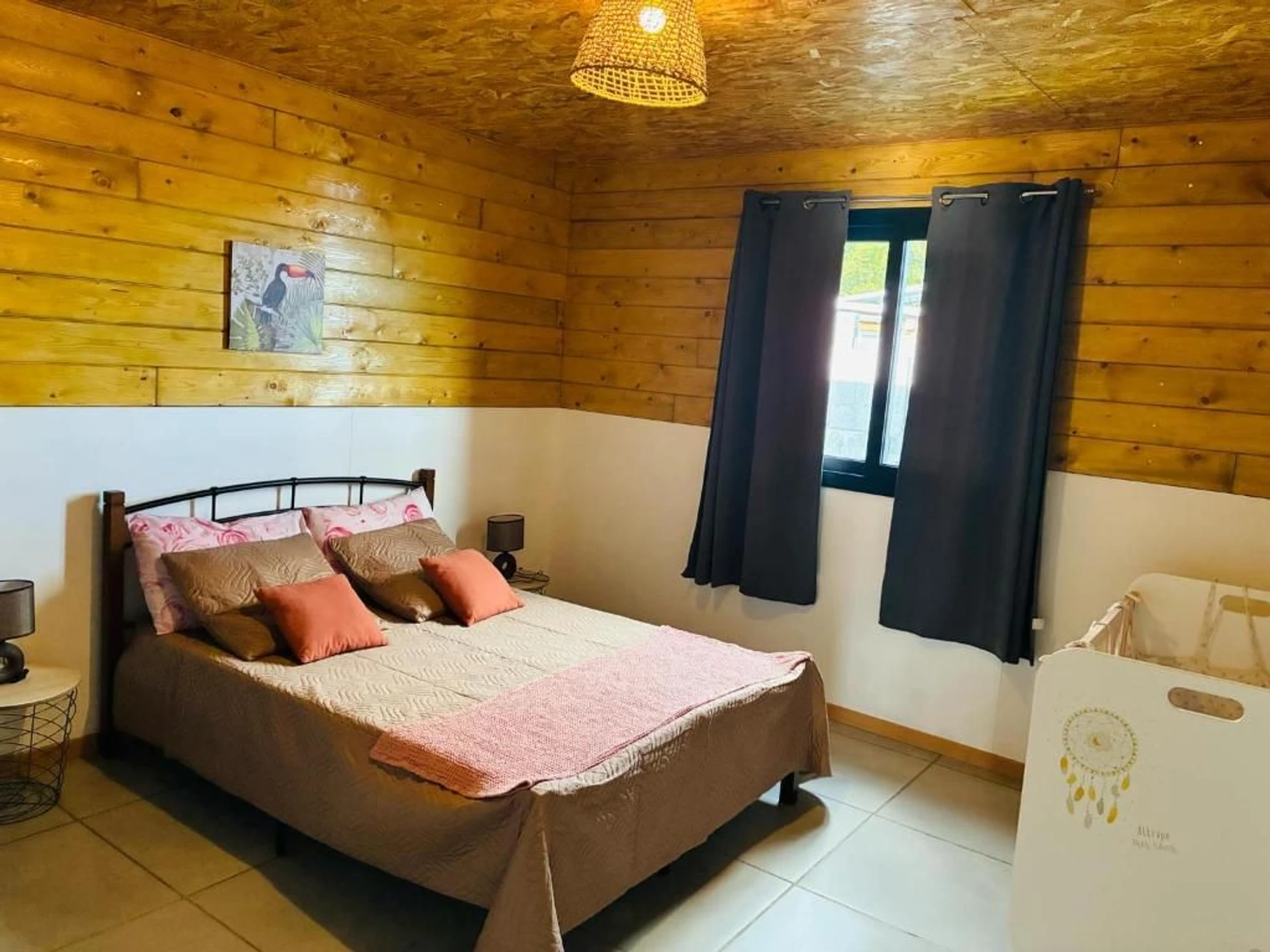 _3 bedrooms (double beds, walk-in closet) and a crib.