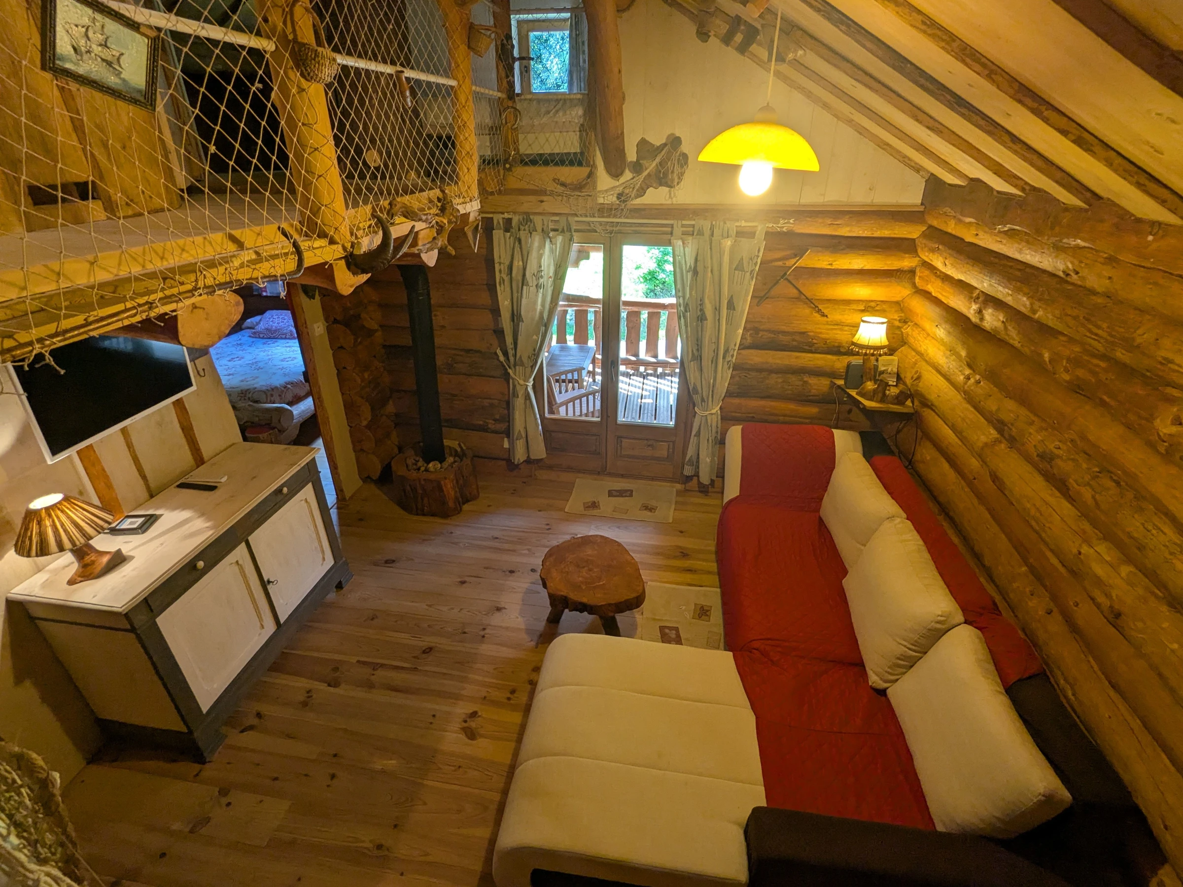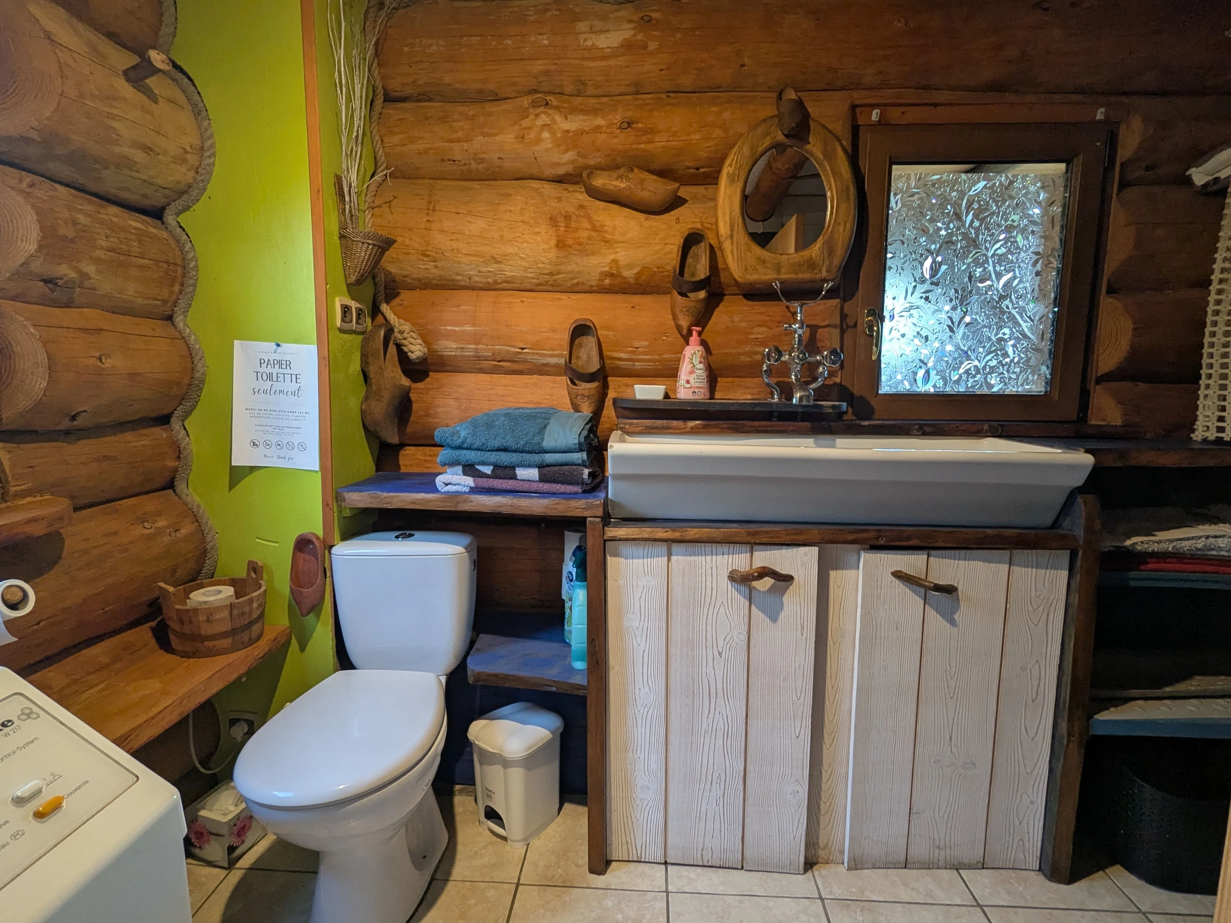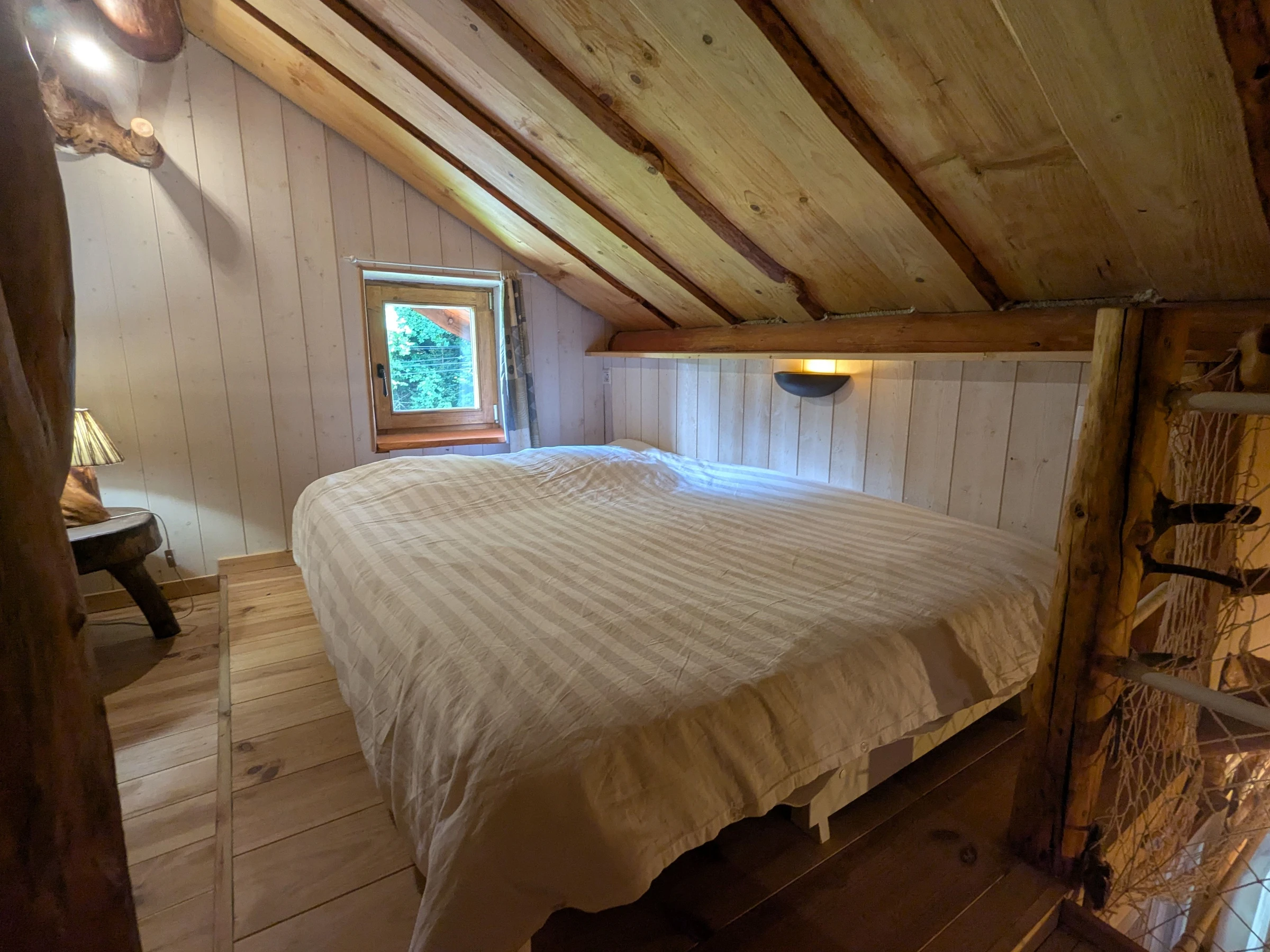 Lovers of the unusual, immerse yourself in the world of trappers by staying at the Léoréine lodge for a weekend or a week. Catherine and Eric welcome you into an extraordinary universe. The house is full of surprising and original details, each piece of trunk and branch has found its purpose. The Davy Crockett juniors will quickly monopolize their hideaway on the 2nd floor. Rest, walks, skiing, water sports, local crafts, you'll have plenty to occupy your stay in this beautiful Vosges region not far from Gérardmer. For families who want to stay together, a second cottage for 6 people is located nearby. Detached log cabin on three levels, comprising: Ground floor: Entrance to open-plan kitchen/living room (electric oven, refrigerator, freezer, 9-place dishwasher, filter and pod coffee maker, kettle, toaster, raclette machine and blender, microwave, 4-burner gas stove). - Living area - Shower room with toilet, washing machine, walk-in shower with curtains, hairdryer.
