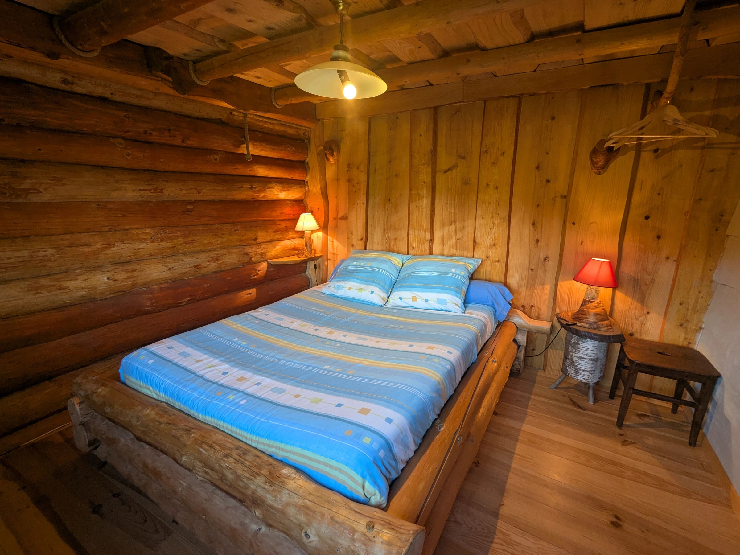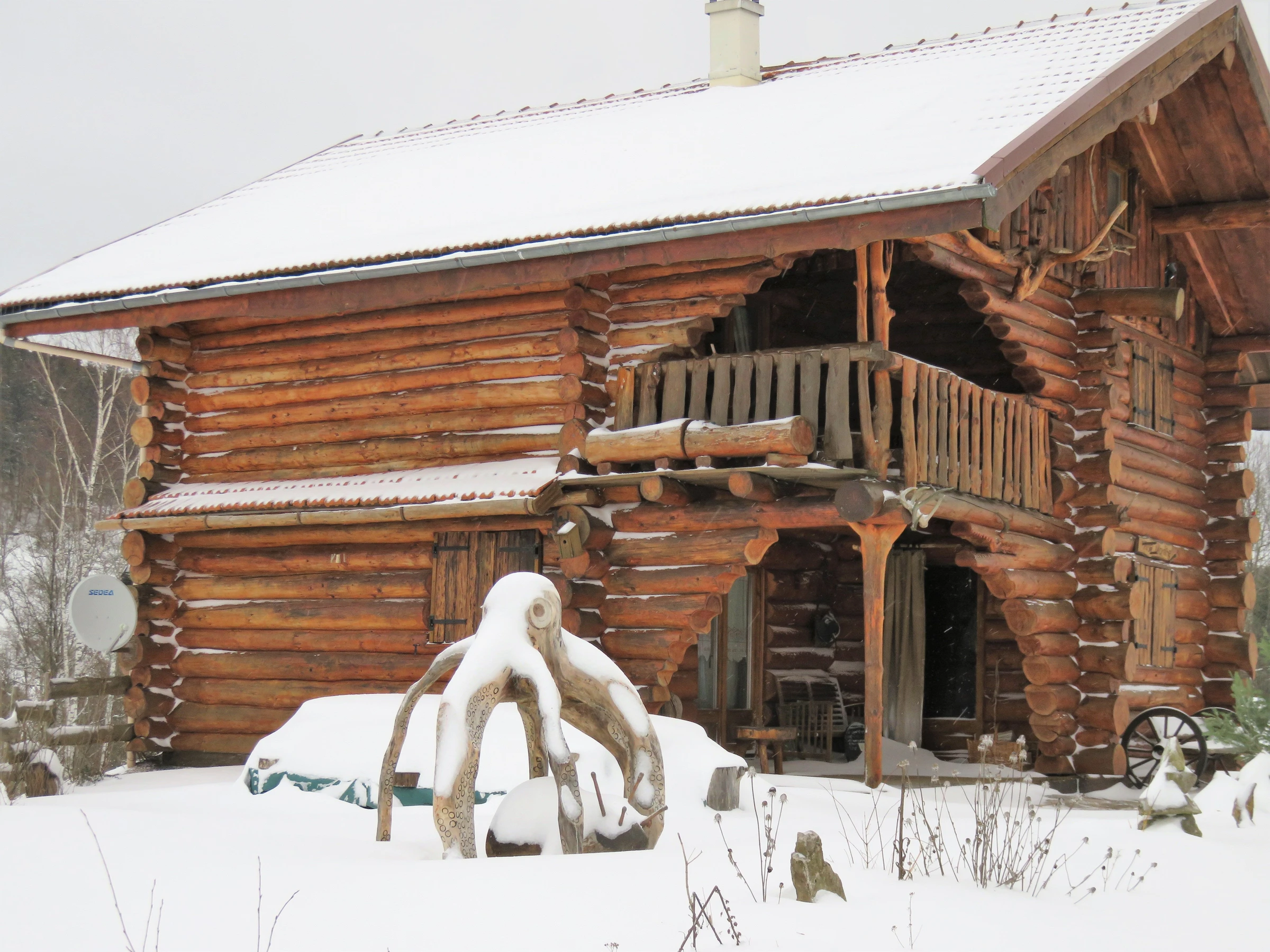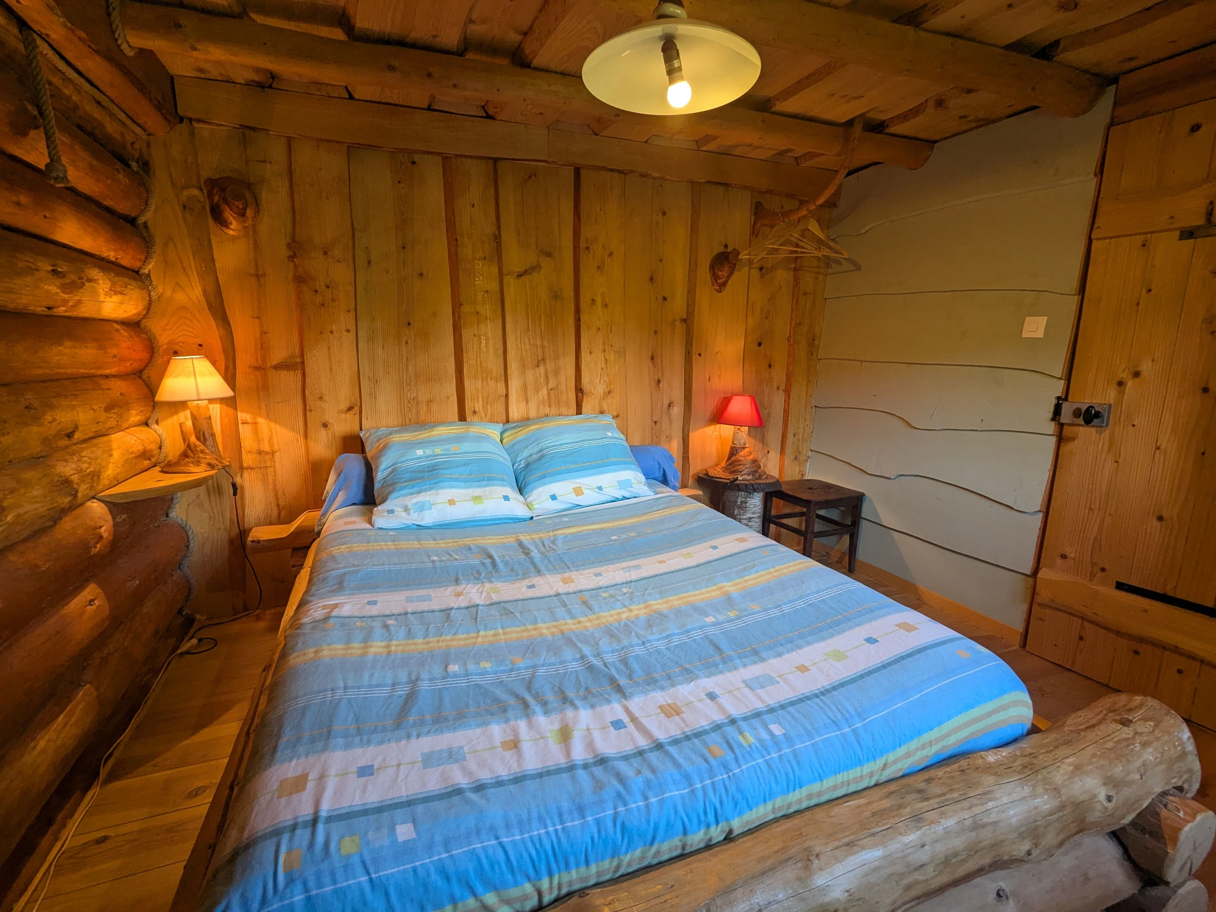 Lovers of the unusual, immerse yourself in the world of trappers by staying at the Léoréine lodge for a weekend or a week. Catherine and Eric welcome you into an extraordinary universe. The house is full of surprising and original details, each piece of trunk and branch has found its purpose. The Davy Crockett juniors will quickly monopolize their hideaway on the 2nd floor. Rest, walks, skiing, water sports, local crafts, you'll have plenty to occupy your stay in this beautiful Vosges region not far from Gérardmer. For families who want to stay together, a second cottage for 6 people is located nearby. Detached log cabin on three levels, comprising: Ground floor: Entrance to open-plan kitchen/living room (electric oven, refrigerator, freezer, 9-place dishwasher, filter and pod coffee maker, kettle, toaster, raclette machine and blender, microwave, 4-burner gas stove). - Living area - Shower room with toilet, washing machine, walk-in shower with curtains, hairdryer.