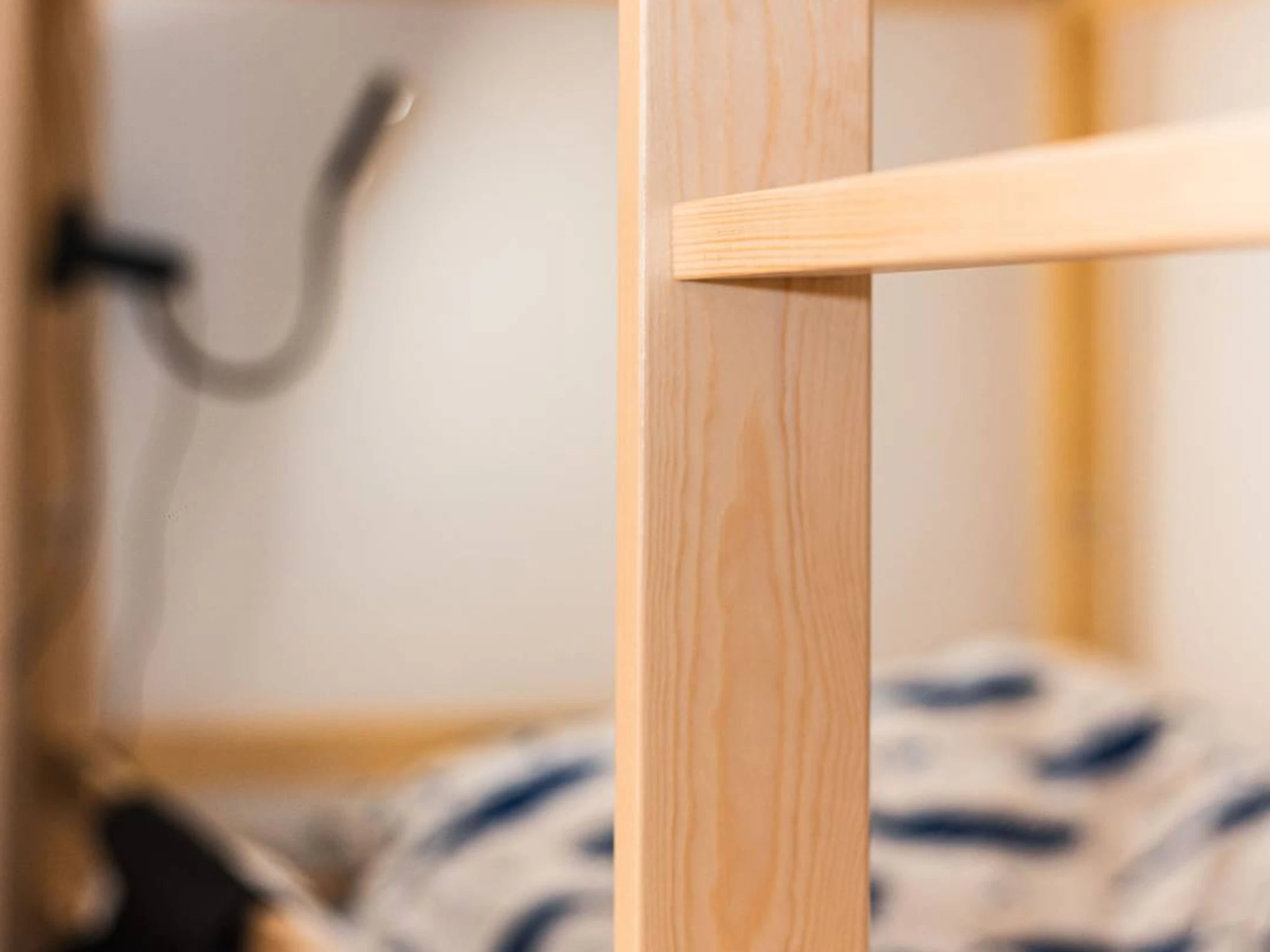 1 Cabin bedroom with 1 bunk bed (80x190 cm) with storage.