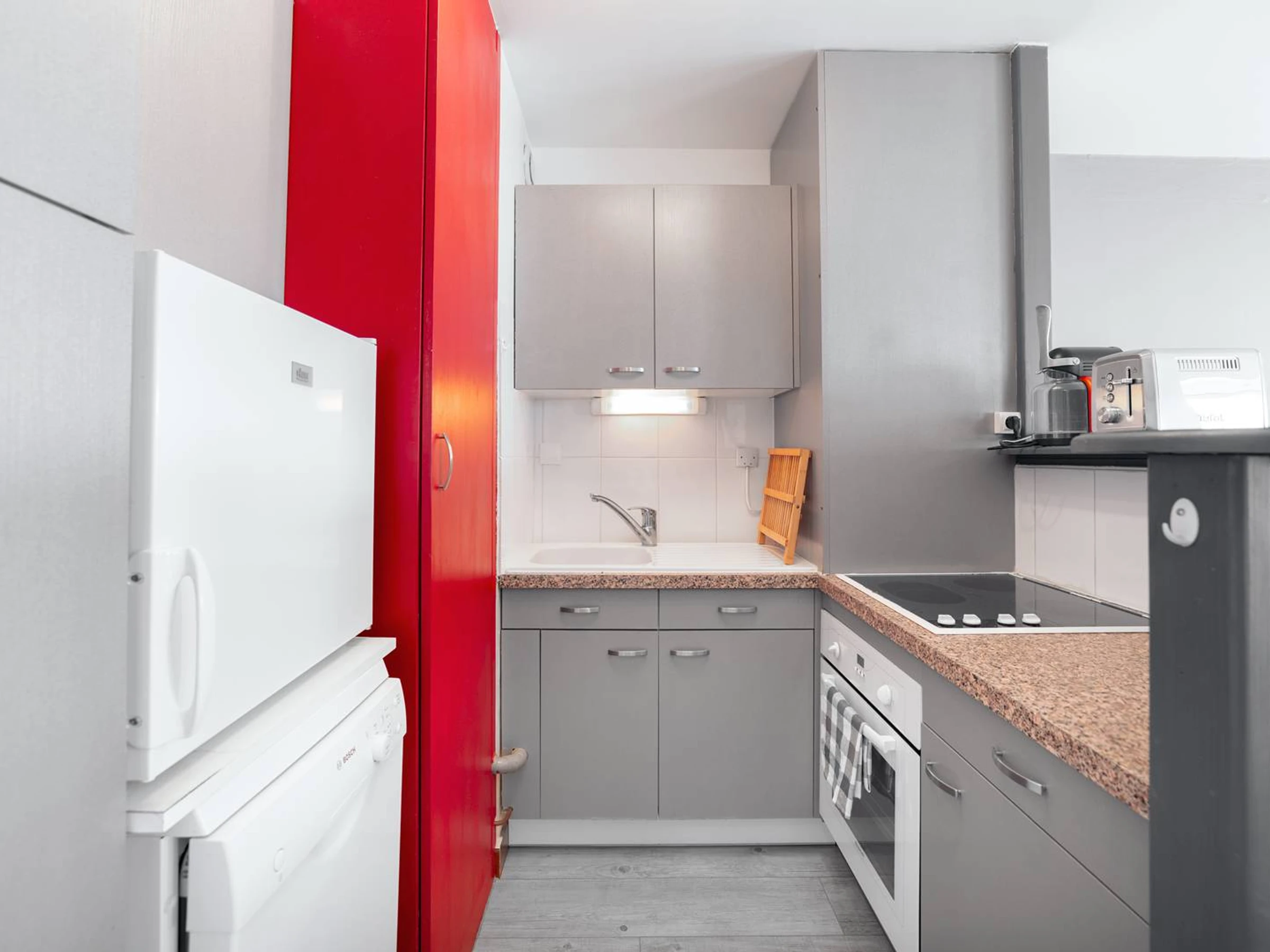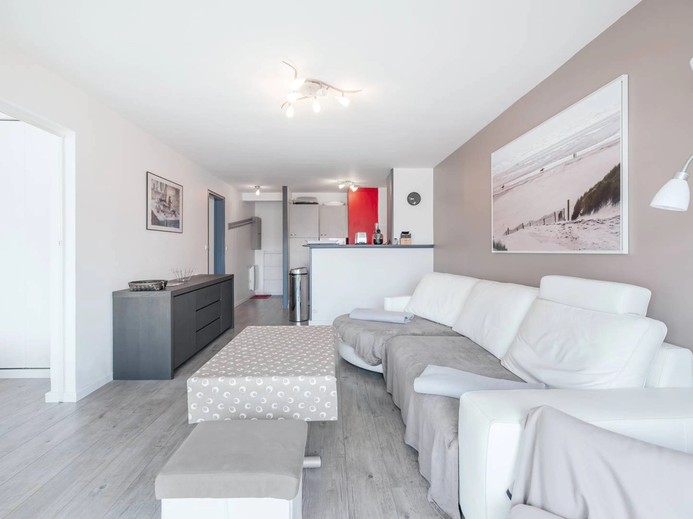 Equipped kitchen (dishwasher and Nespresso coffee maker) opening onto the living room.