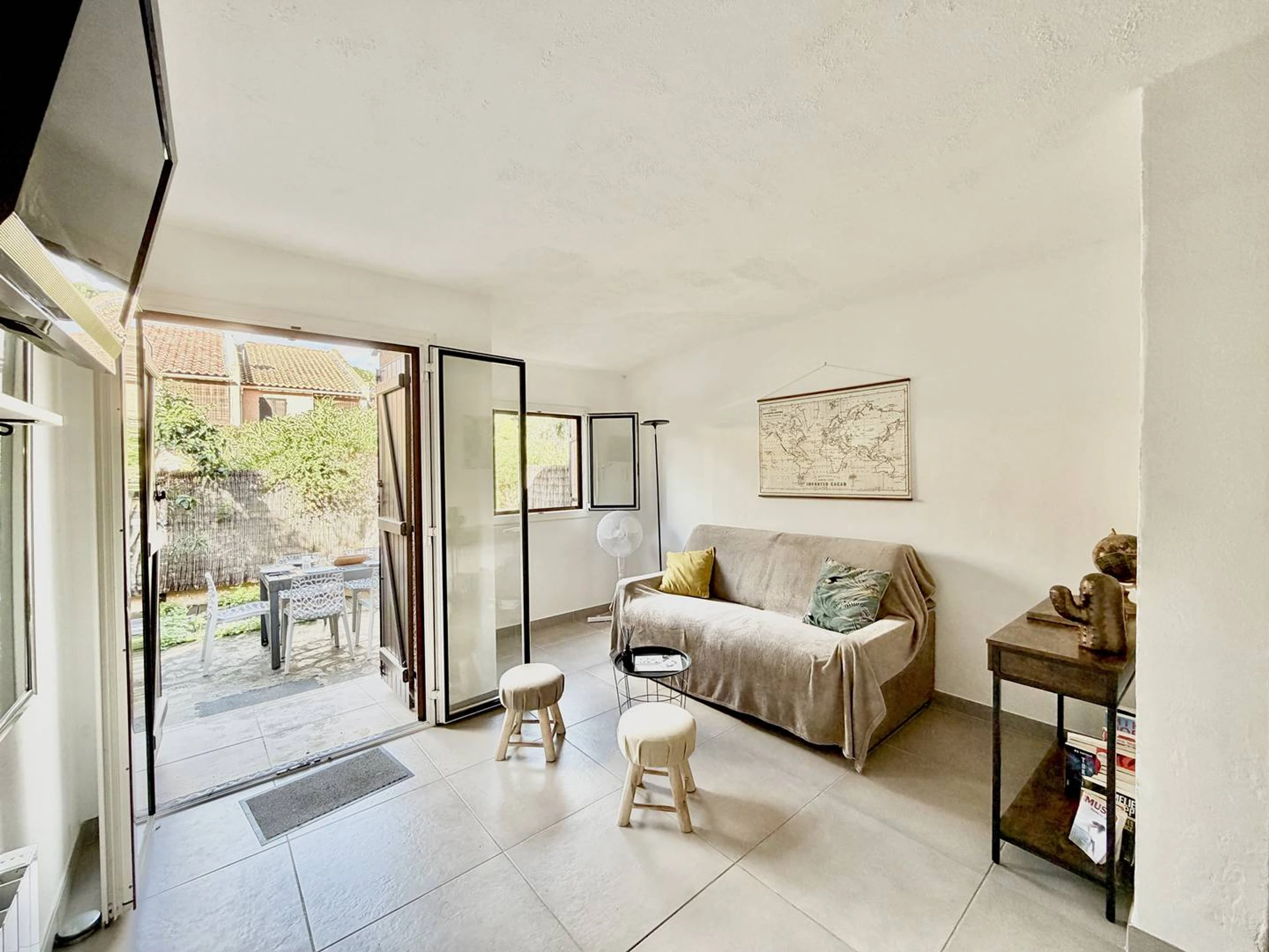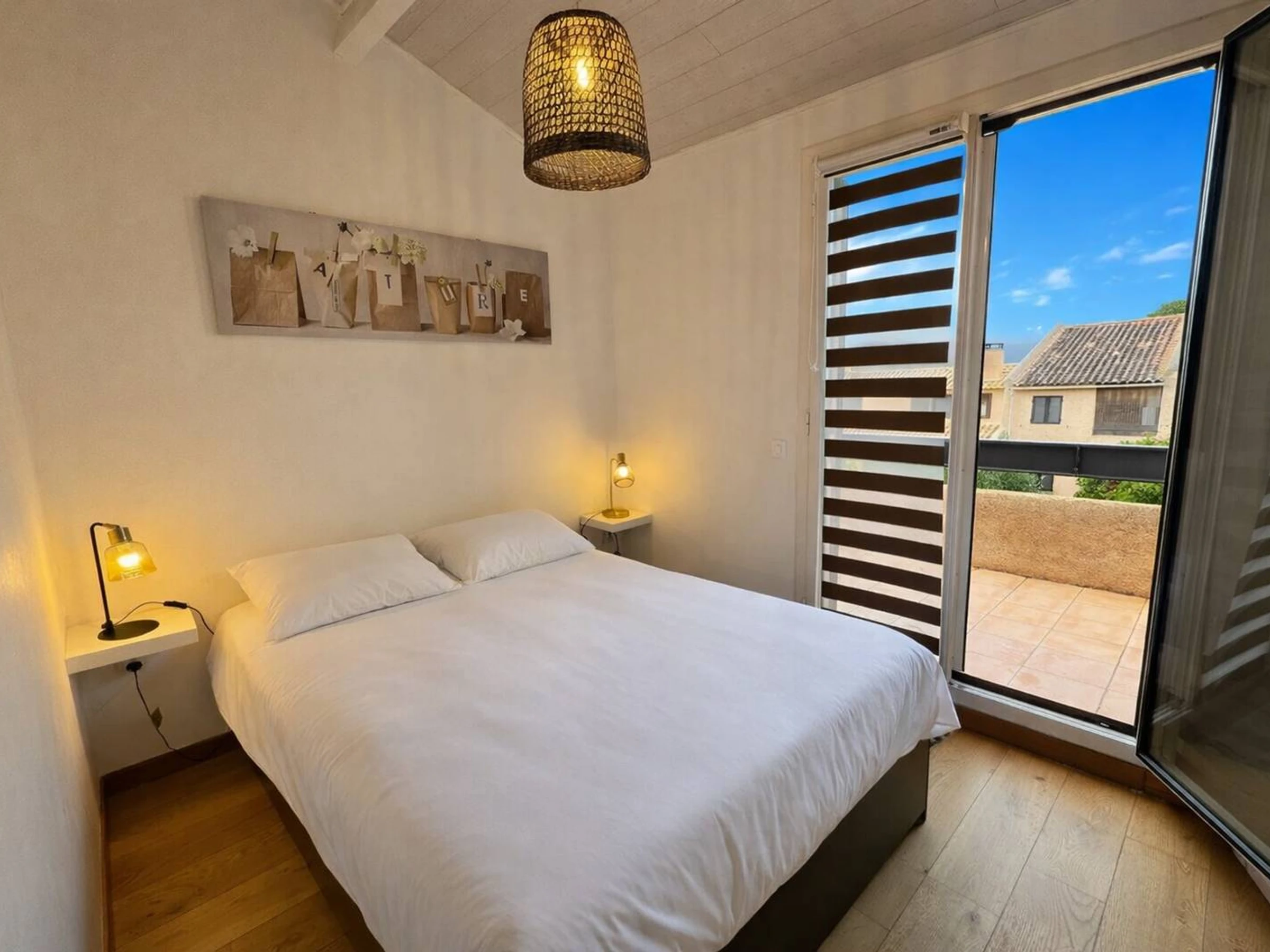 The highlight of this villa: a furnished terrace with a barbecue. Air conditioning in both bedrooms. Private parking.