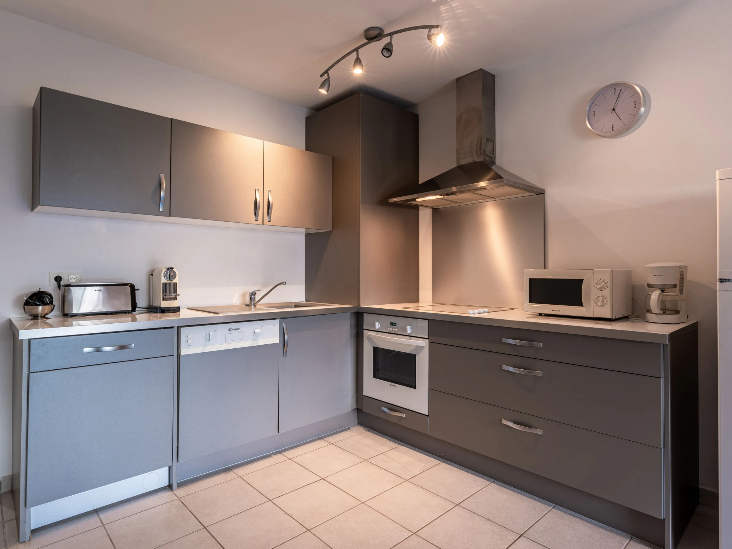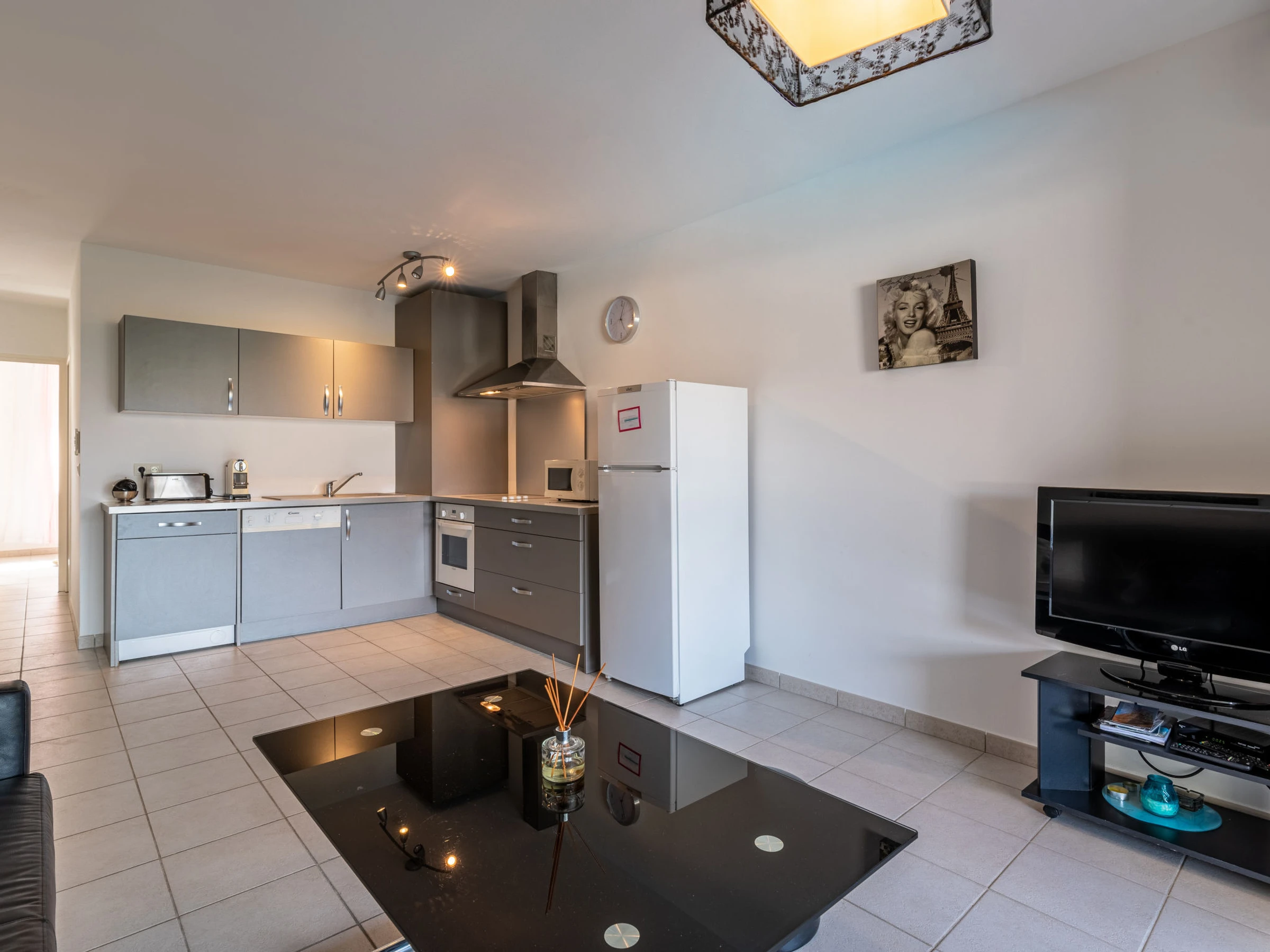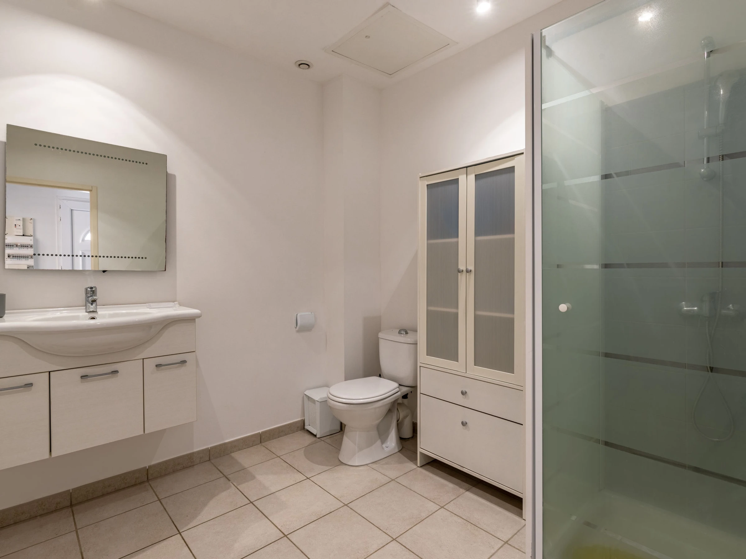 "Le Jardin d'Alzetu", 2-room apartment 46 m2, on the upper floor. Simple and beautiful furnishings: living/dining room with panoramic window with 1 double sofabed (160 cm, length 190 cm), TV (flat screen). Exit to the terrace. 1 room with 1 french bed (160 cm, length 190 cm). Open kitchen (oven, dishwasher, 1 ceramic glass hob hotplate, 3 gas rings, kettle, microwave, electric coffee machine, Capsules for coffee machine (Nespresso) extra) with dining table. Shower/WC. Electric heating, air-conditioning. Terrace 12 m2, roofed, west facing position. Terrace furniture. View of the mountains. Facilities: washing machine. Internet (WiFi, extra). Reserved parking space n 106. Please note: smoke alarm.