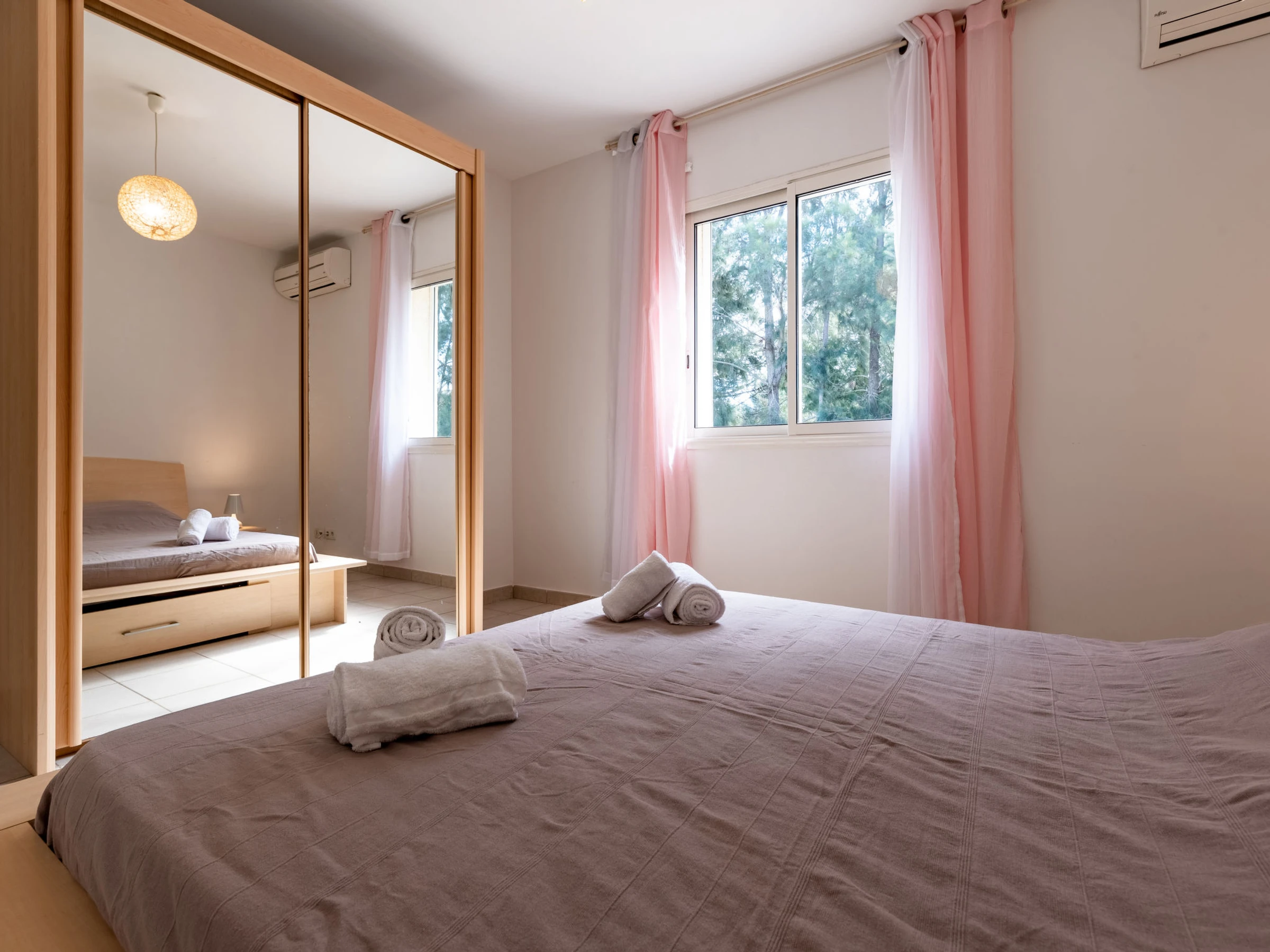 Apartment block. 34 apartments in the residence. In the district of Cala Rossa, outside the resort, 2 km from the centre of Saint Cyprien, 1 km from the sea, 1 km from the beach. For shared use: park 7'000 m2 (fenced), swimming pool angular heated, fenced (15 x 10 m, seasonal availability: [hidden] - [hidden] Parking. Supermarket 4 km, shopping centre 7 km, restaurant 2 km, sandy beach "Plage de Cala Rossa" 1 km. Nearby attractions: Centre ville Porto-Vecchio 10 km, Plage de Palombaggia 19 km, Plage de Santa Giulia 16 km, Bonifacio 33 km. Well-known lakes can easily be reached: Lac de l'Ospédale 25 km. Hiking paths: Aiguilles de Bavella 50 km. Please note: car recommended.