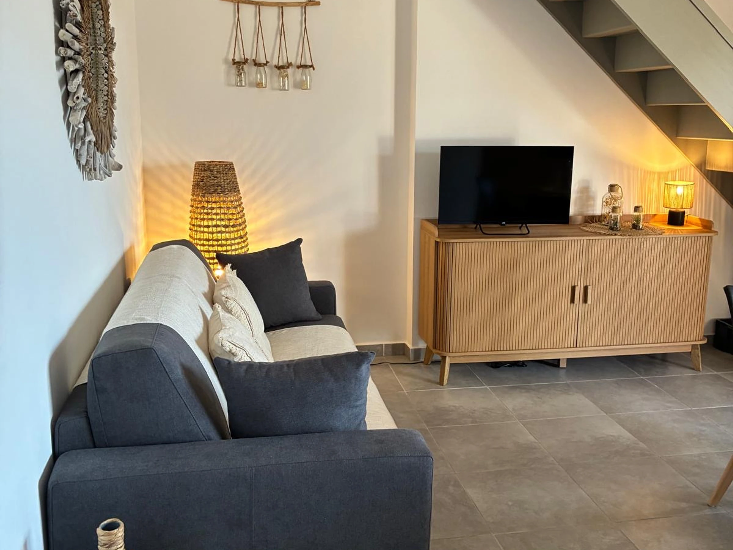 Inside, you will find two comfortably furnished bedrooms: one with a king-size bed and another with a double sofa bed. The fully equipped American kitchen will seduce you with its many appliances: refrigerator, freezer, oven, microwave, coffee machine, kettle, and much more. Ideal for preparing delicious meals during your holidays.