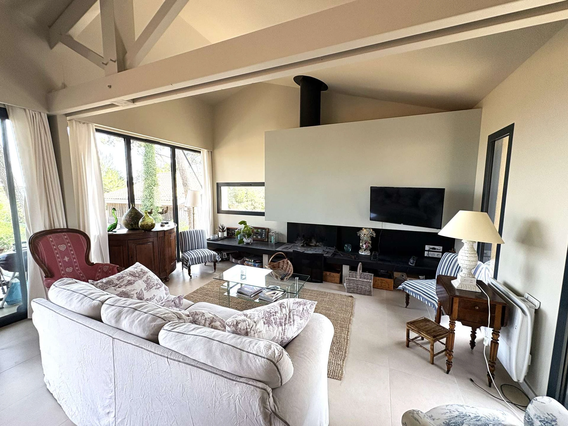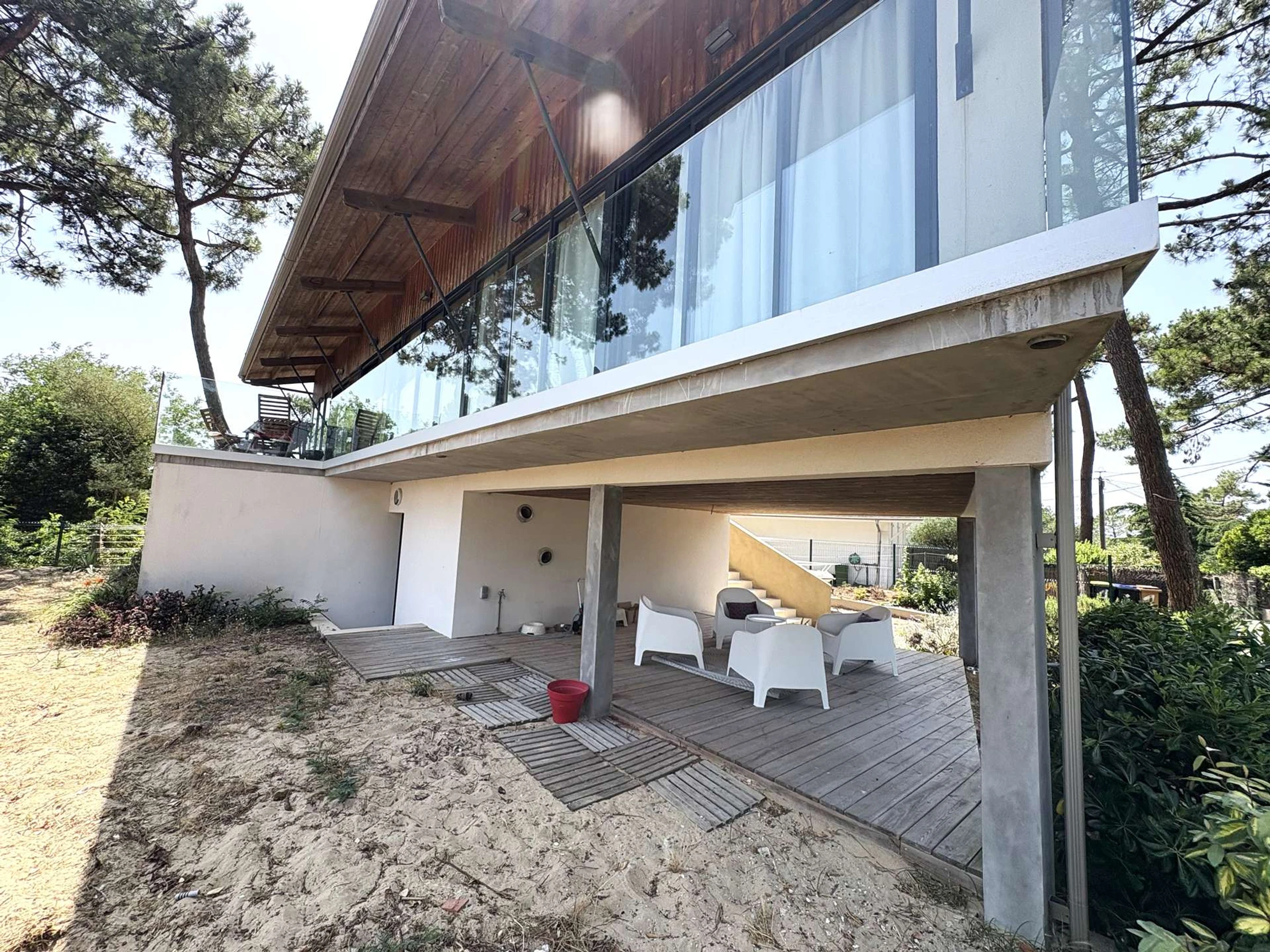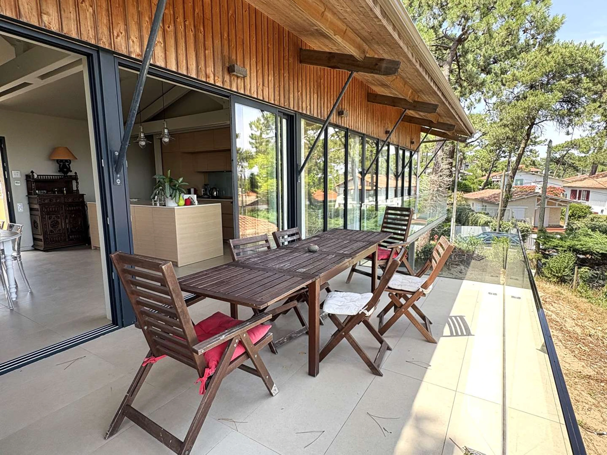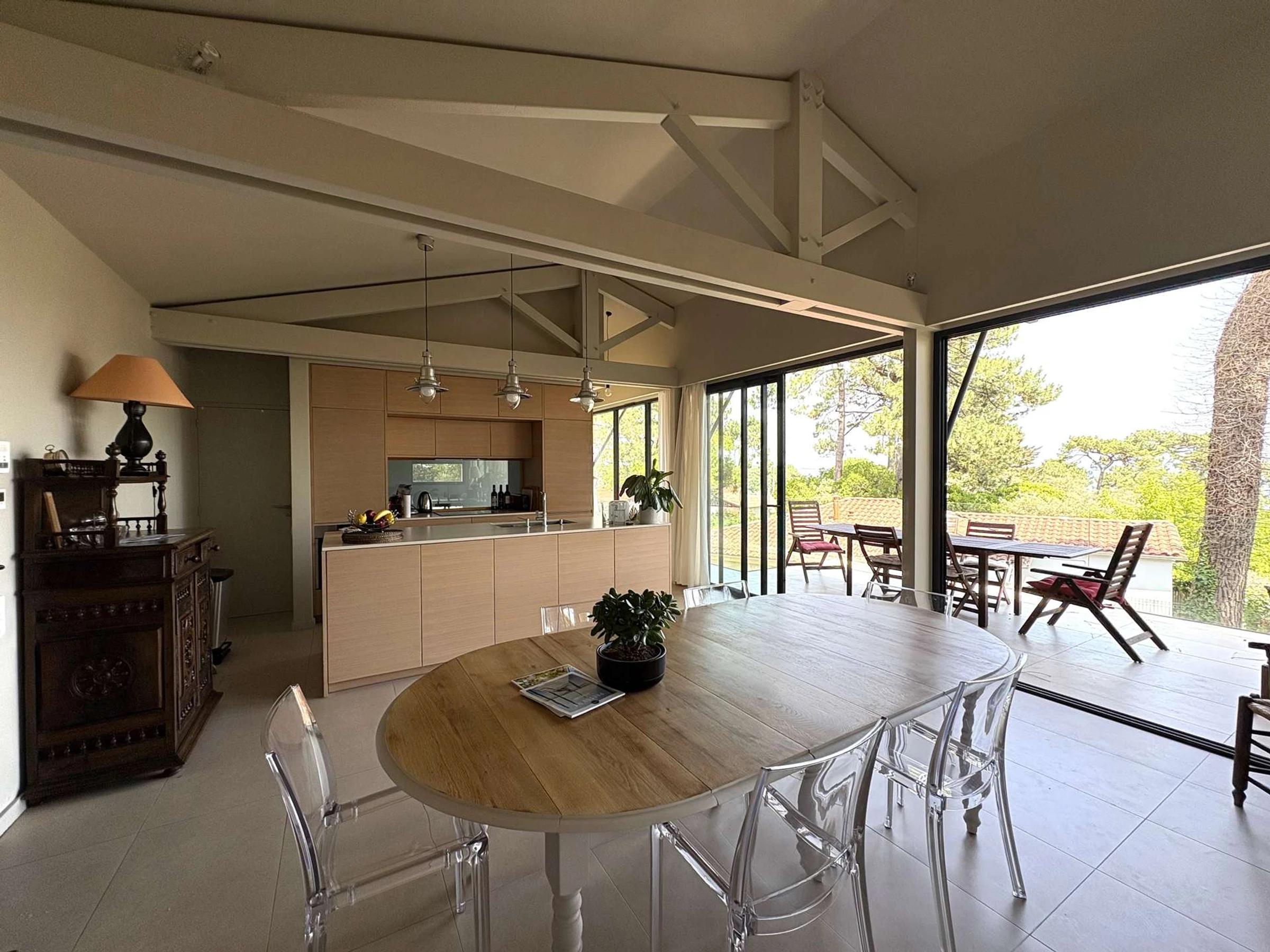 Nestled in the hills above Le Canon, with breathtaking views of the Dune du Pilat, this modern villa offers beautiful open-plan living spaces. Just a few minutes' walk from shops (Chez Pascal bakery, Casino Shop, ice cream parlors, pharmacy, etc.), the Arcachon Basin, and oyster huts, you can leave your car behind and easily reach the ocean beaches (1.5 km) by bike via the safe cycle paths.