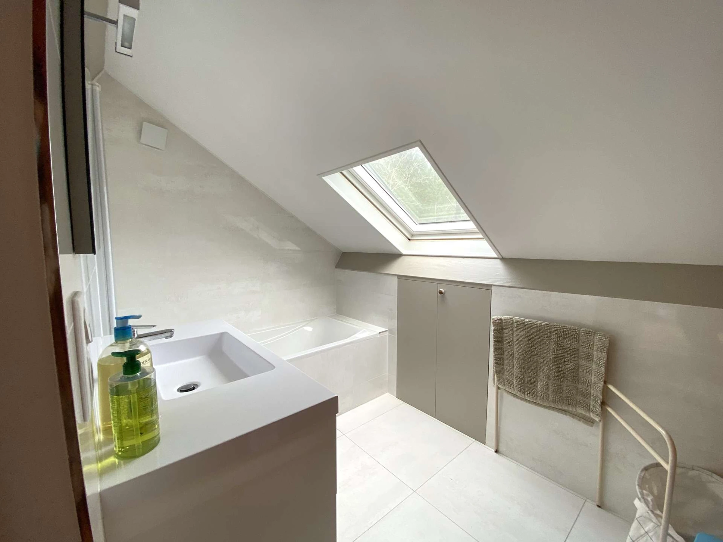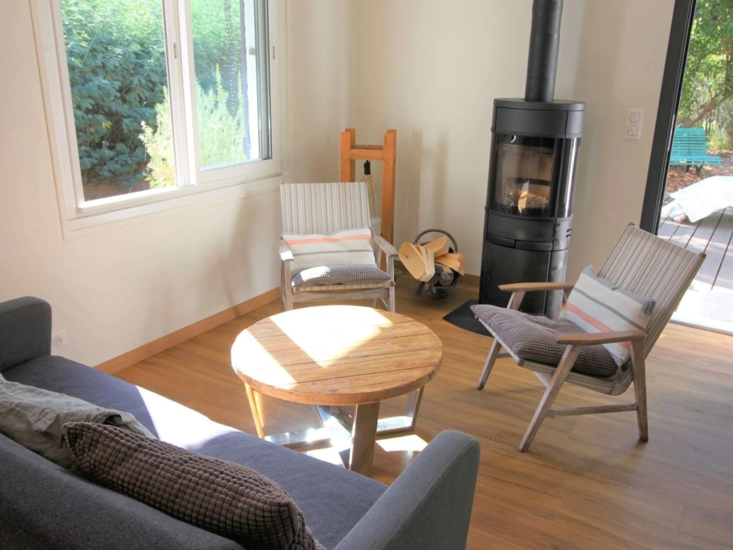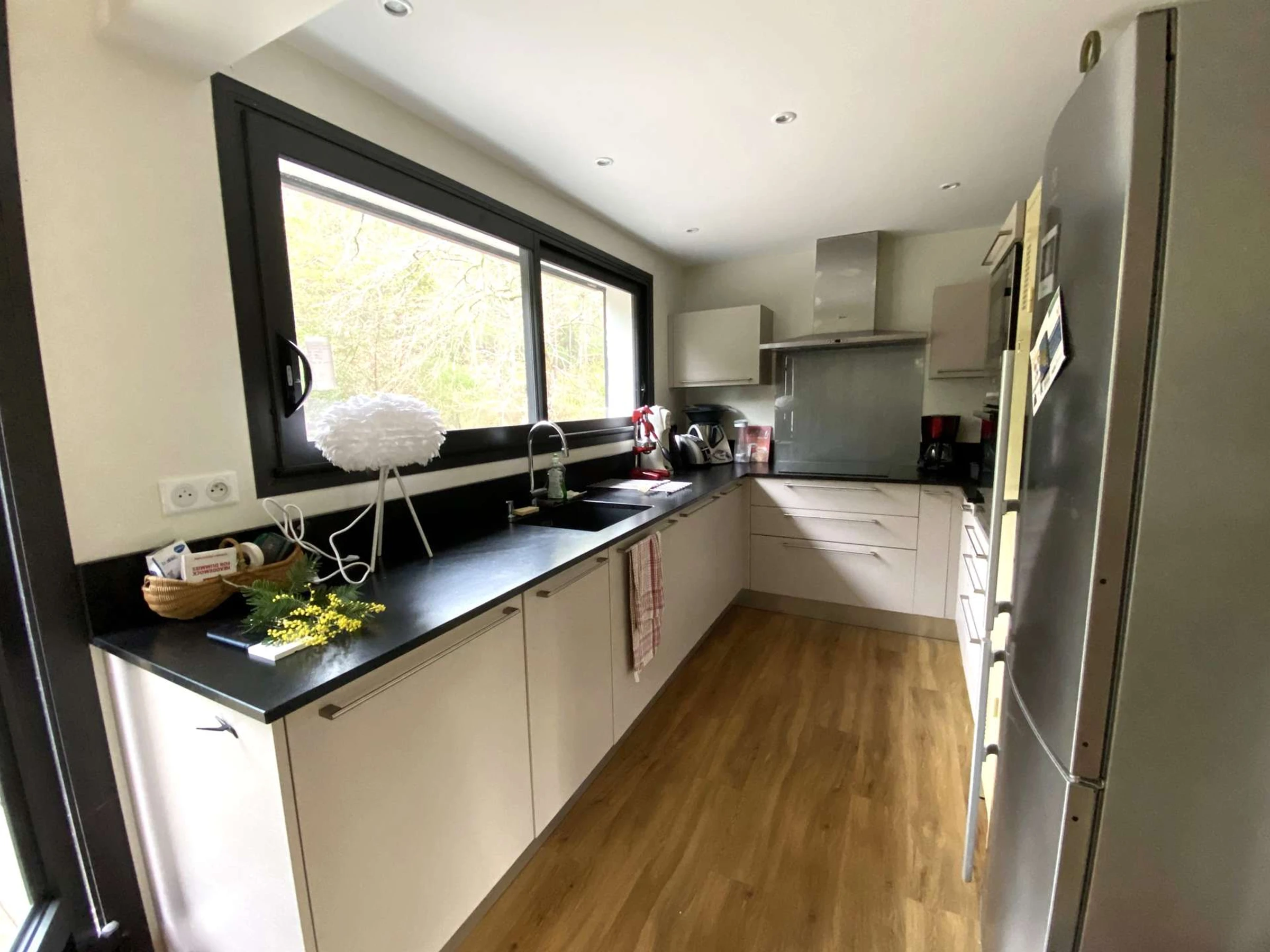 On the ground floor: a fully equipped and fitted kitchen opens onto a very bright living-dining area. This dual-aspect space opens onto two terraces, one facing the forest, facing west to enjoy the sunset, and the second facing south for sunbathers.