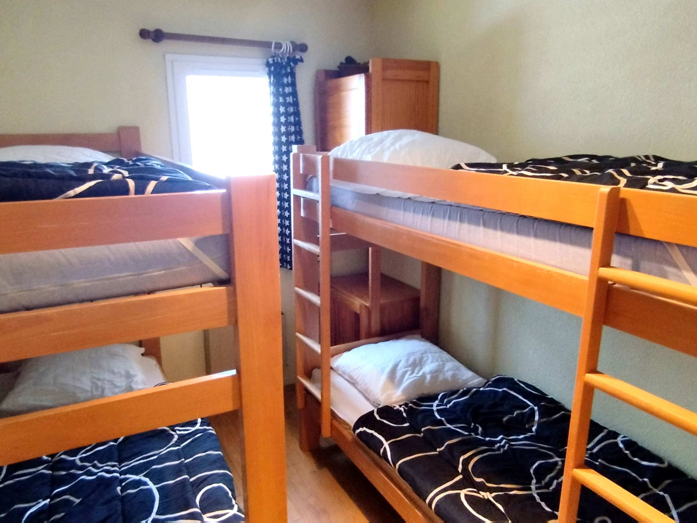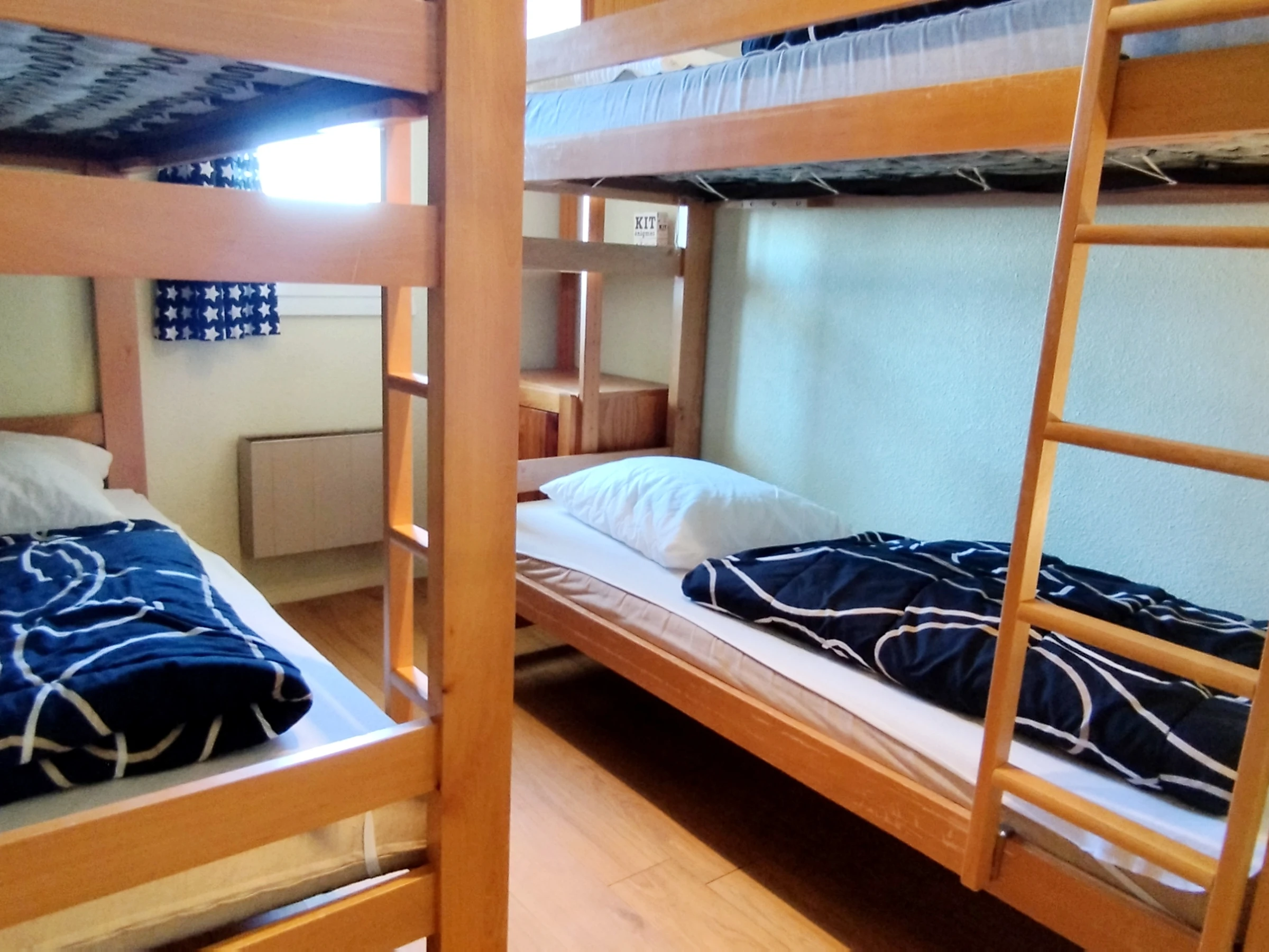 - Living room: 140 cm sofa bed. Bedroom: 2 x 2 bunk beds, or 4 single beds.