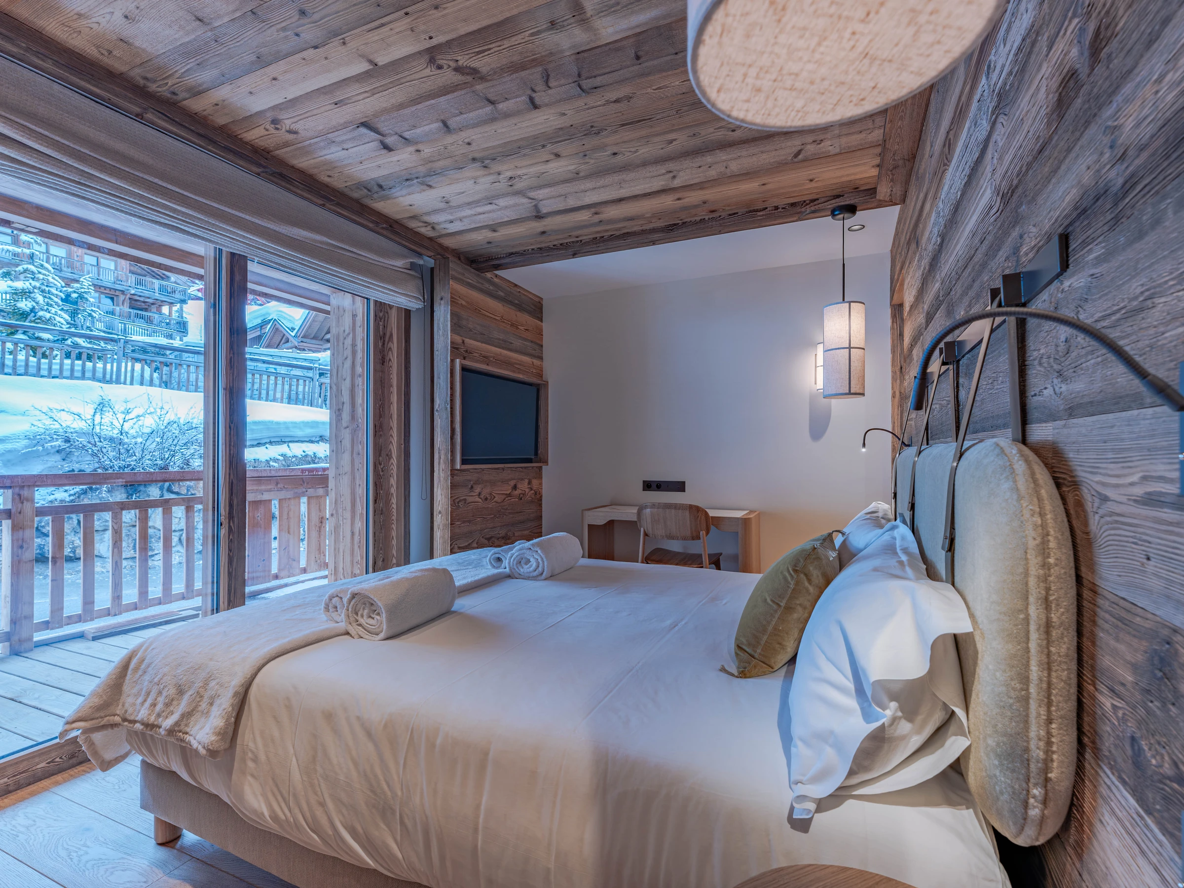 It is located in the heart of the Rond-Point des Pistes district, an exclusive and strategic location: the sunniest spots in the valley with private terraces, pedestrian access to shops, restaurants, and free shuttles serving the resort center.