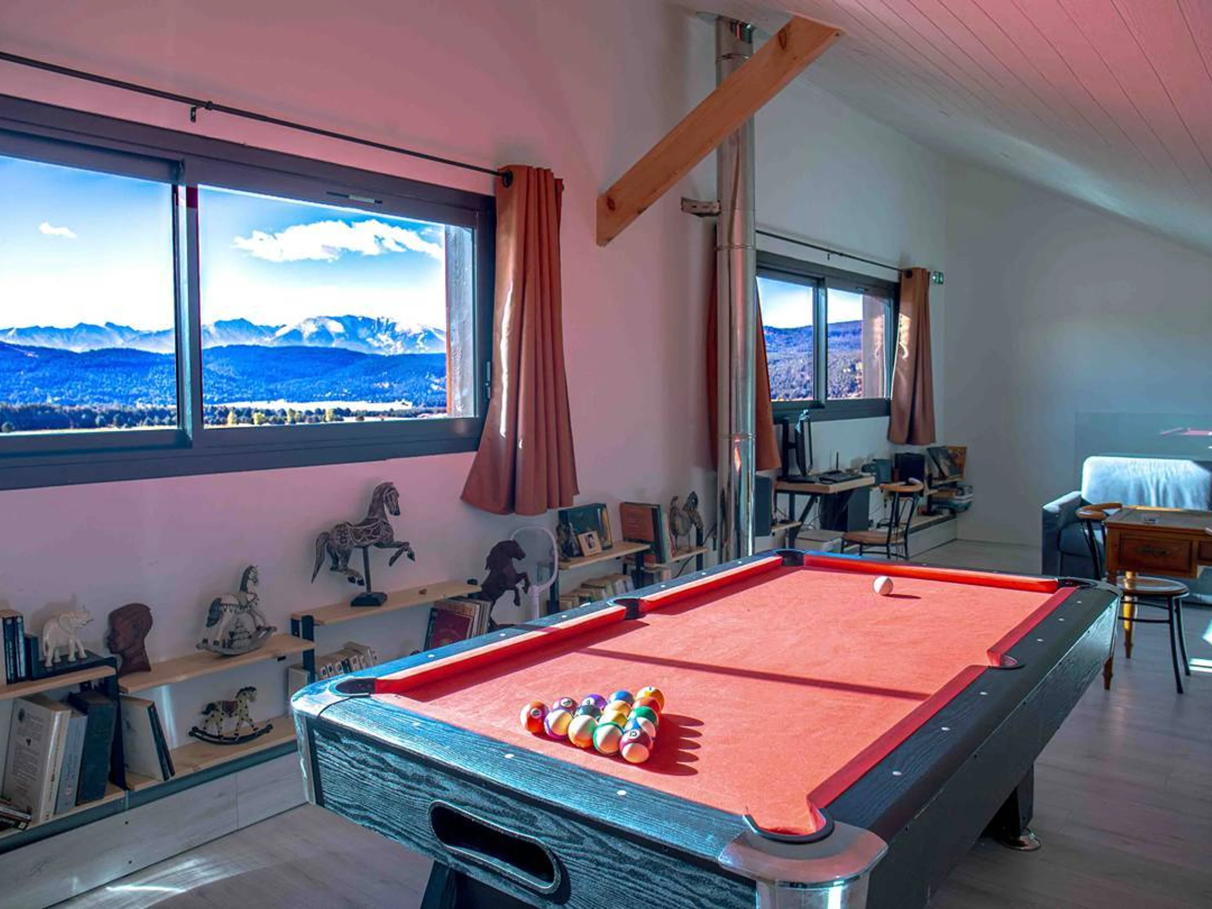Discover this magnificent accommodation, ideally located in Les Angles, in the heart of a protected natural environment while remaining just minutes from the village. Designed to accommodate from 8 to 15 people, this unique place combines absolute comfort, elegance, and a warm atmosphere.