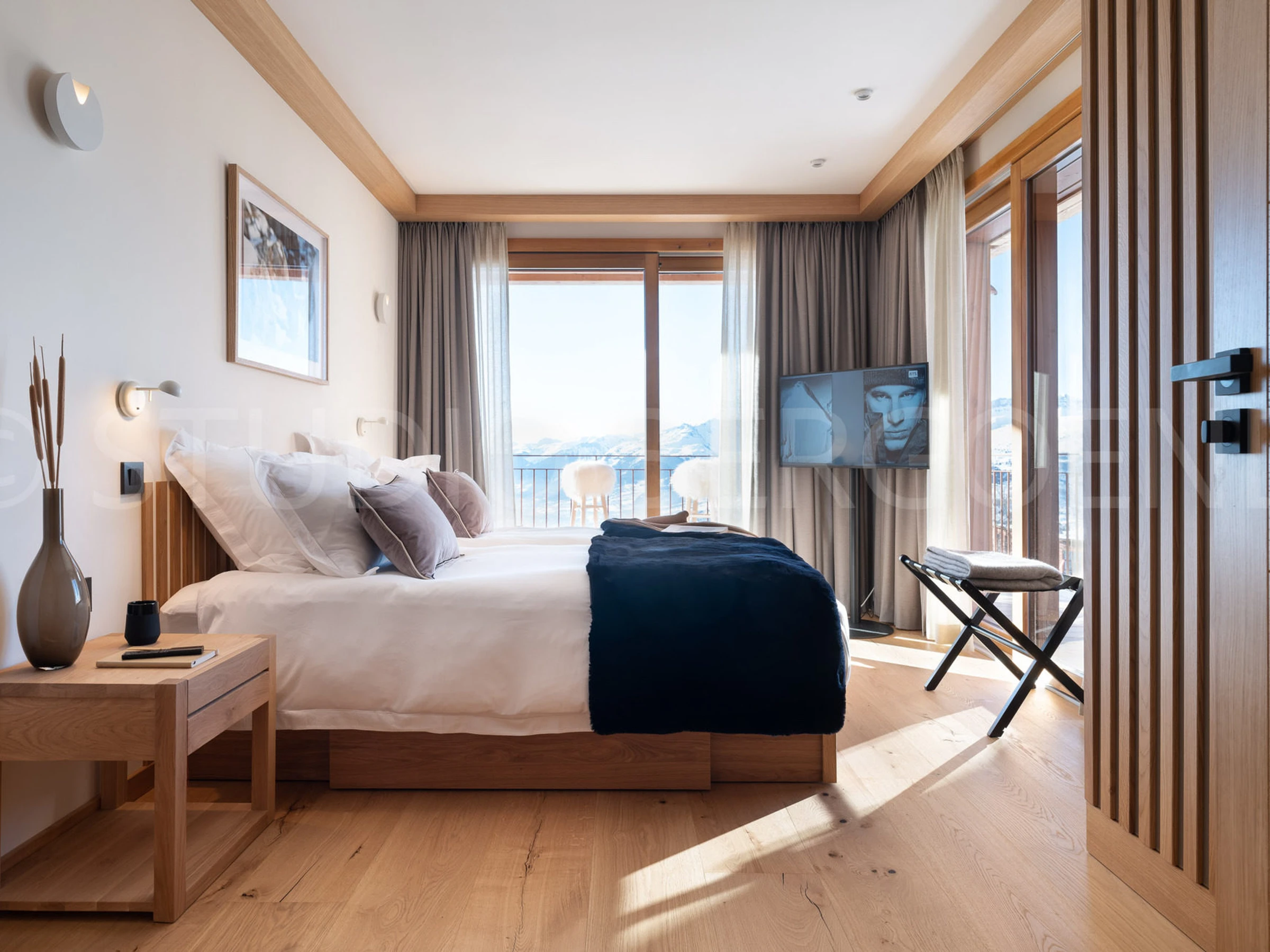 South-west exposure, clear view on the slopes and the Mont-Blanc.