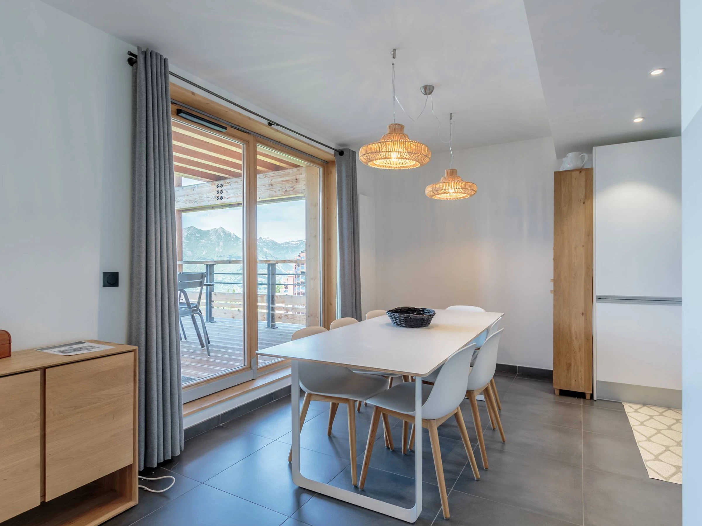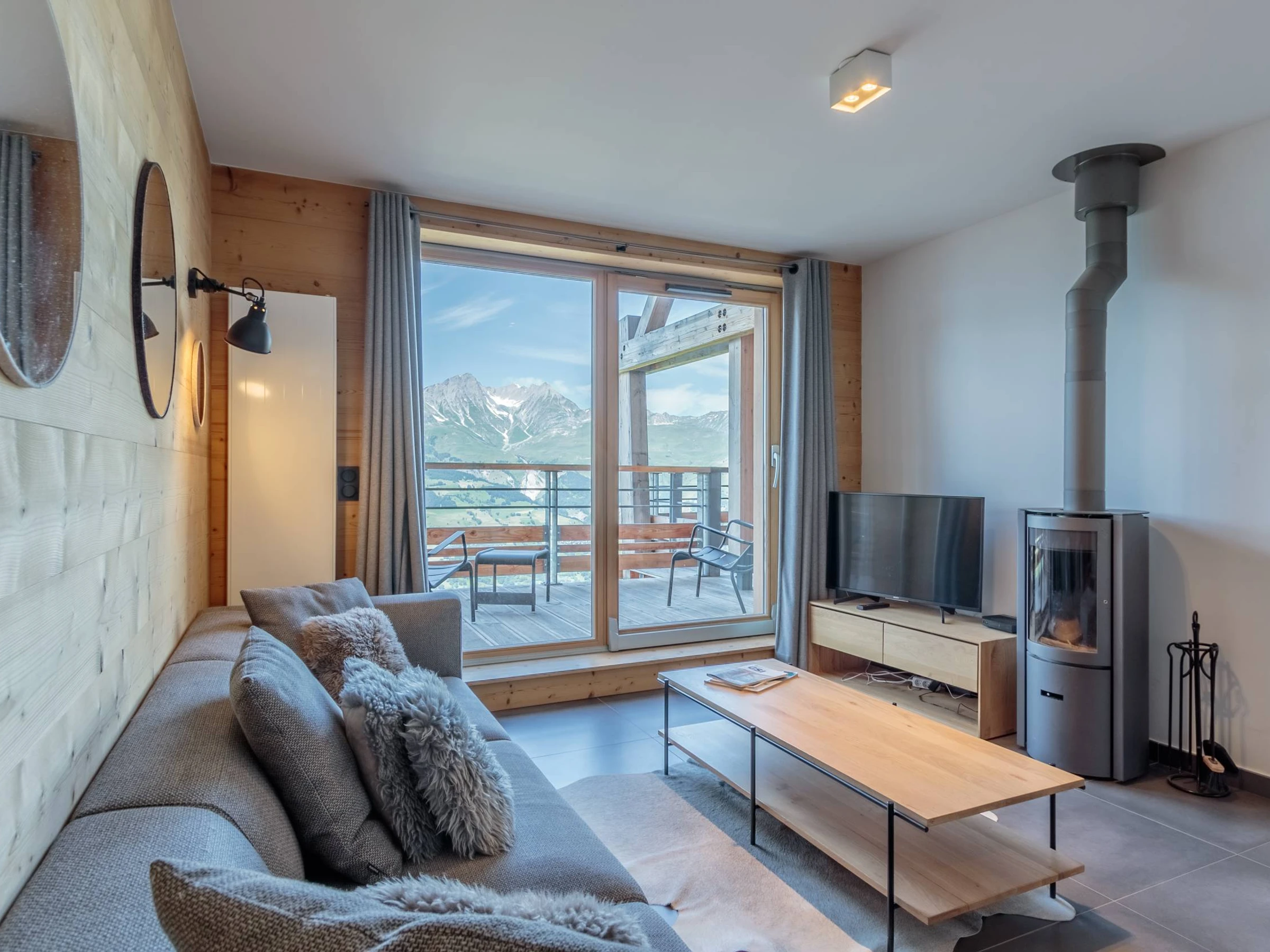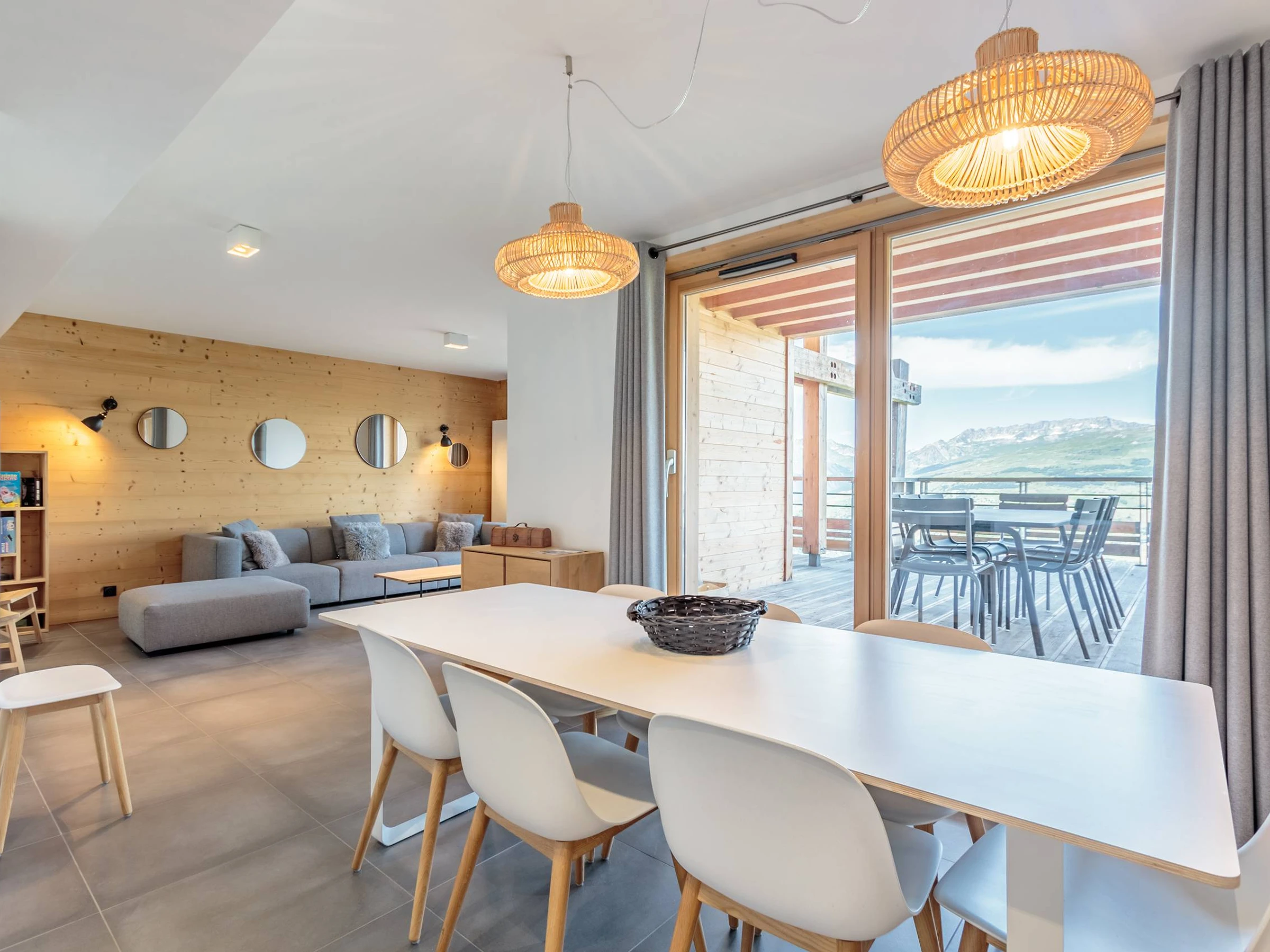 ARCS 1800 - 4* premium Residence : L’ECRIN. Contemporary and wooden atmosphere for this superb Duplex of 125m2, spacious, modern and luminous, for 12 people with a magnificent view on the Pierra Menta and the Valley. Very recent and luxury residence with hotel services, with its wellness area: sauna, hammam and fitness room.