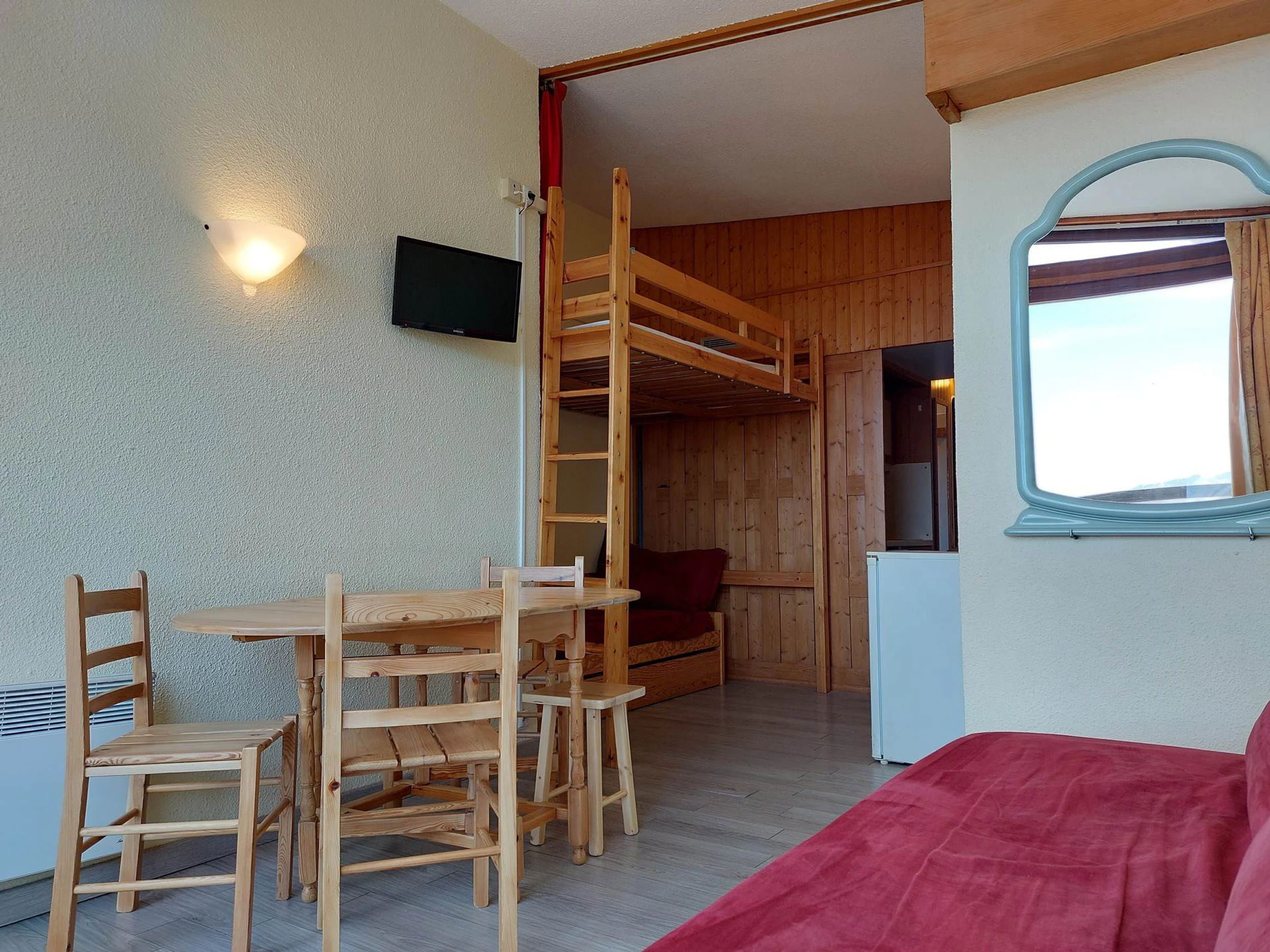 This 25sq-m studio is situated on the 10th floor of the residence Belles-Challes, residence with lit and can accomodate up to 4 guests.
