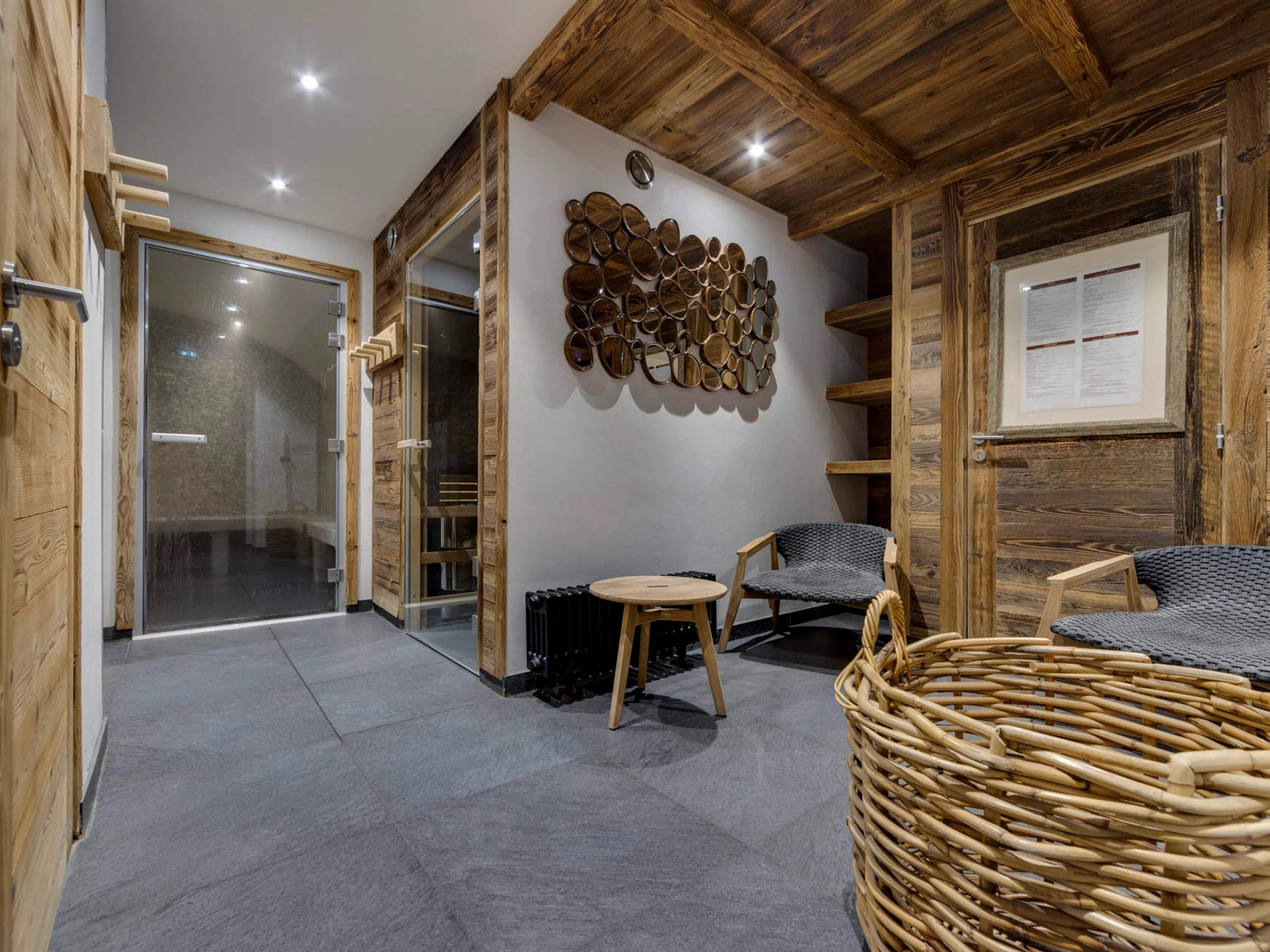 The wellness area of the Hameau du Glacier residence includes: