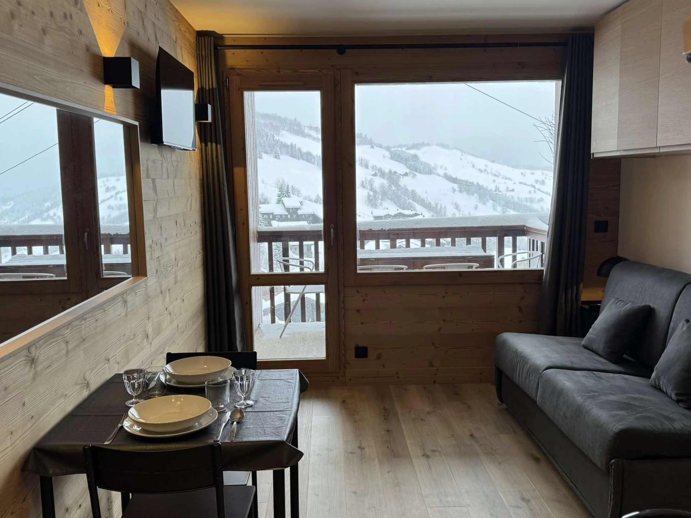 It is located 1 minute from the ESF ski school, 5 minutes from the daycare centre (3-5 years old) and the shops and is at the foot of the slopes.