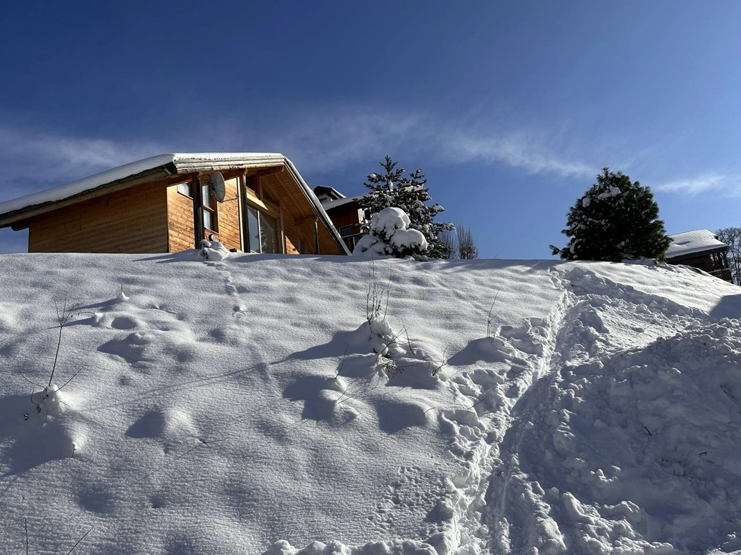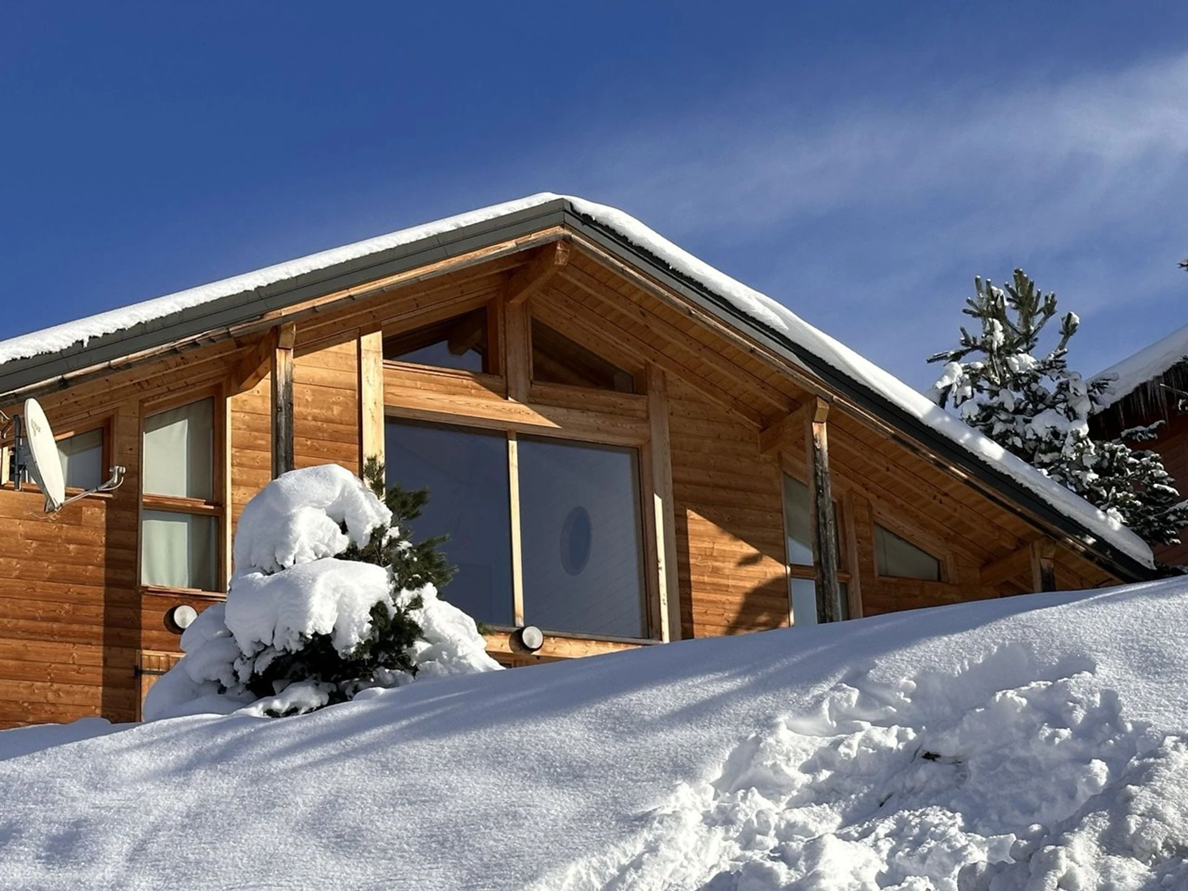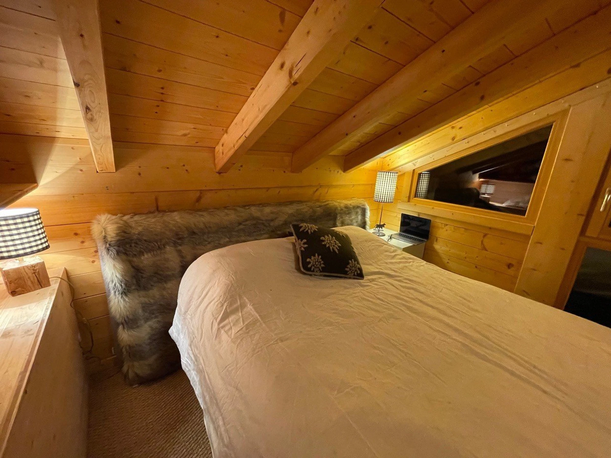 This detached 88 m² chalet (including 10 m² with ceiling height under 1.80 m) is spread over two levels and can accommodate up to 8 guests. Tastefully decorated in a contemporary style, it offers stunning views of the Aravis mountain range. Located 800 metres from the village centre and 1,500 metres from the ski lifts (accessible by car), the property features two southwest-facing terraces and four private outdoor parking spaces located 50 metres from the chalet.