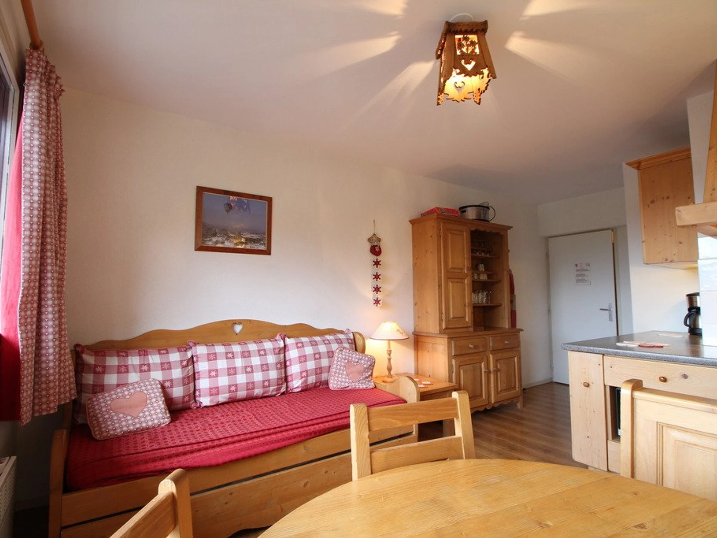 Located just 320 metres from the main gondola lift and ski school meeting points, this 45 m² apartment is situated in Building A of the Fleur’Alpes residence, on the second floor (no lift). It features a south-facing balcony and is only 350 metres from the centre of Les Carroz.