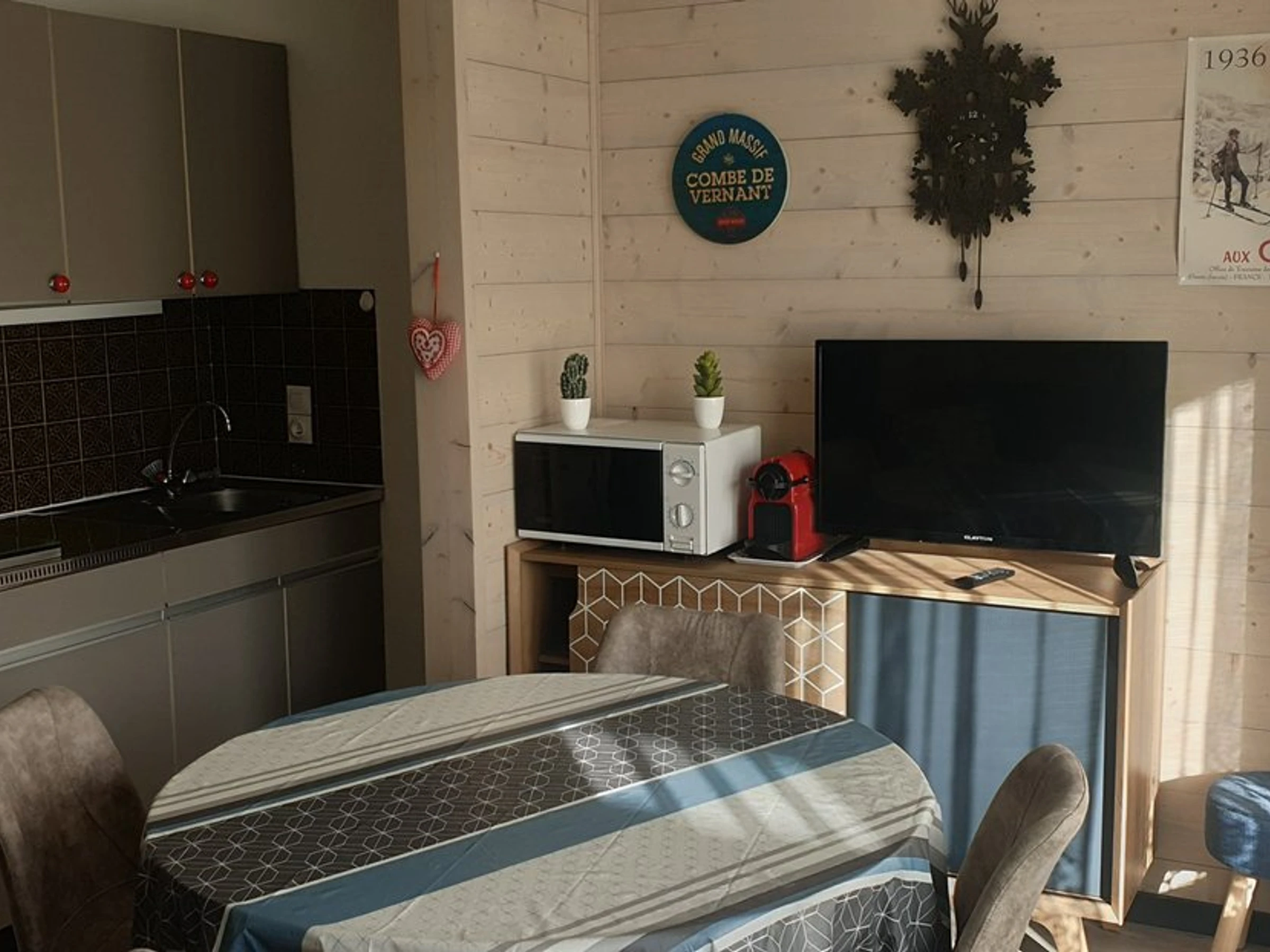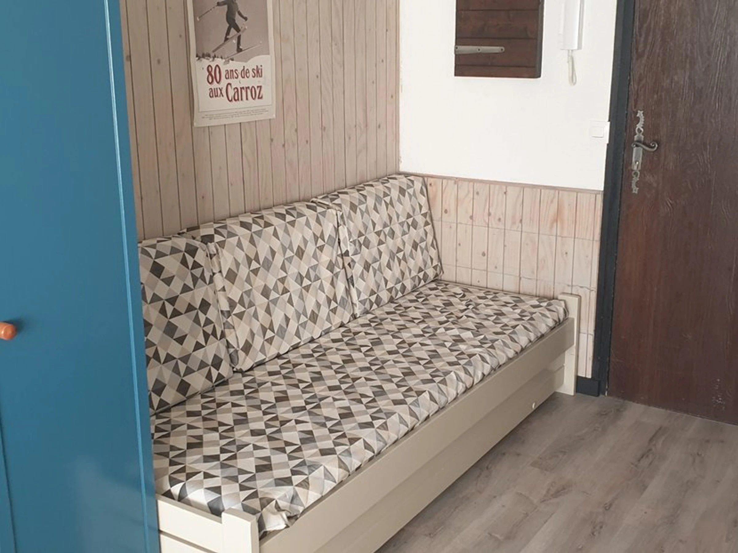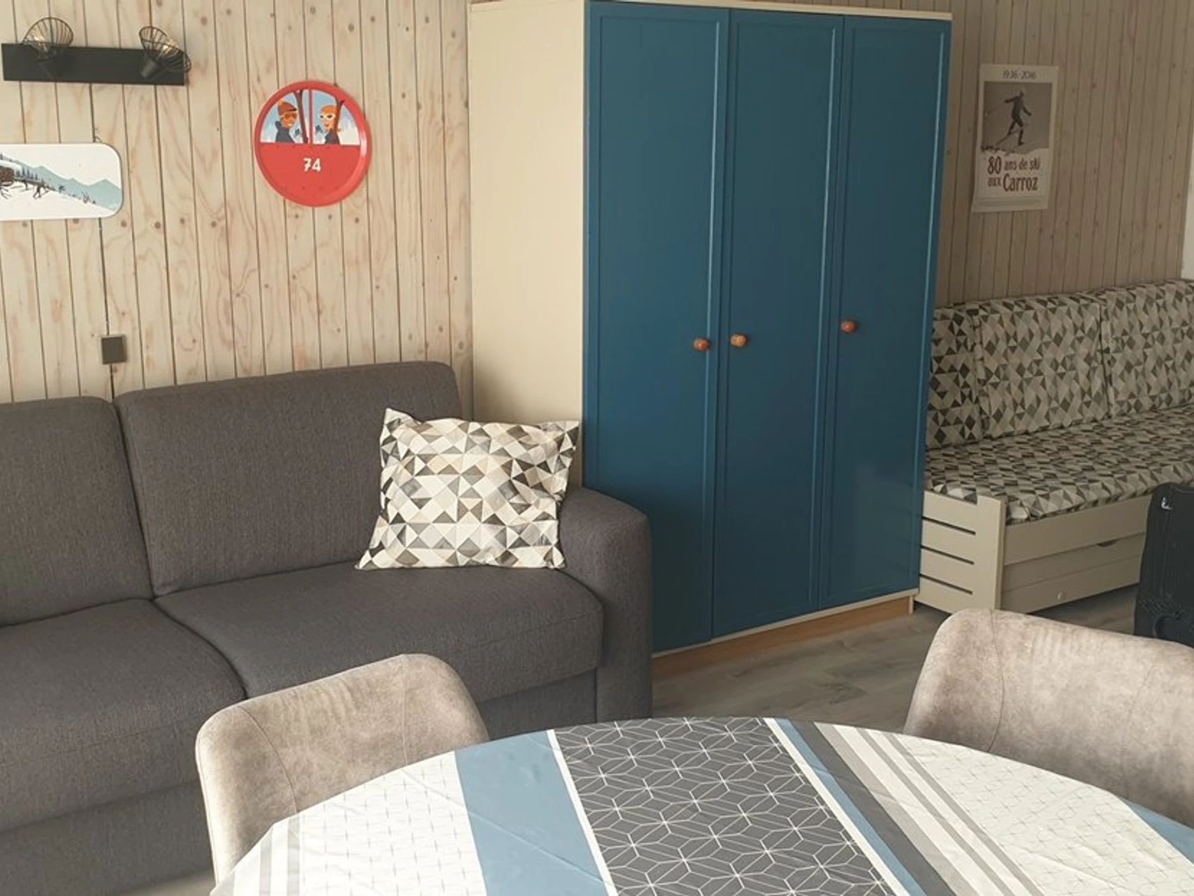This 25 m² studio, located on the 2nd floor of the Residence Anémone (with a lift), is 550 m from the centre of Les Carroz and 1000 m from the ski lifts. It features a south-facing balcony.