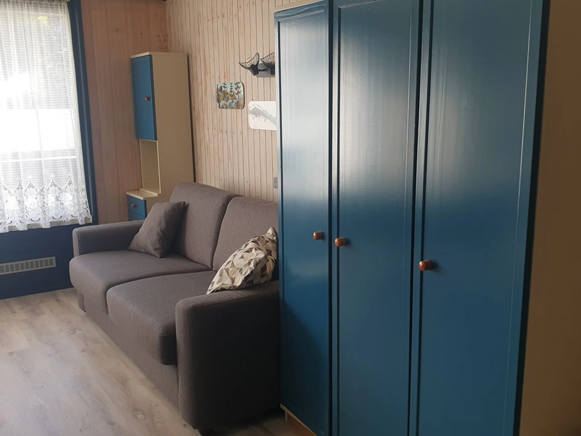 The studio can accommodate up to 4 people, with a Rapido sofa bed for 2 people and 2 pull-out beds. The bathroom is equipped with a shower and WC. The kitchenette is fully equipped with an oven, a fridge, electric hobs, and a microwave.