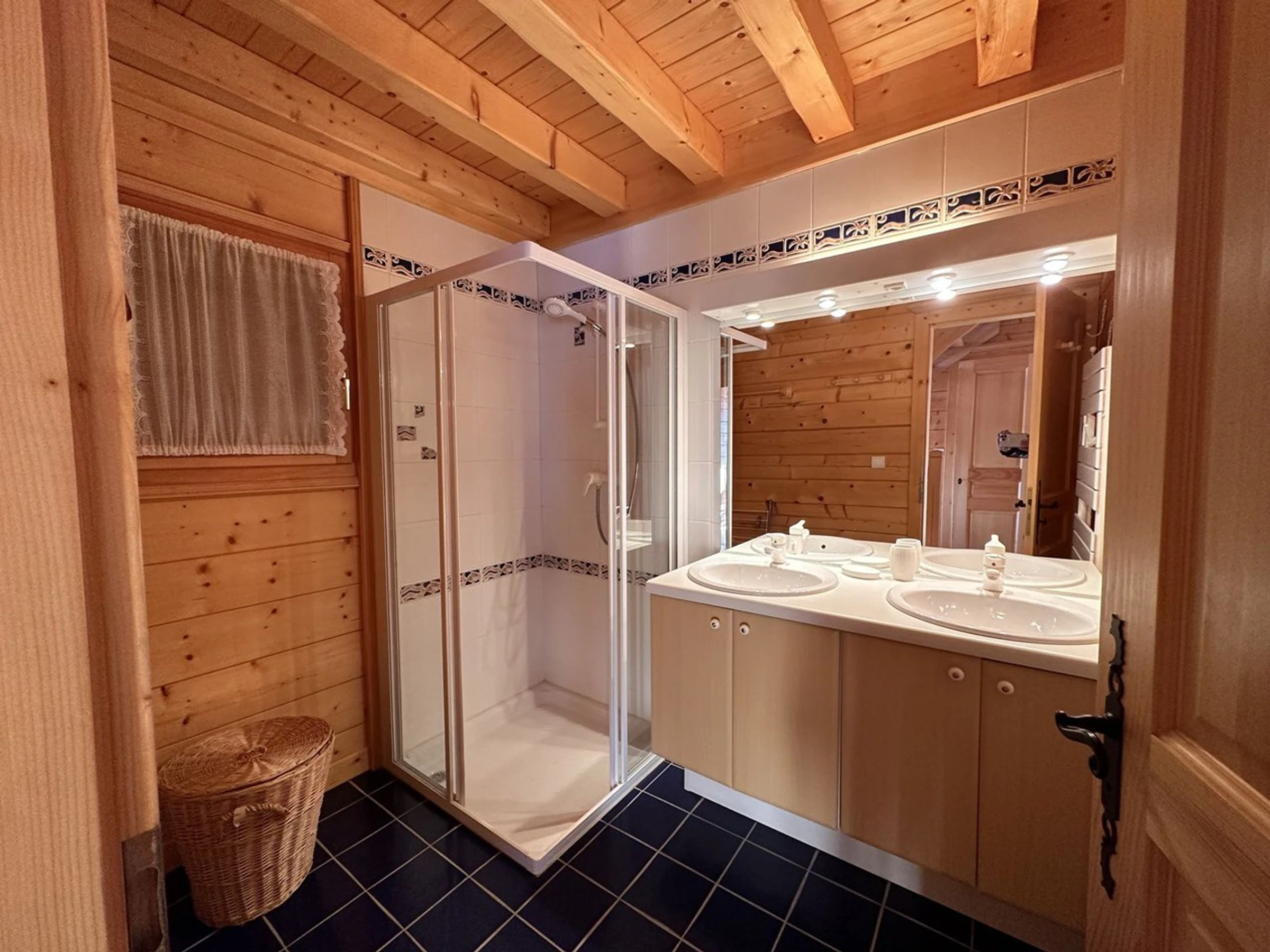 This comfortable 165 m² chalet, spread over two levels, offers four bedrooms and accommodates up to nine guests. Sleeping arrangements include one double bedroom on the first floor, and three bedrooms upstairs: two with double beds and one with a double bed and a single bed. The sleeping area is complemented by one bathroom, one shower room, and two separate toilets.
