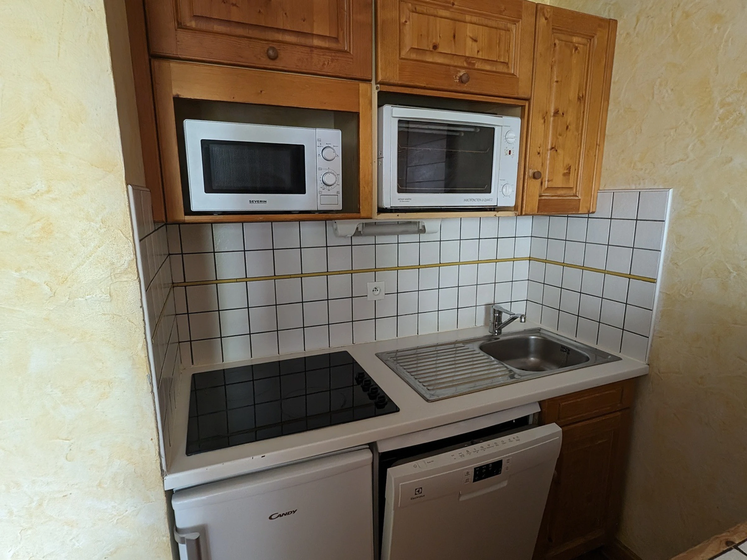 Kitchen area: ceramic hobs, refrigerator, oven, micro-wave, dishwasher, toaster, kettle and filter coffee machine.