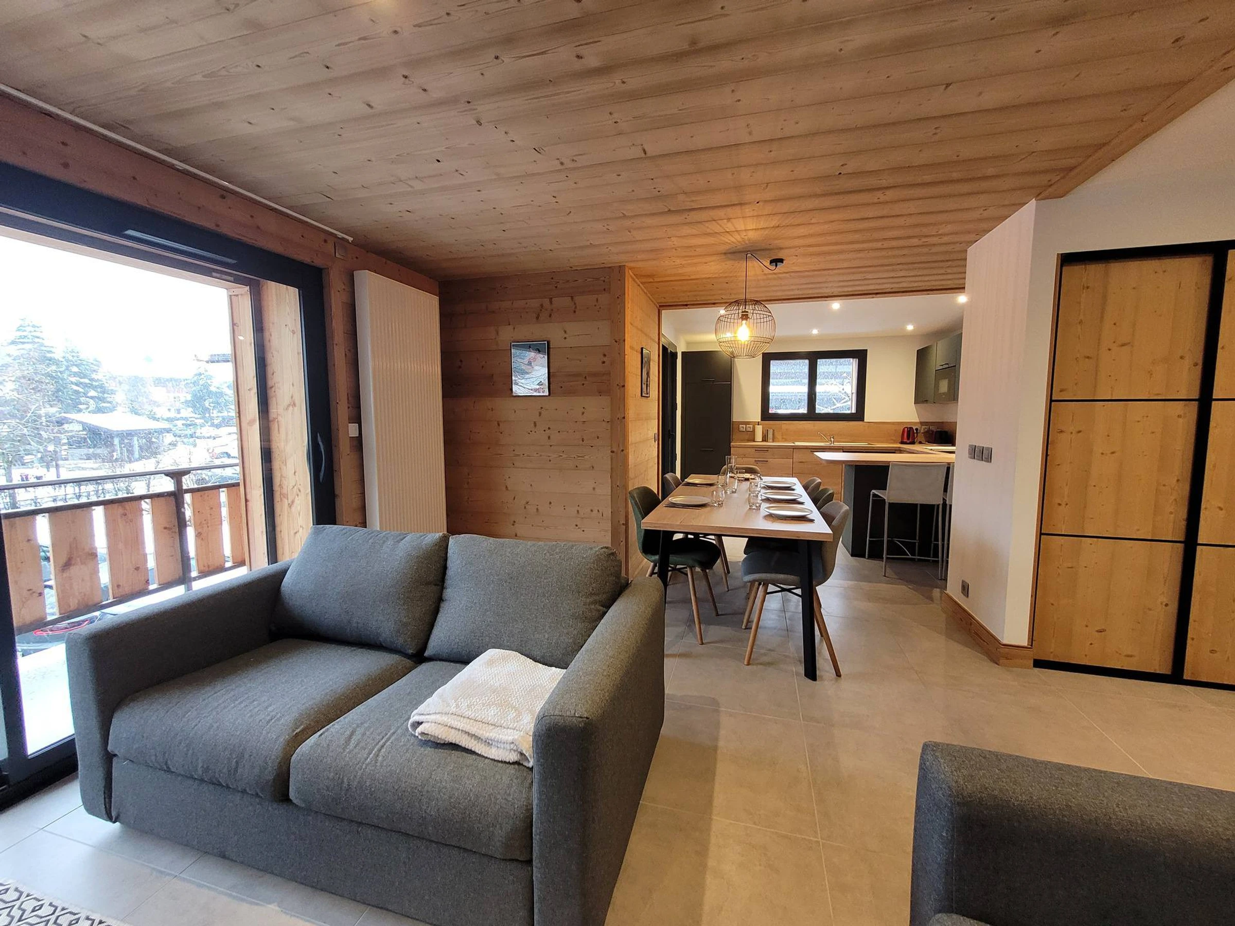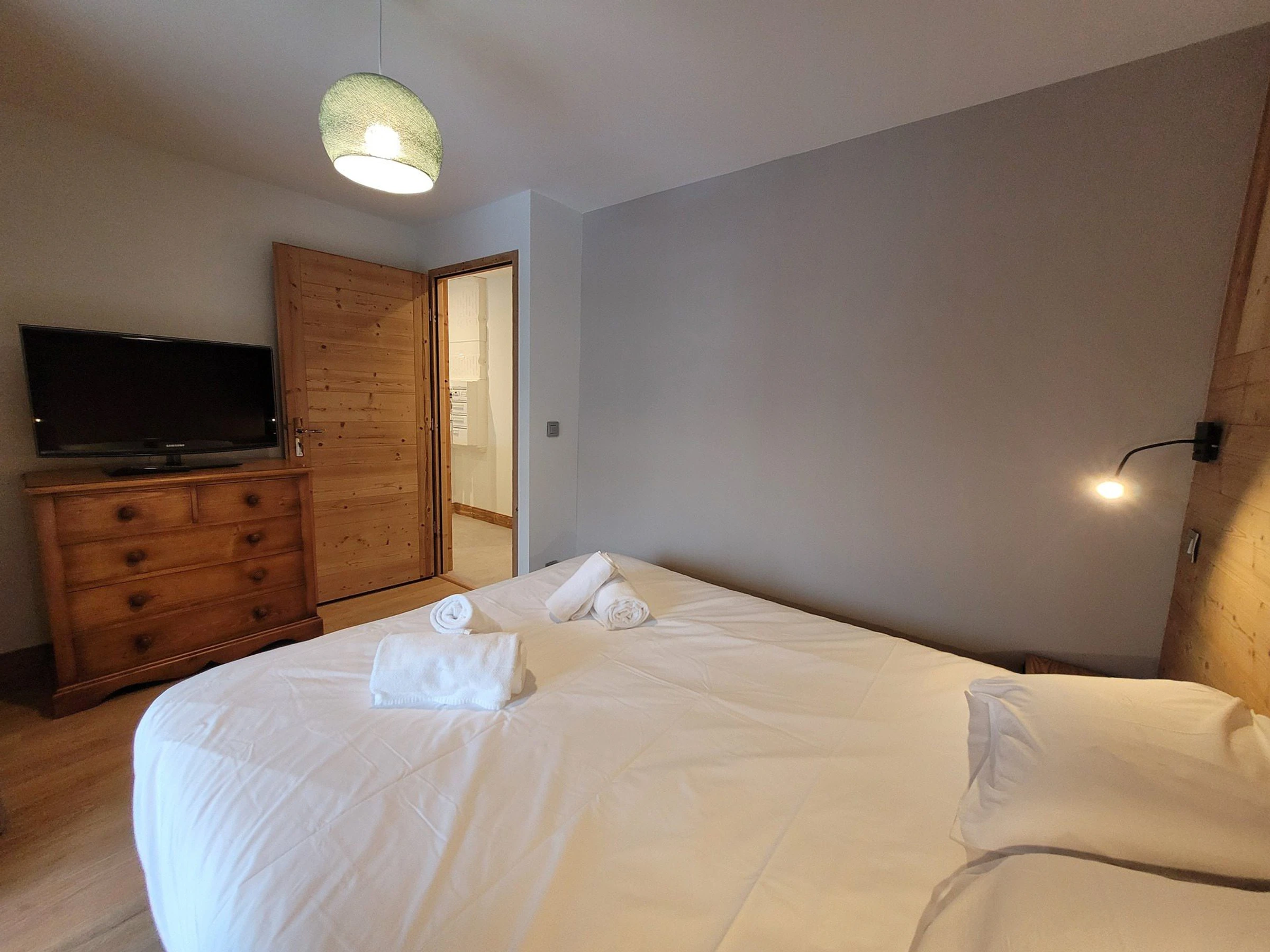 Ideally located in the heart of the resort, this fully renovated apartment welcomes you in a warm and quiet setting. Located on the 1st floor of a chalet, it offers plenty of natural light thanks to its south-east exposure. Spacious and fully equipped, it is designed to comfortably accommodate up to 6 people. Direct access to the Mont Chery slopes, close proximity to shops, private parking... everything you need for an unforgettable mountain vacation, summer or winter!Capacity: 6 people.