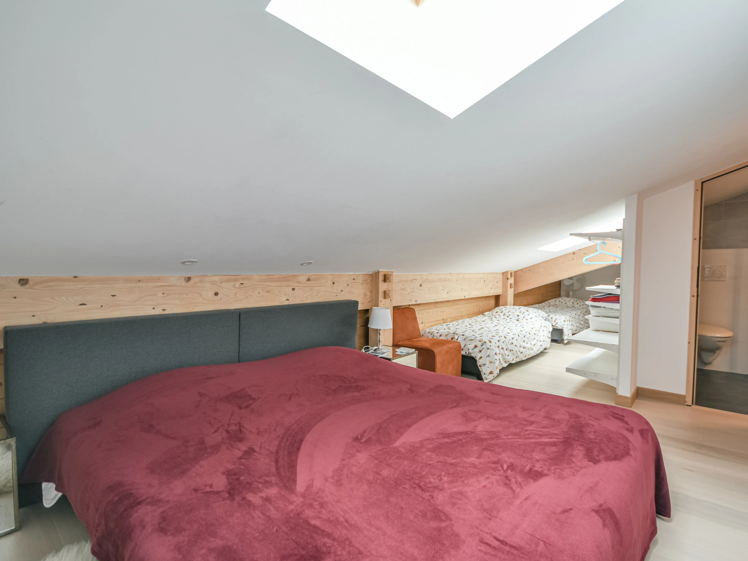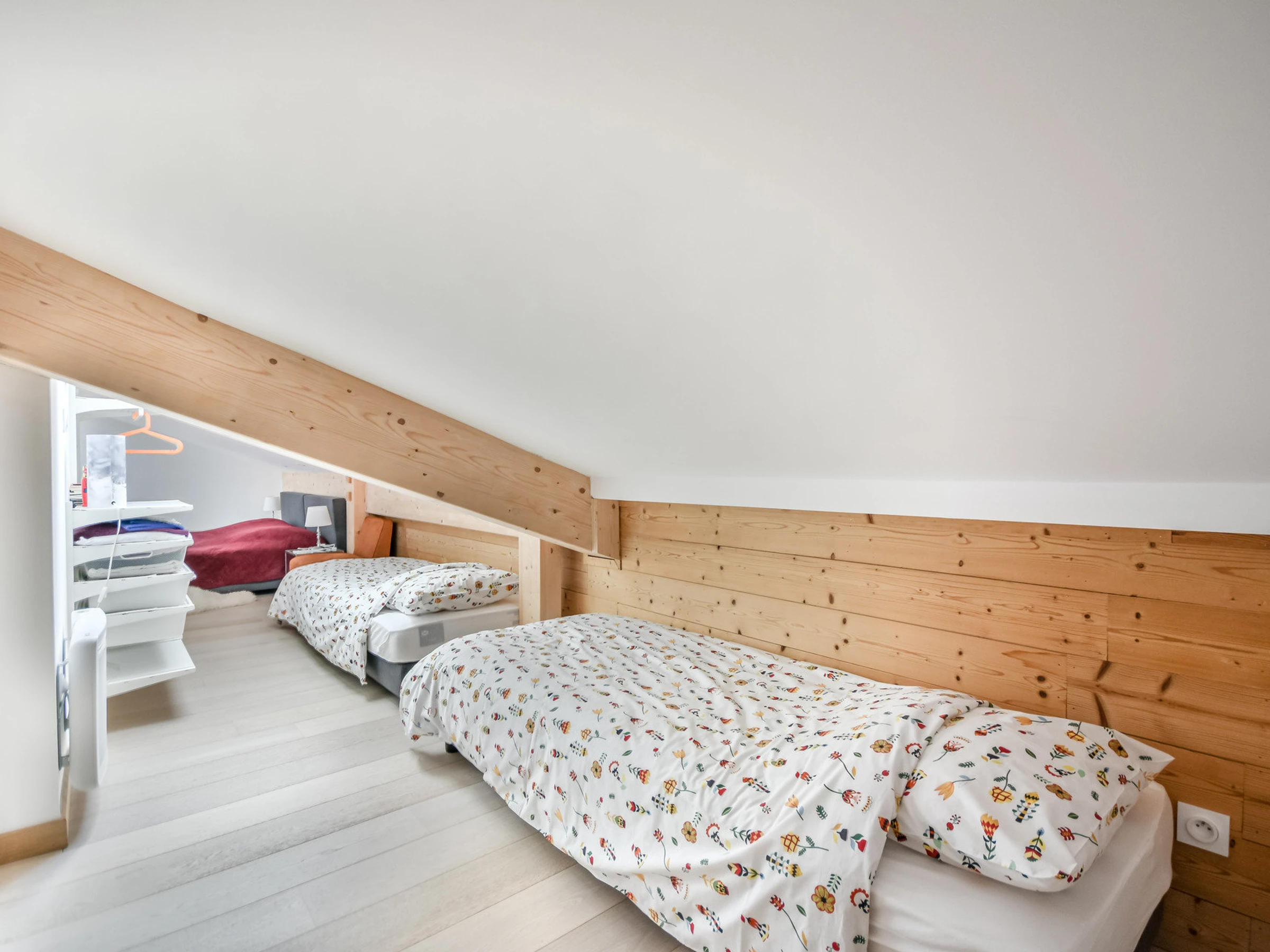 ▪ Bedroom 3 (21.5m² - partially under 1.8m ceiling height) with one double bed and two single beds
