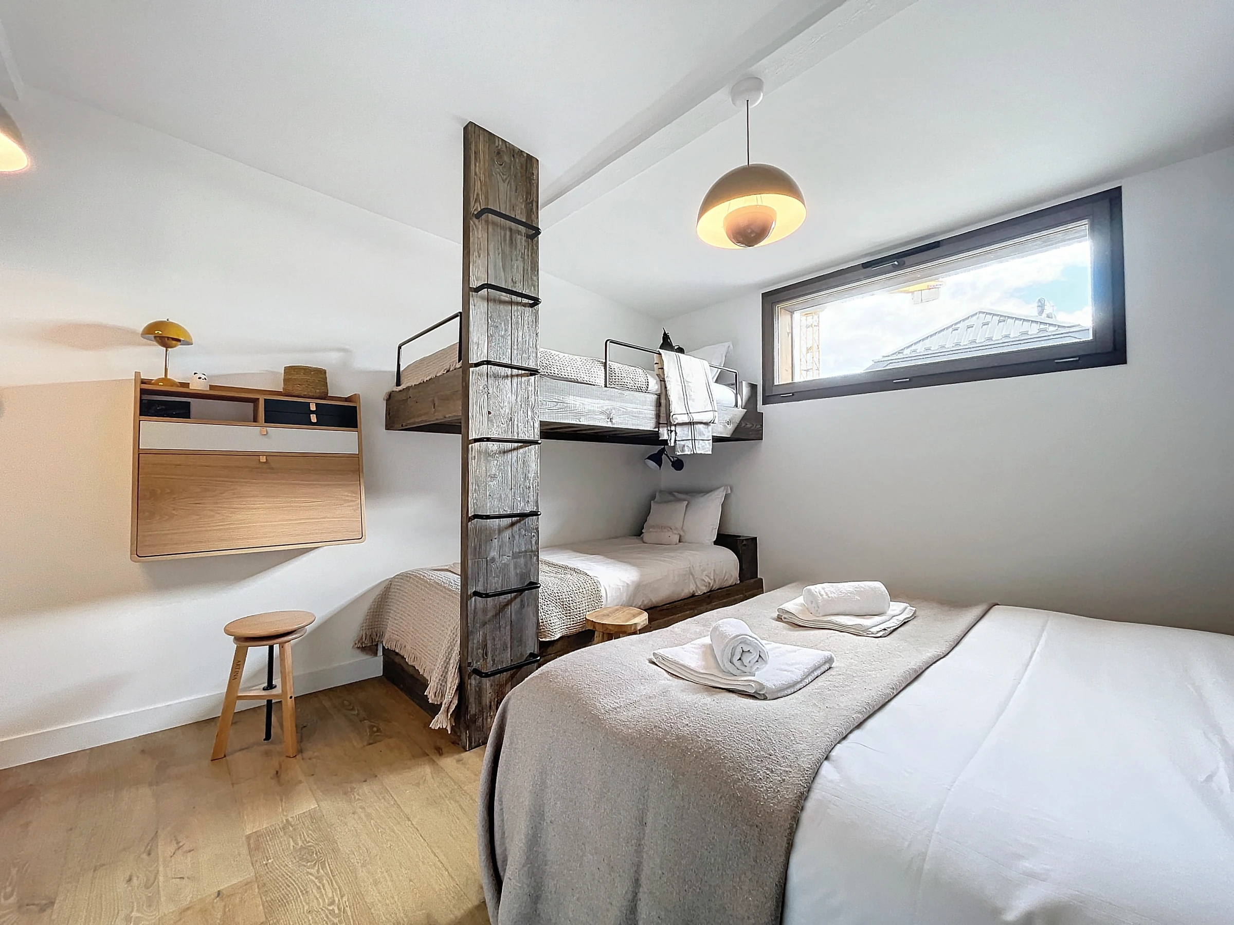 From the moment you enter, you will be captivated by the generous volumes and the light that fills this apartment. With its three spacious bedrooms and cozy mezzanine, it can accommodate up to 11 people, perfect for family stays or trips with friends. Each room invites you to relax after a day on the slopes, thanks to its refined decor and high-quality materials.