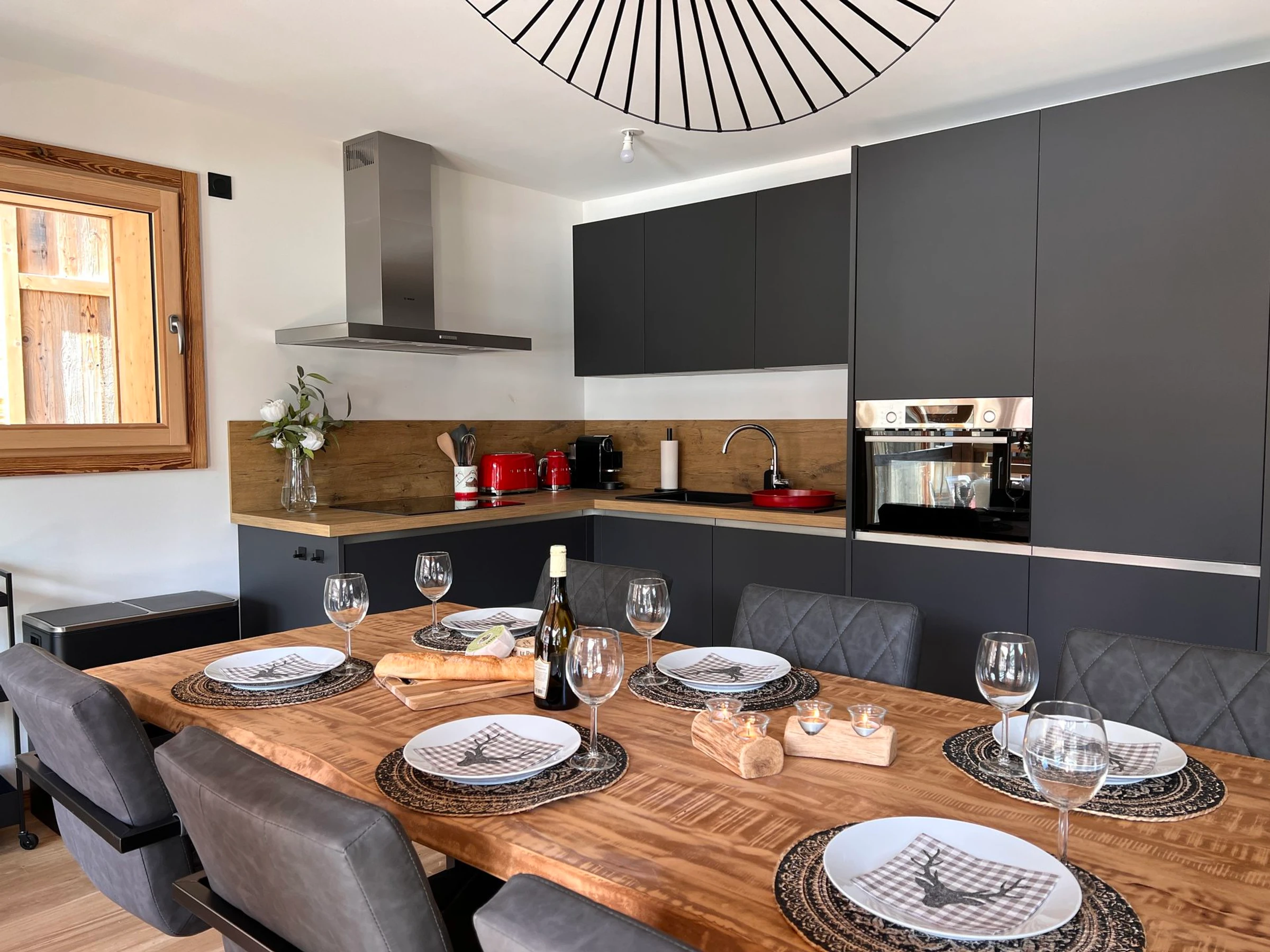 Fully equipped kitchen with mini combi oven (oven and microwave), induction hob, extractor hood, dishwasher, fridge, freezer, toaster, Nespresso coffee makers, fondue set, washer-dryer, TV and Sonos speaker,Wifi
